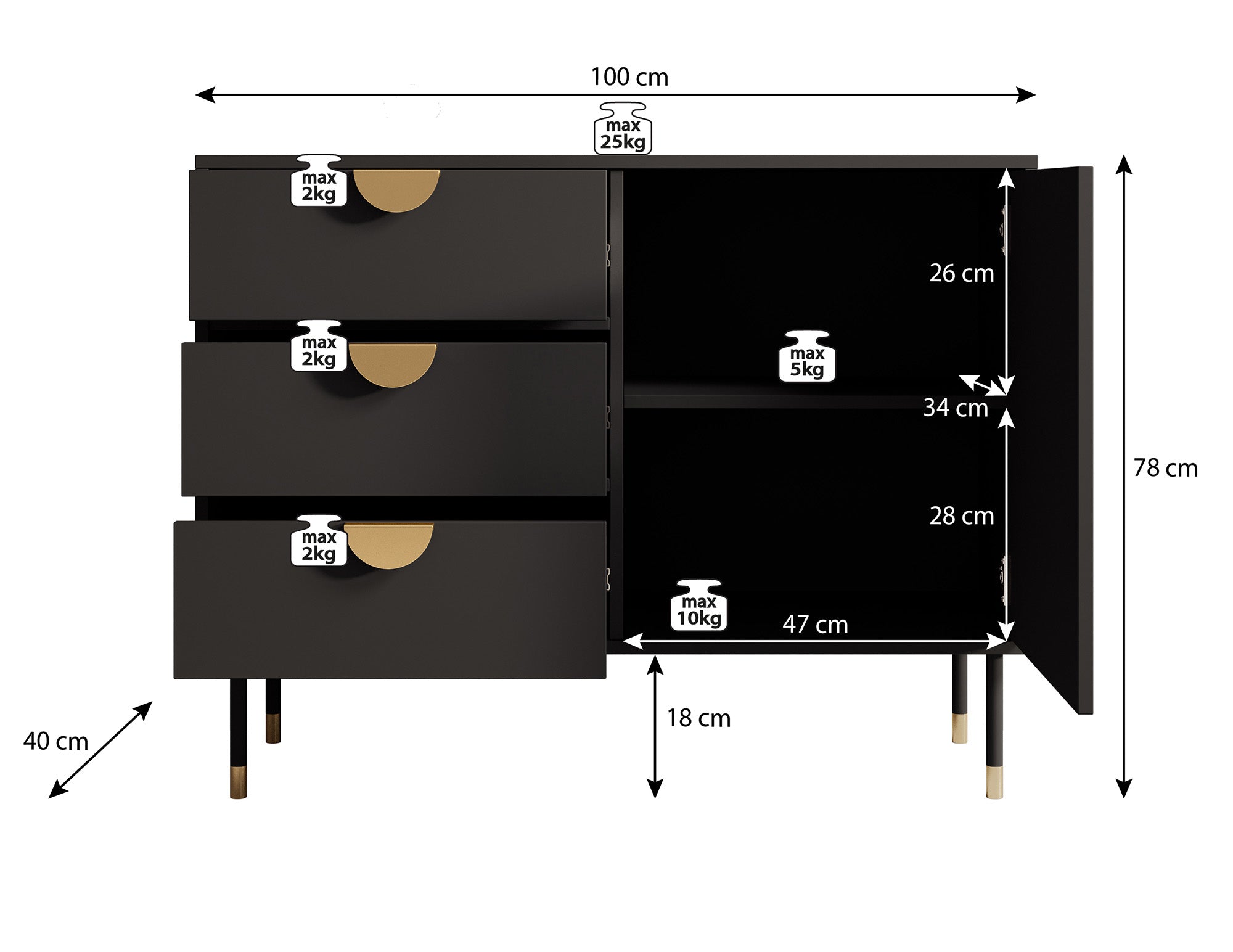 Meubella - Dressoir Veerle - Zwart - 100 cm