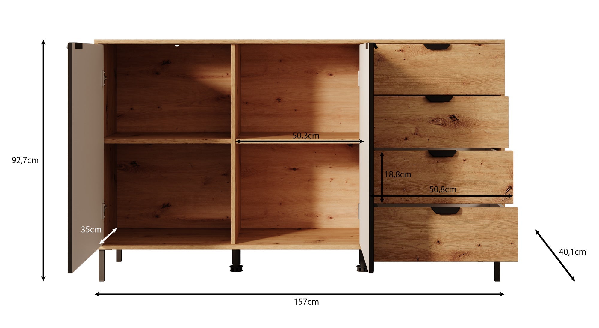 Meubella - Dressoir Vic - Eiken - 157 cm
