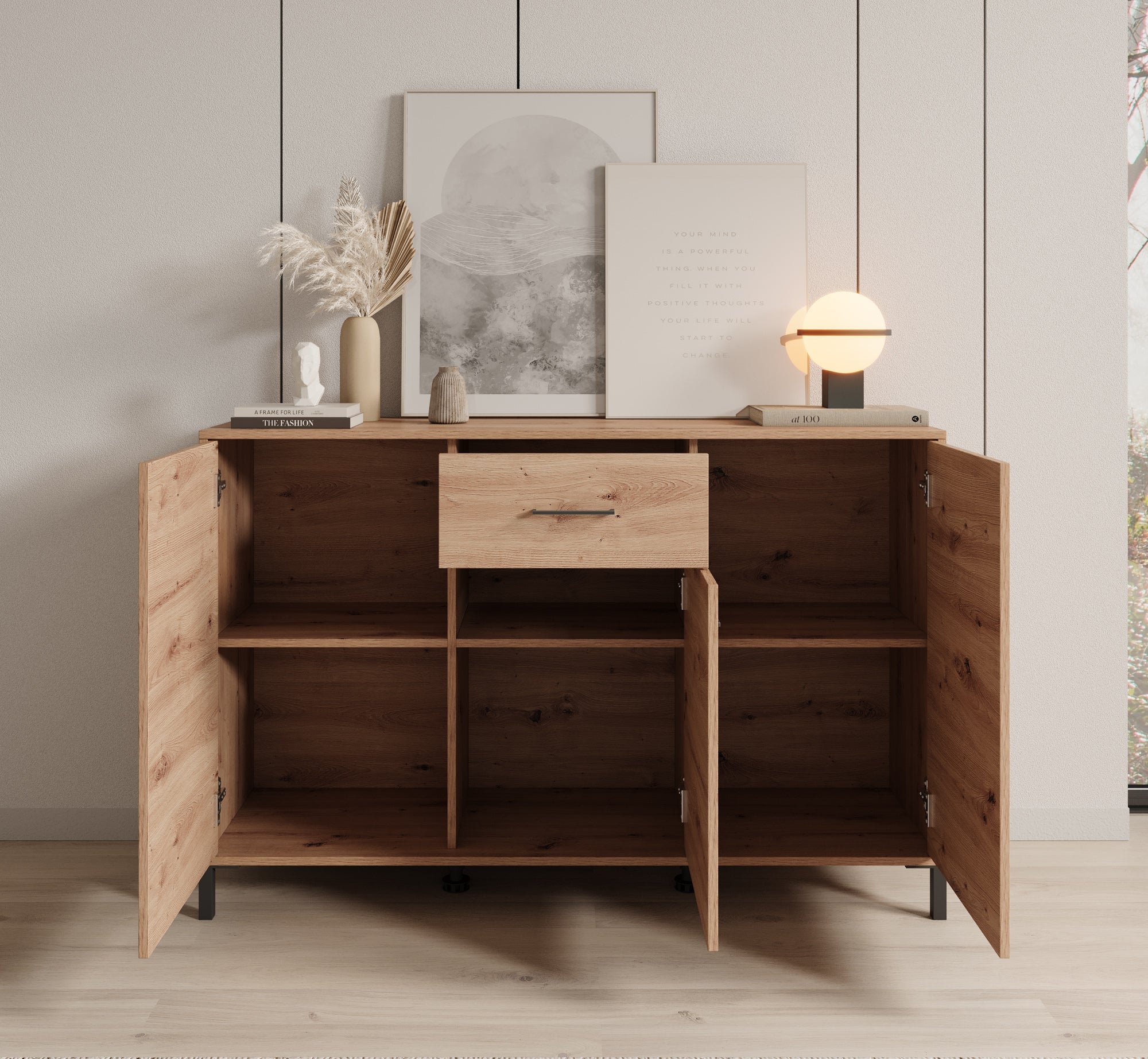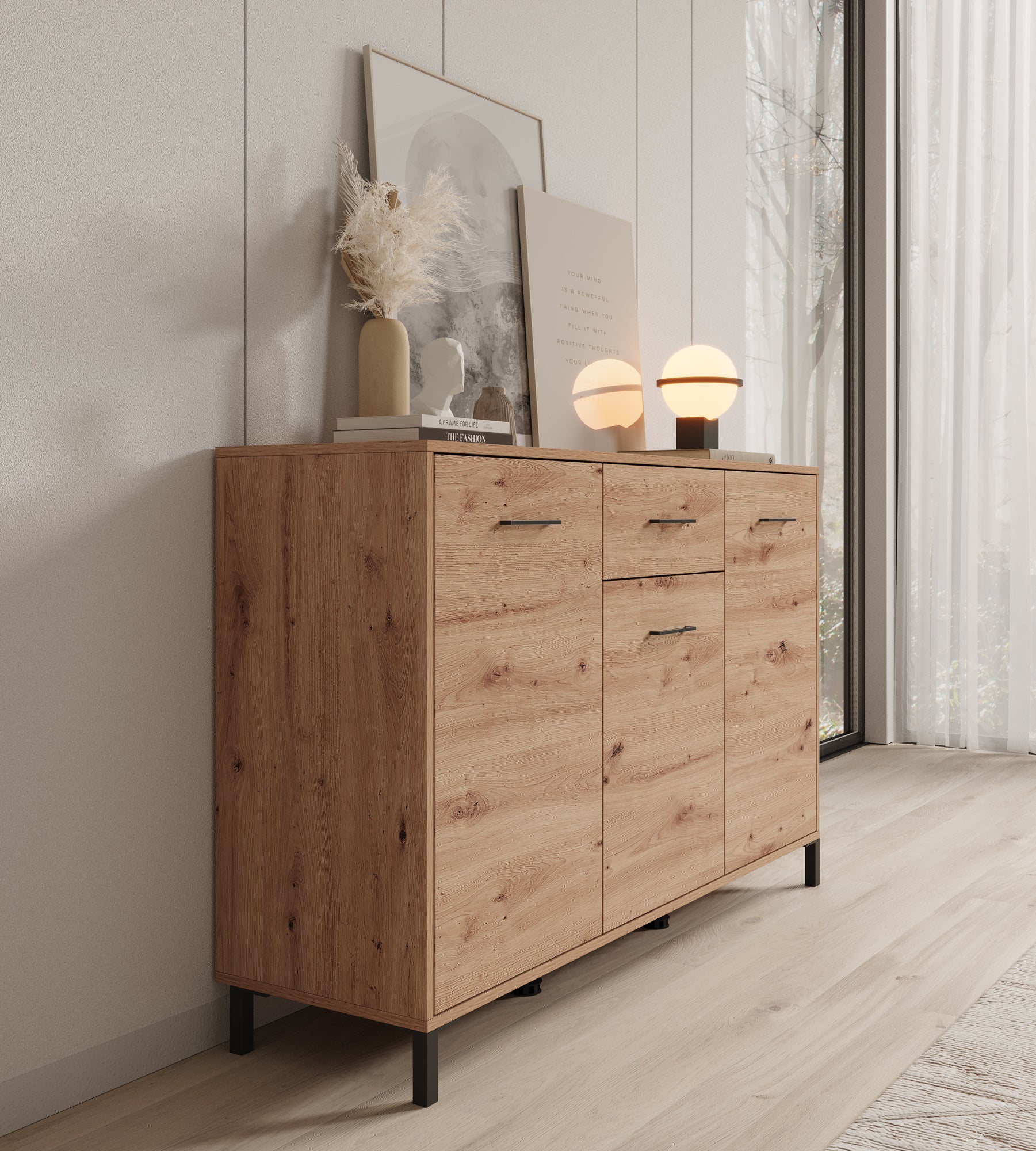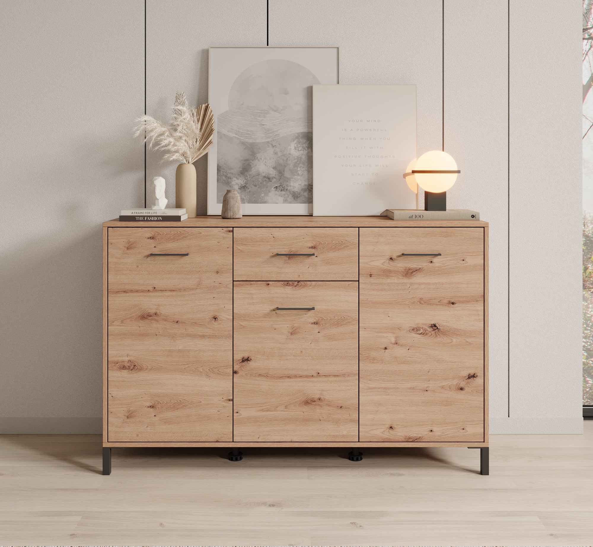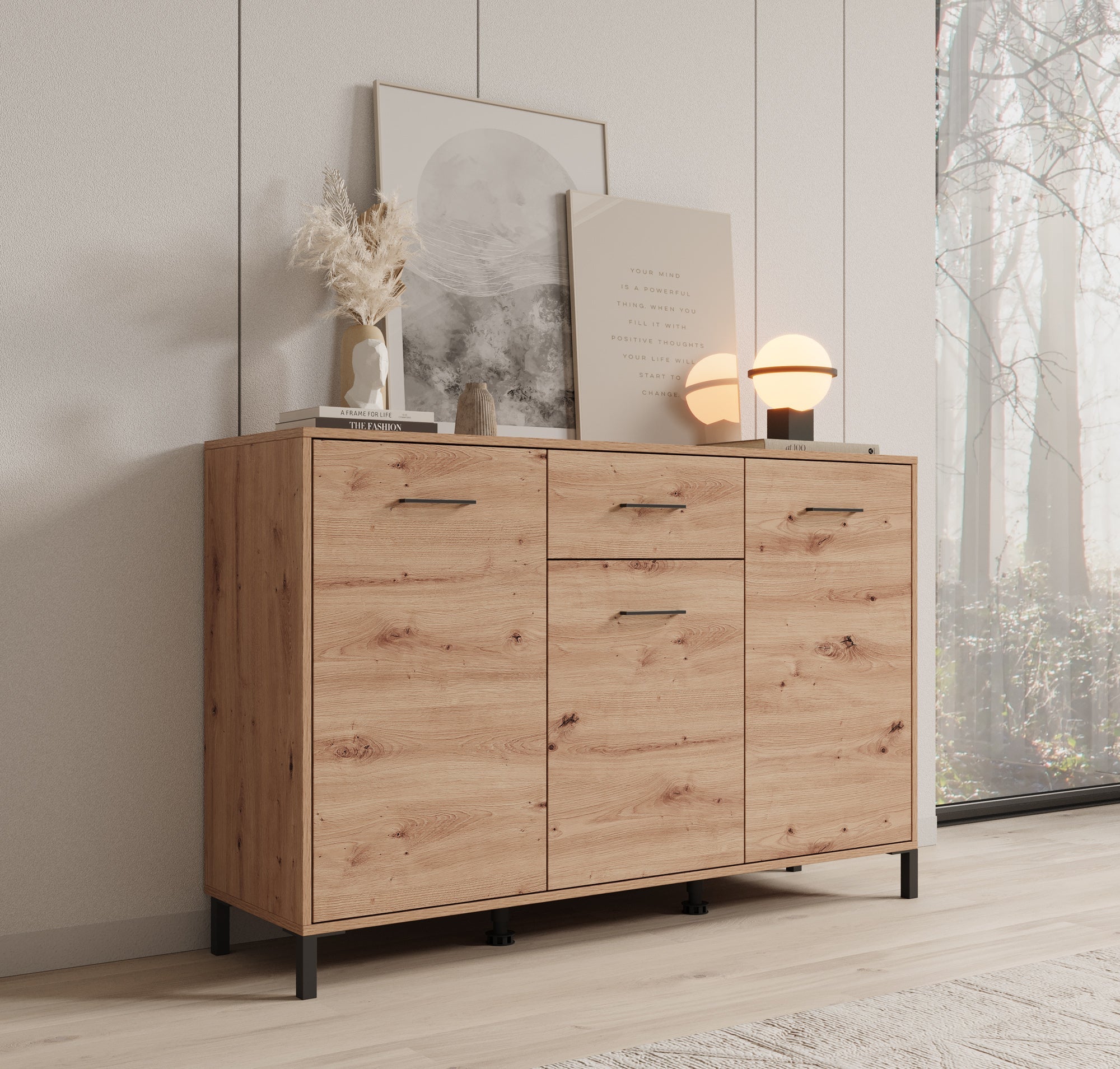 Meubella - Dressoir Vidor - Eiken - 138 cm - 1 lade