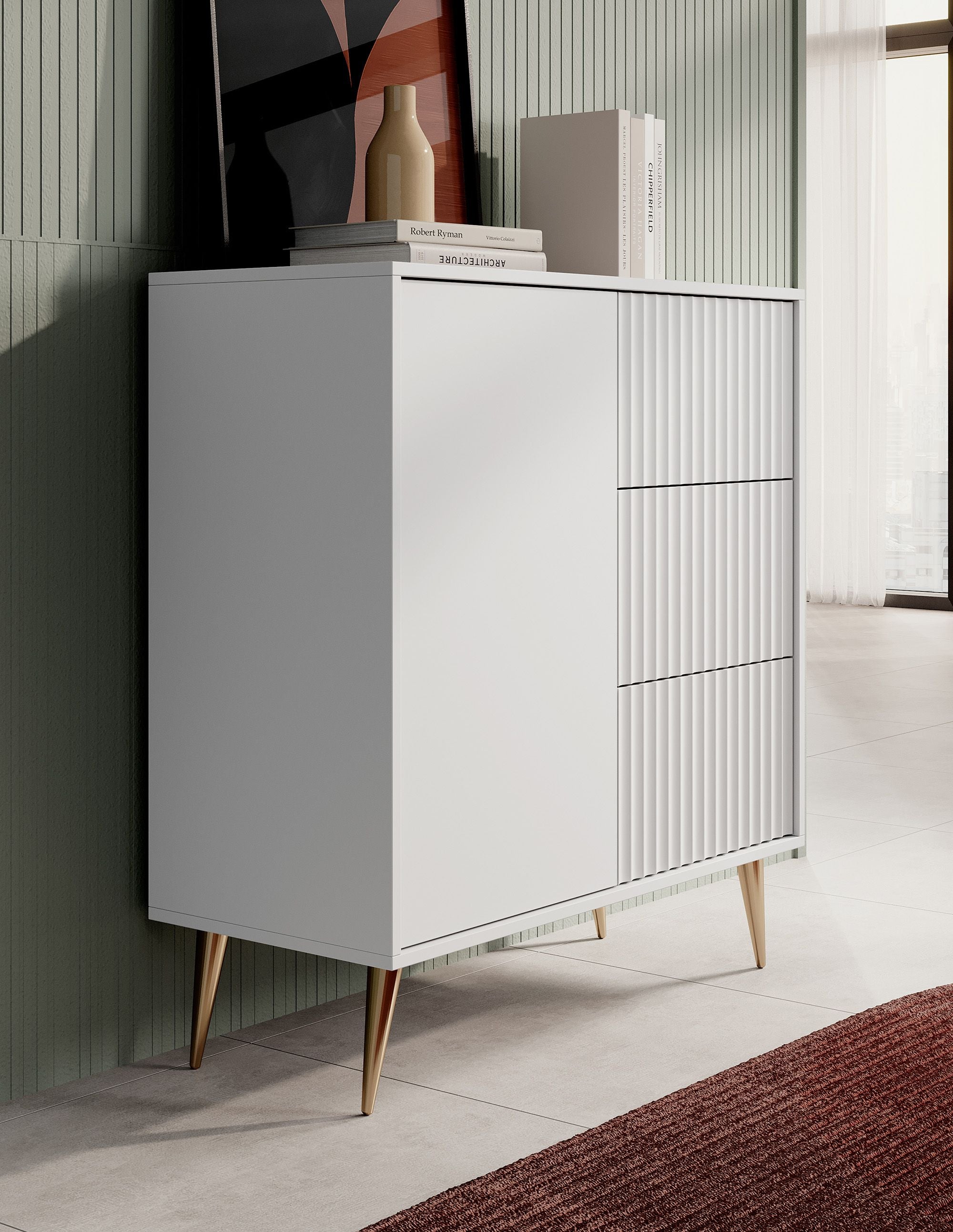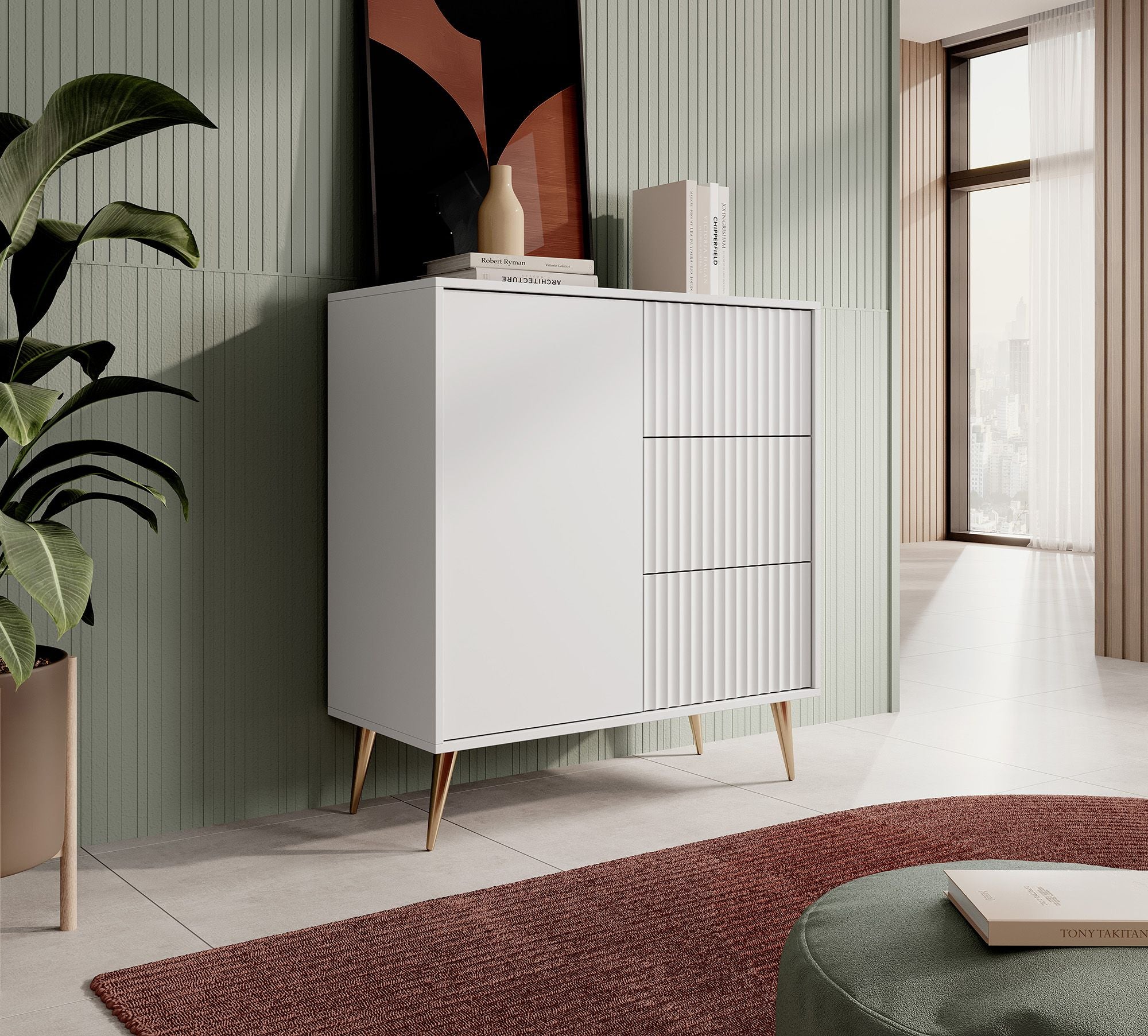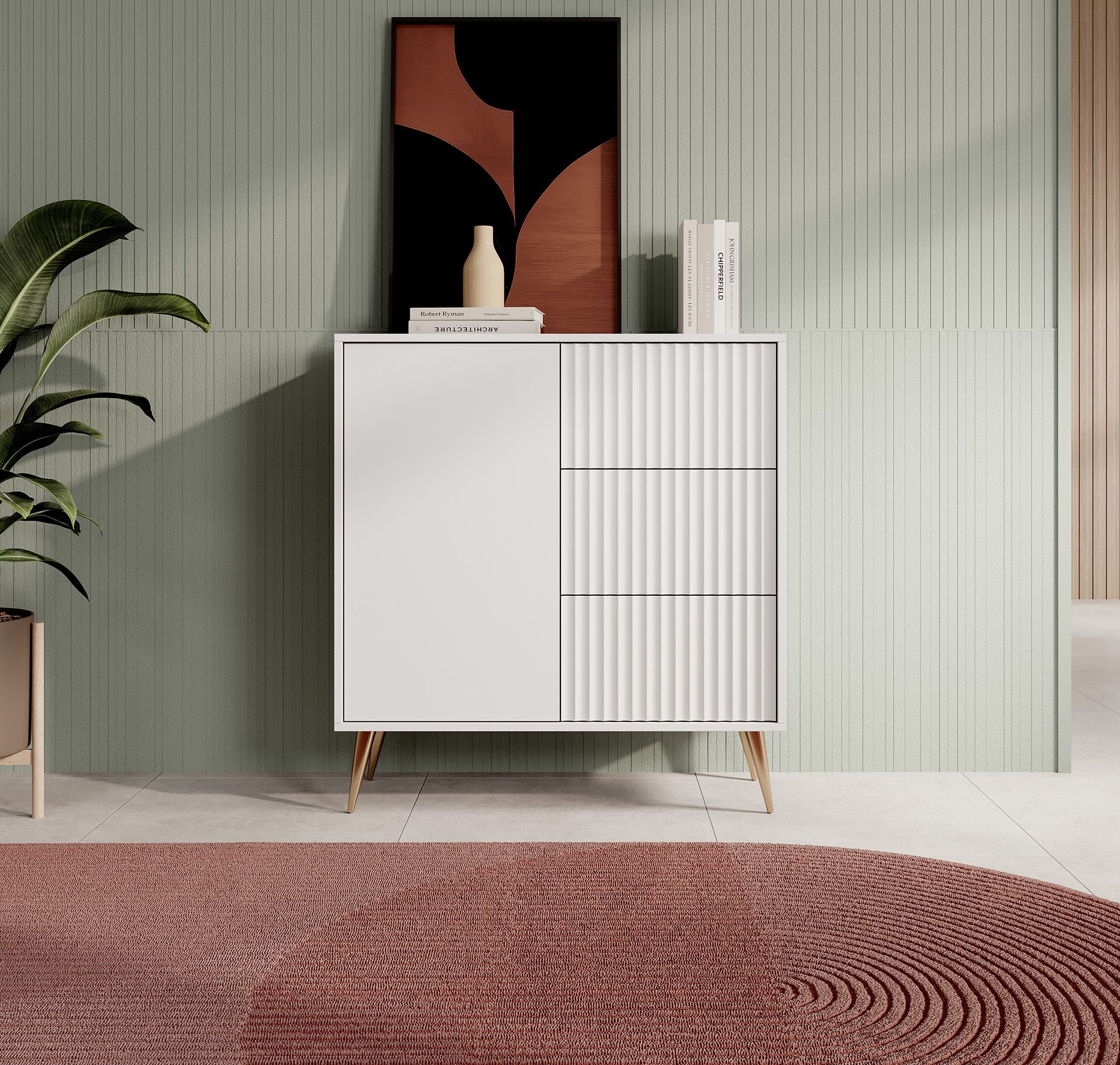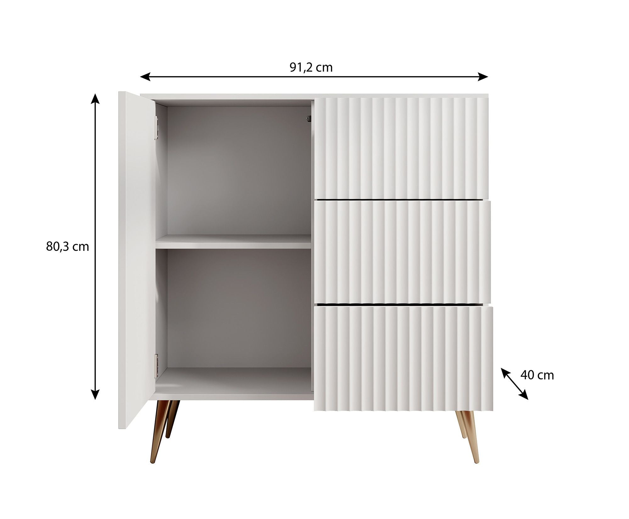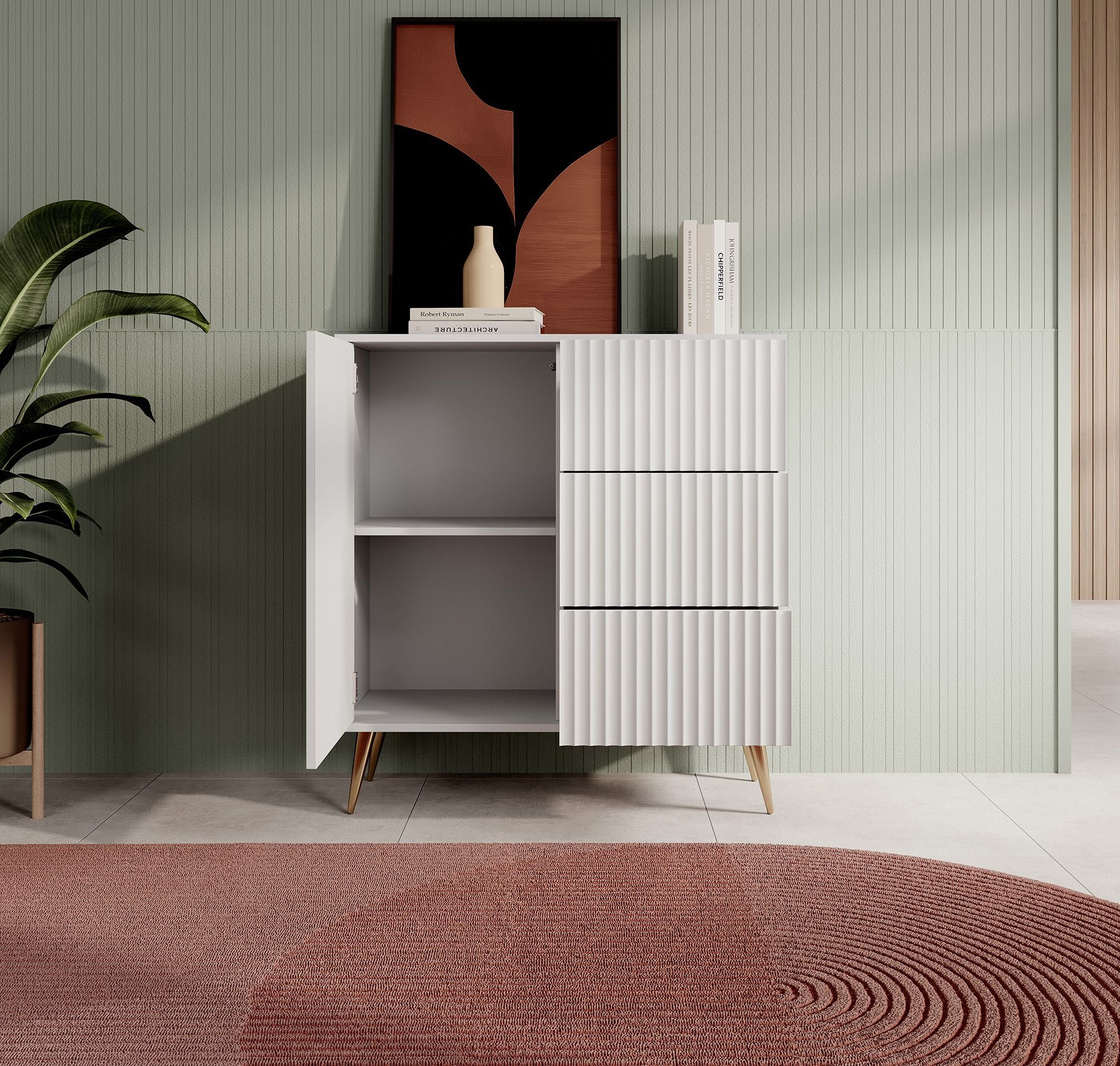- Het deurtje en de lades zijn te openen met het push-to-open systeem