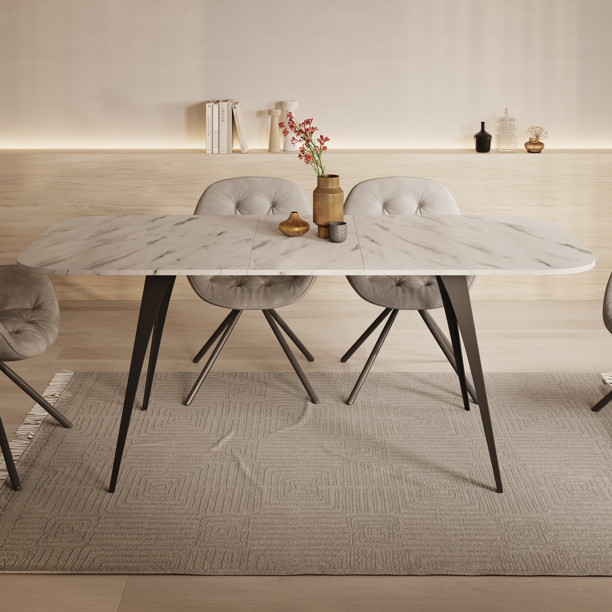 Meubella - Eetkamertafel Flix - Wit marmer - 160 cm - Uitschuifbaar