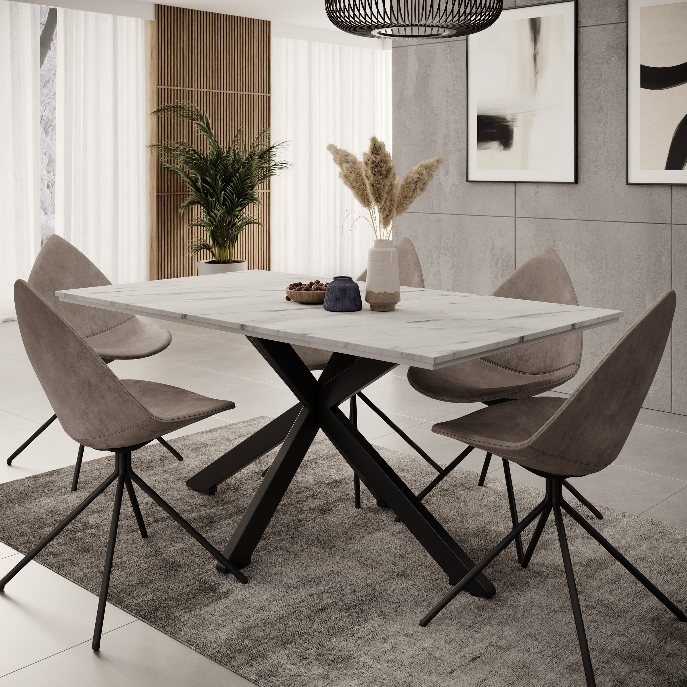 Meubella - Eetkamertafel Wabe - Wit marmerlook - 160 cm