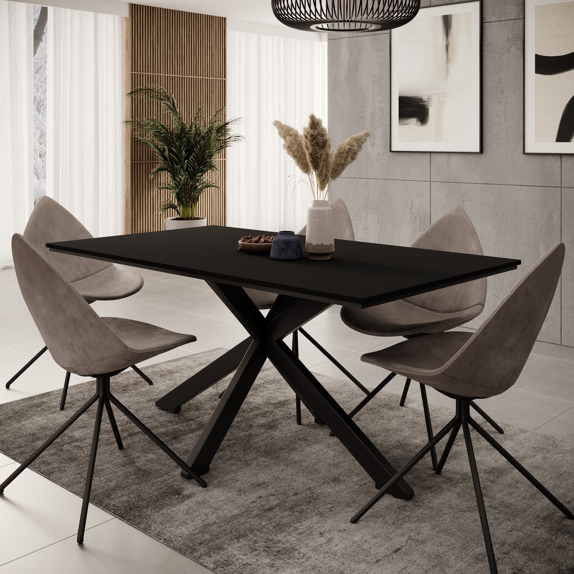 Meubella - Eetkamertafel Wabe - Zwart - 160 cm