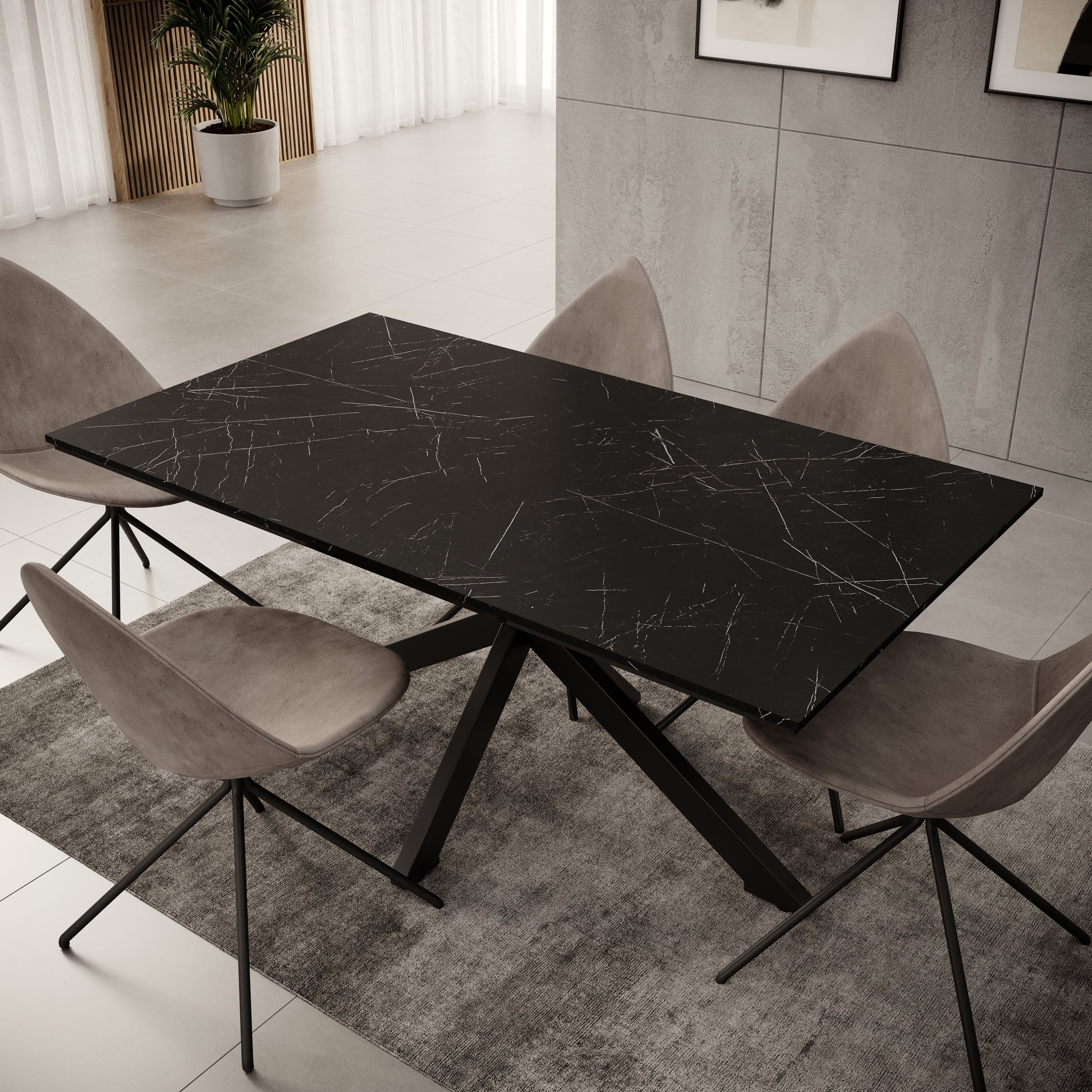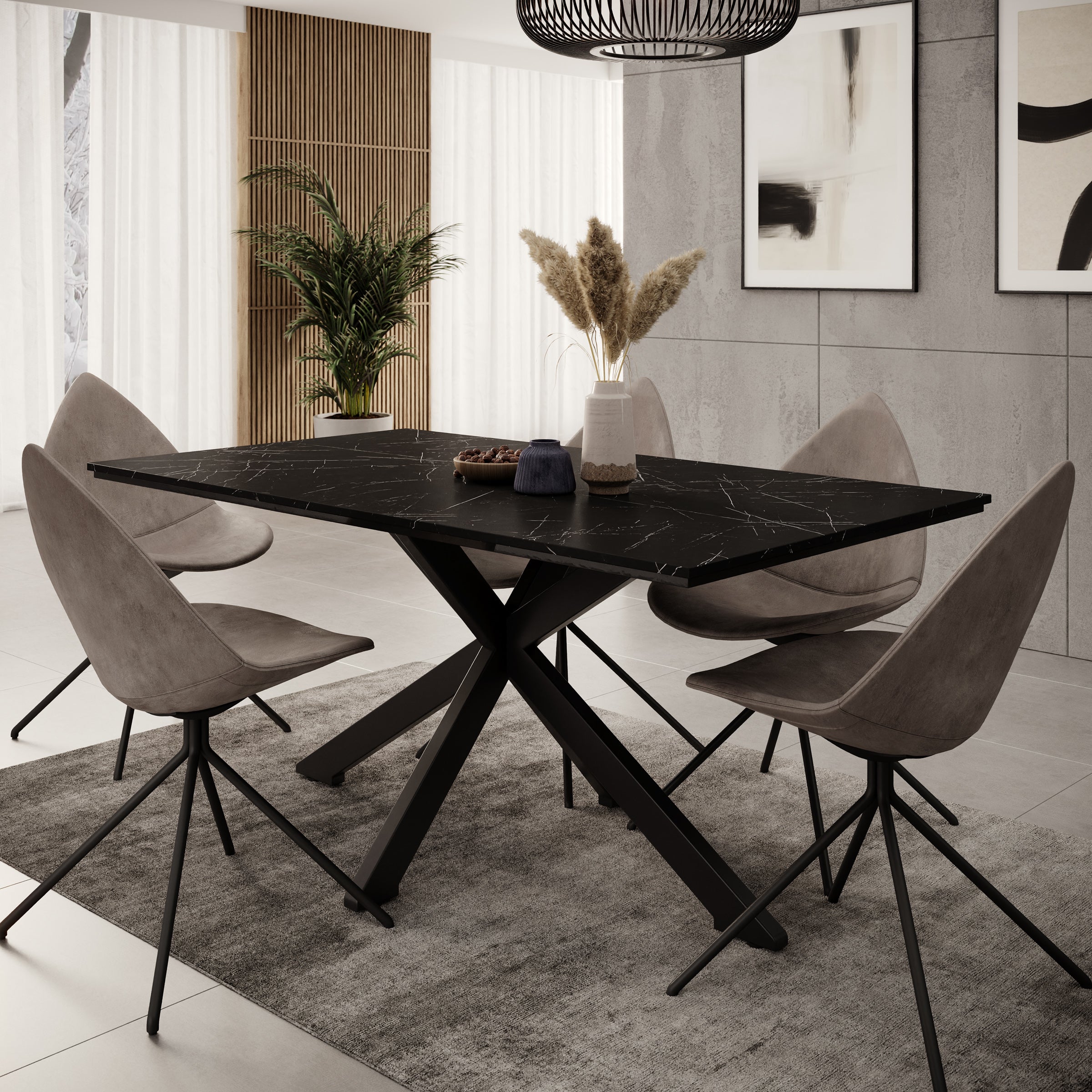 Meubella - Eetkamertafel Wabe - Zwart marmerlook - 160 cm