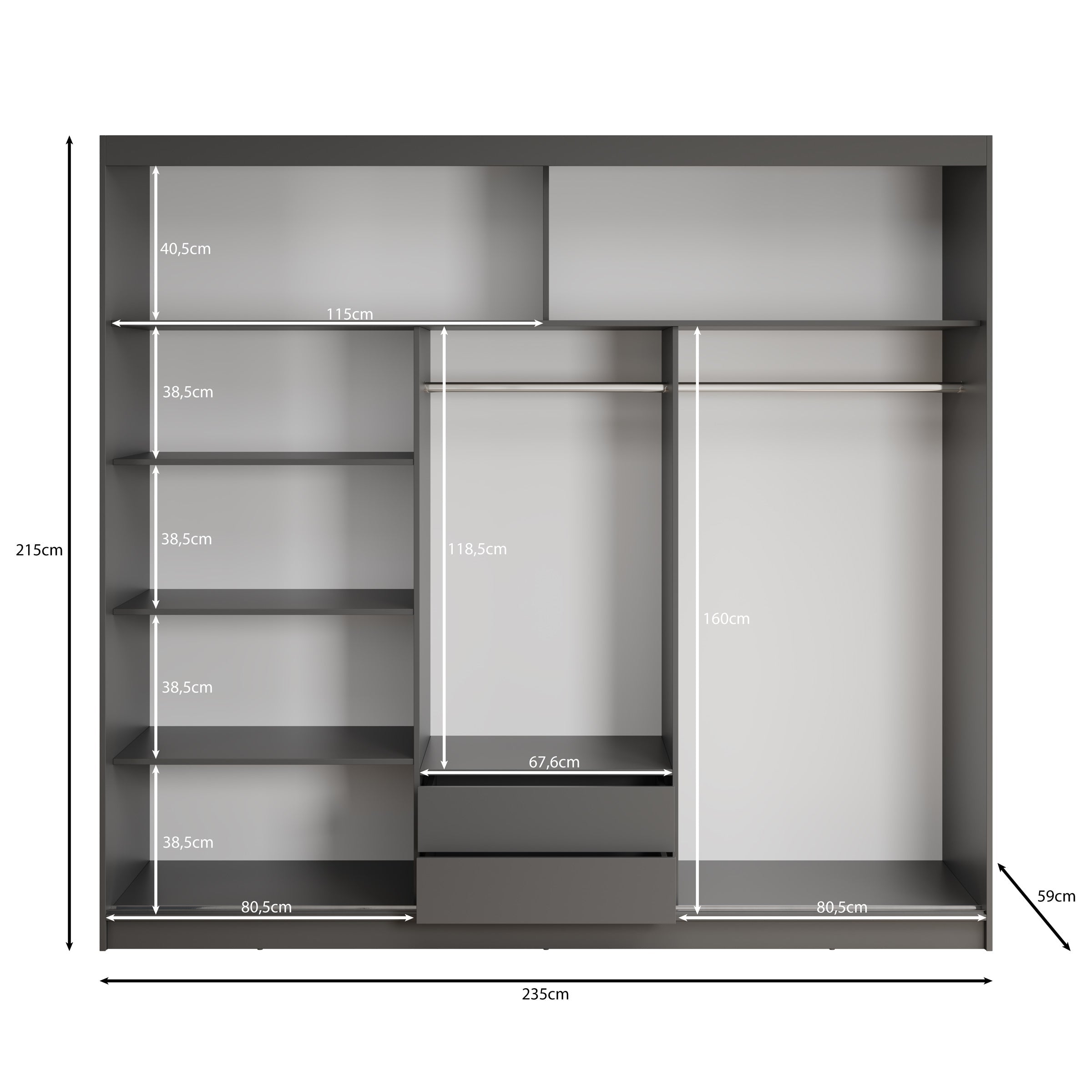 Meubella - Erie - Kledingkast met schuifdeuren - Grijs - 235x59x215 cm