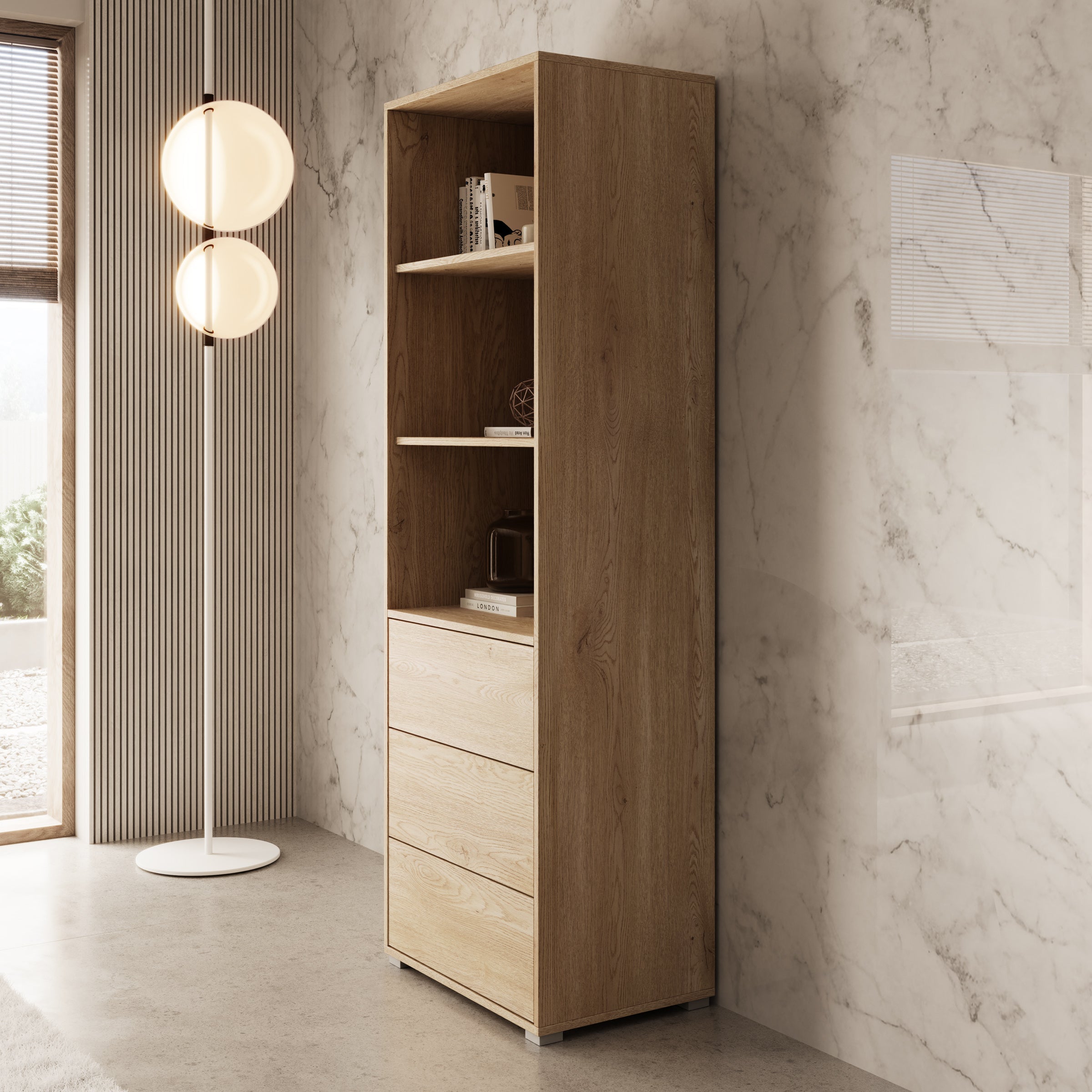 Meubella - Gideon - Boekenkast - Eikenpatroon - 60x40x178 cm