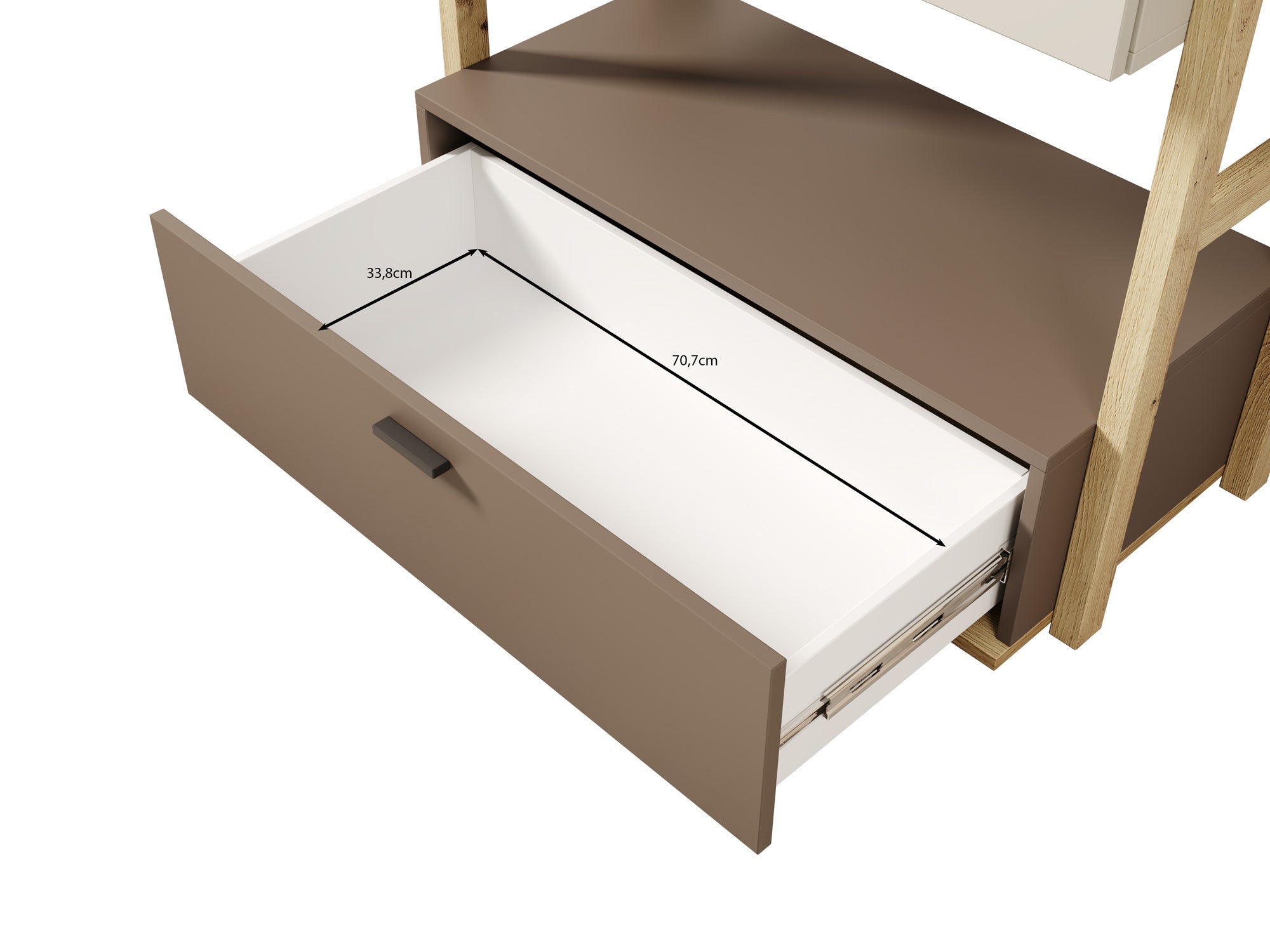 - Lades openen met zwarte handgrepen