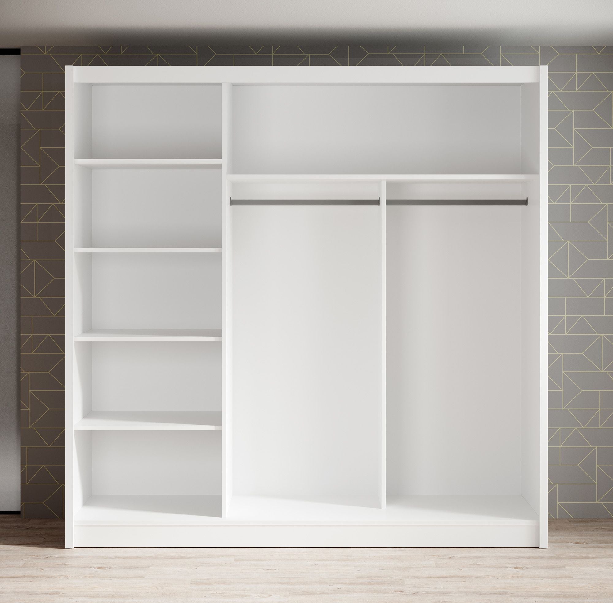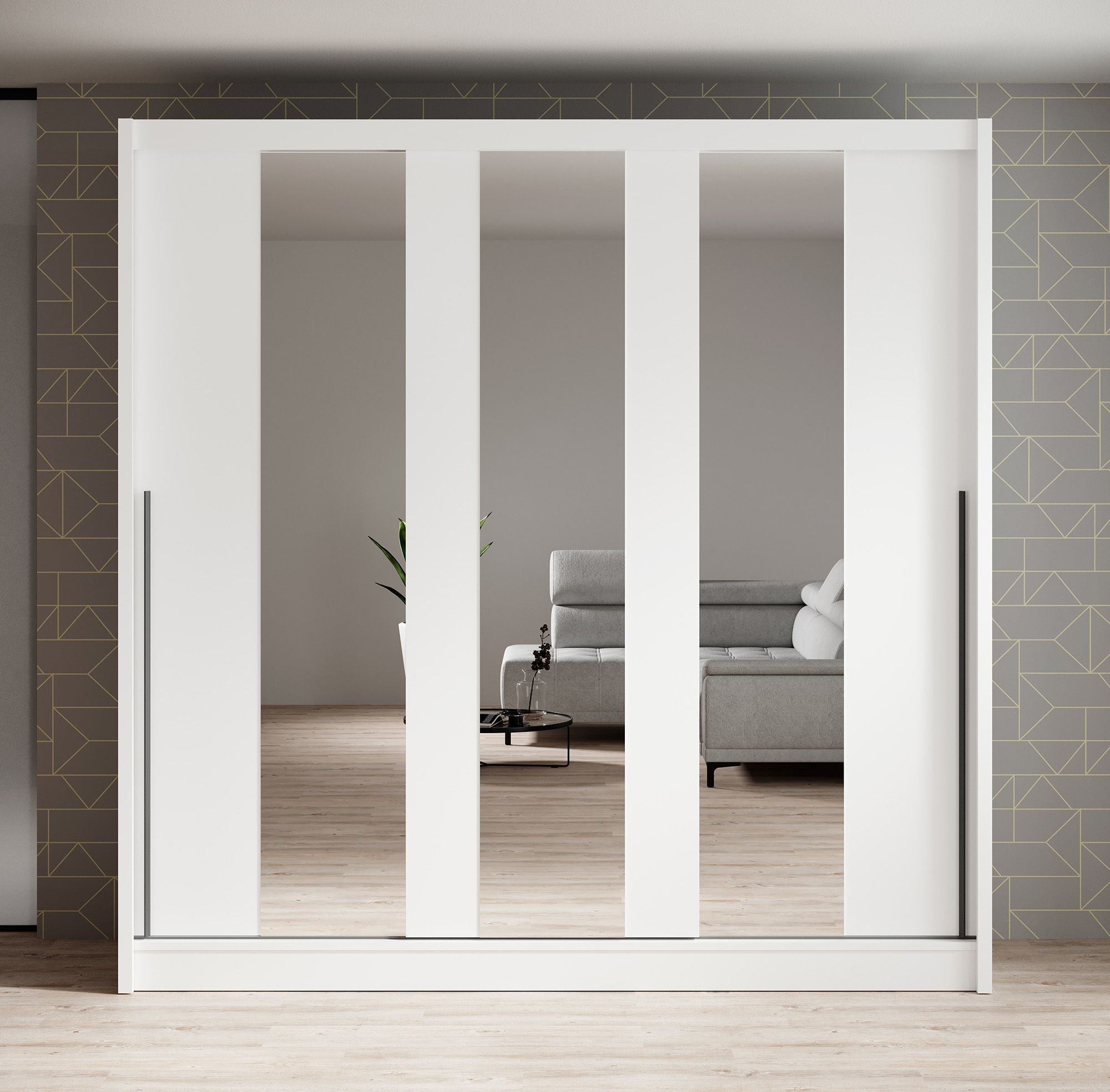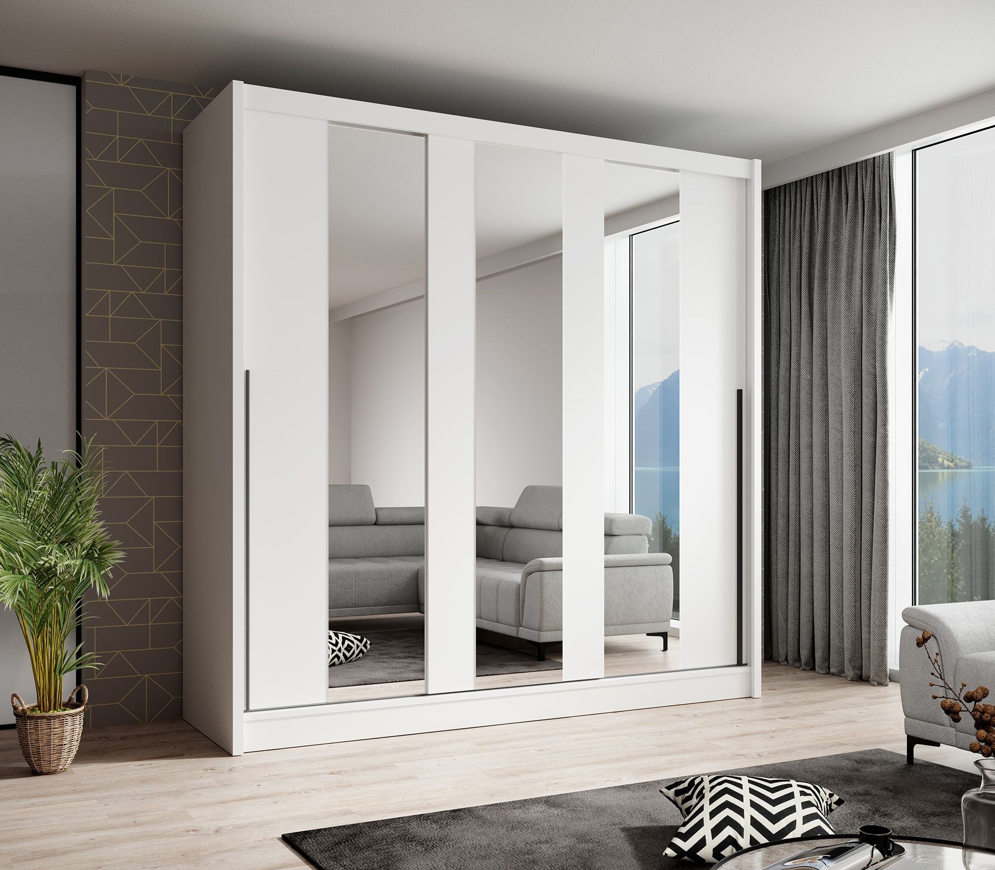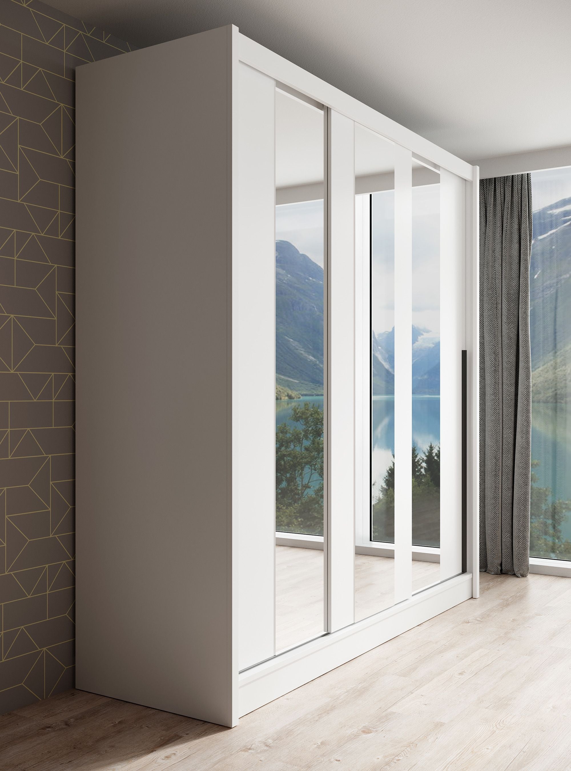 Meubella - Kledingkast Alcamo 3 - Wit - 205 cm - Met spiegel