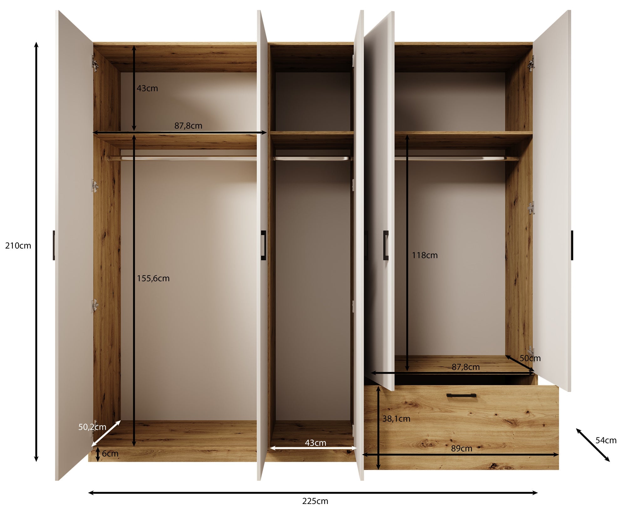 Meubella - Kledingkast Audrey - Wit - 225 cm