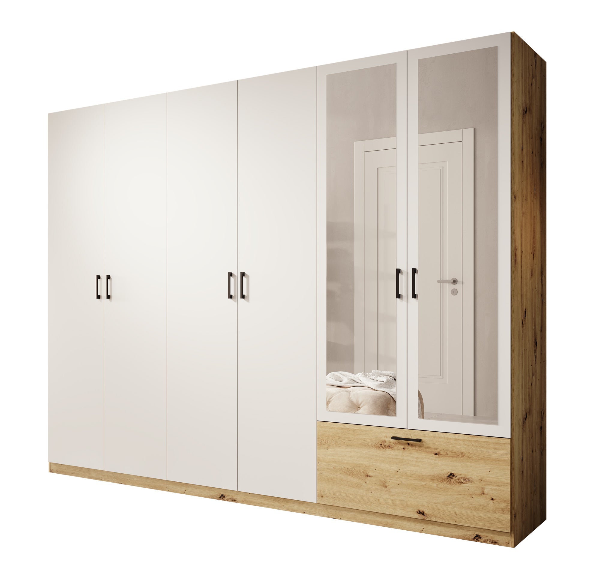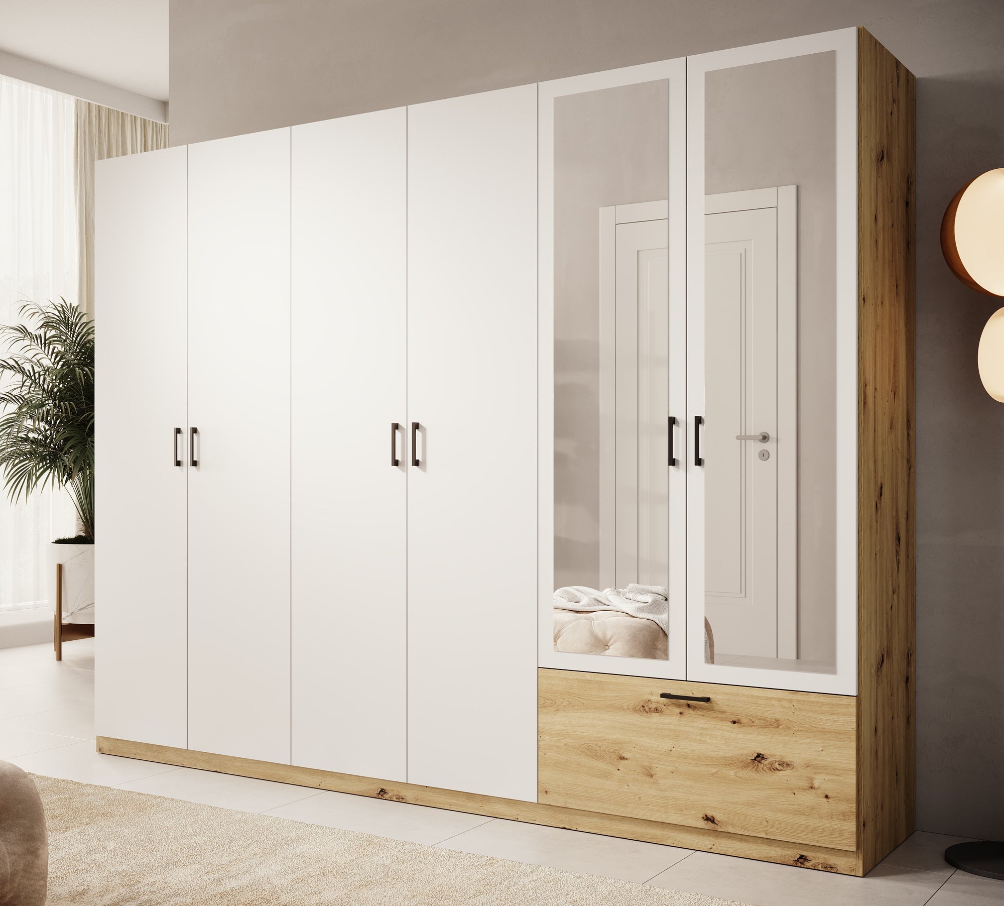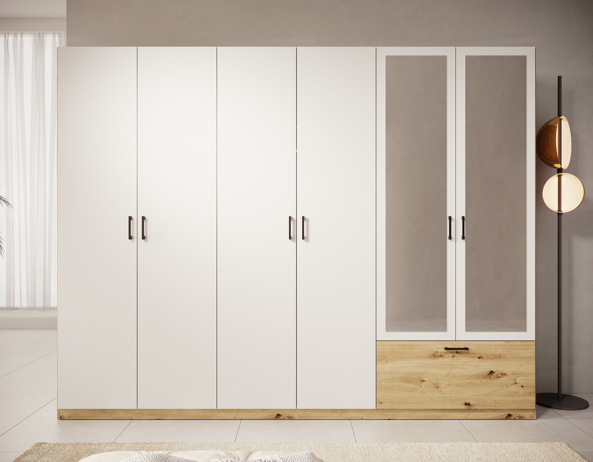 Meubella - Kledingkast Audrey - Wit - 270 cm - Met spiegel