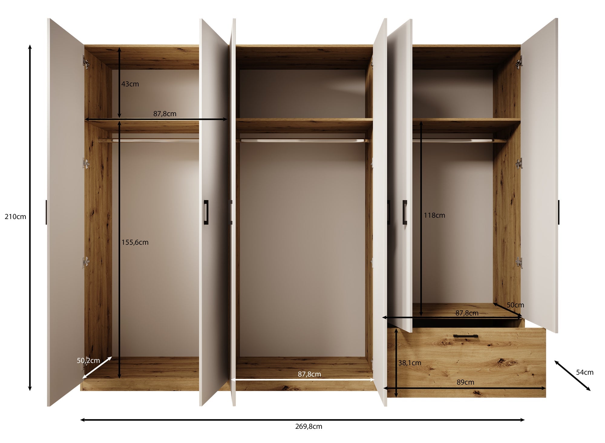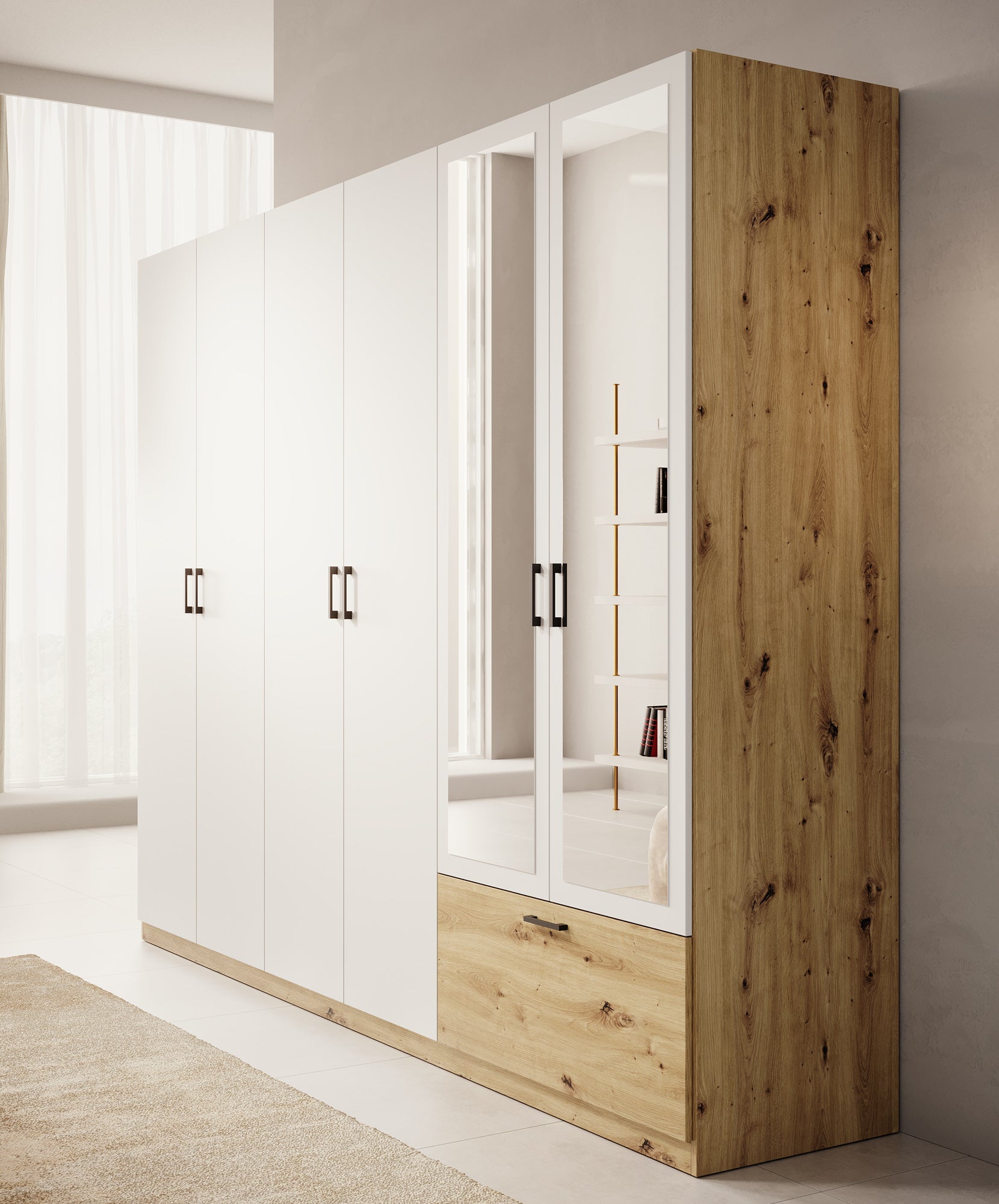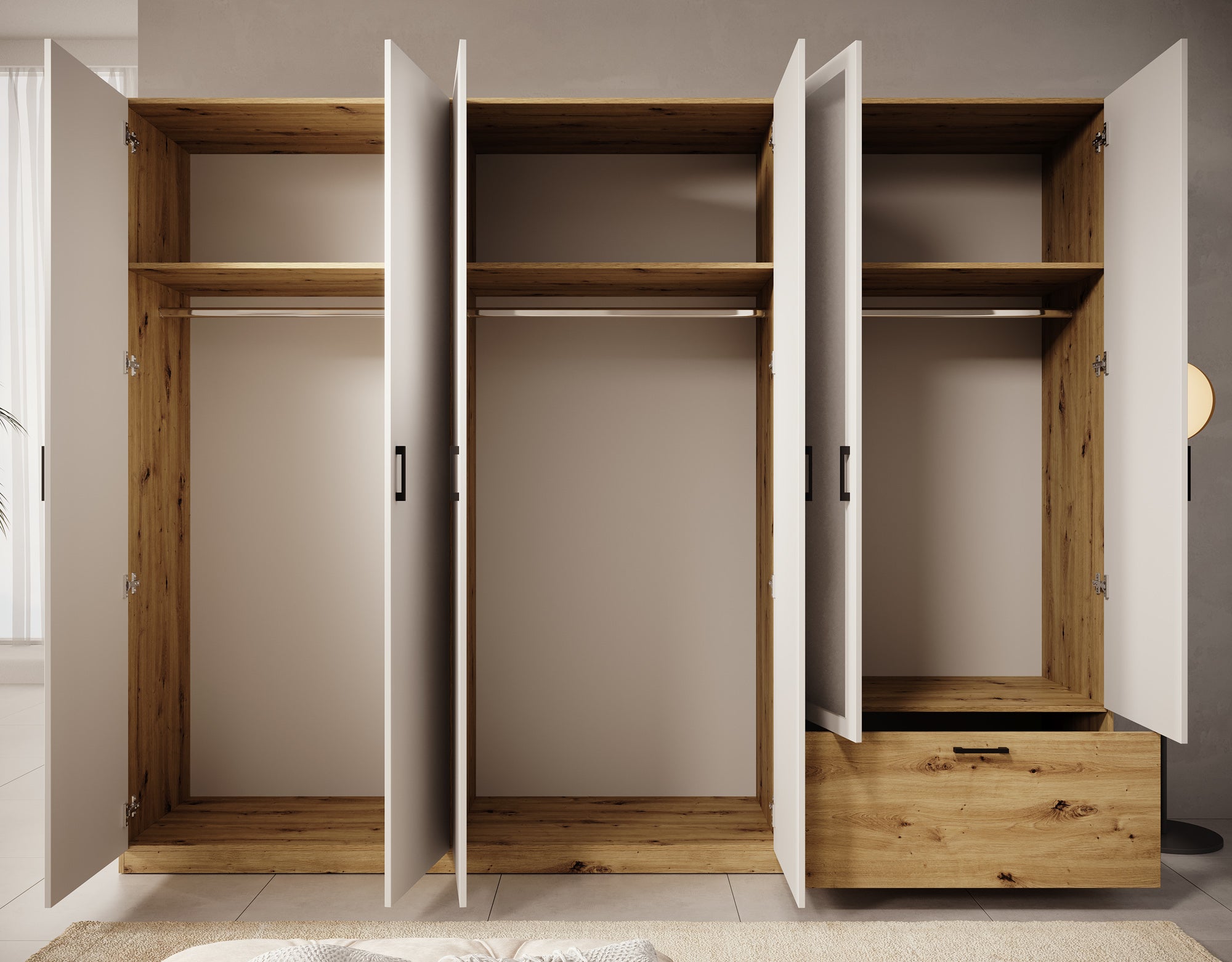 Meubella - Kledingkast Audrey - Wit - 270 cm - Met spiegel