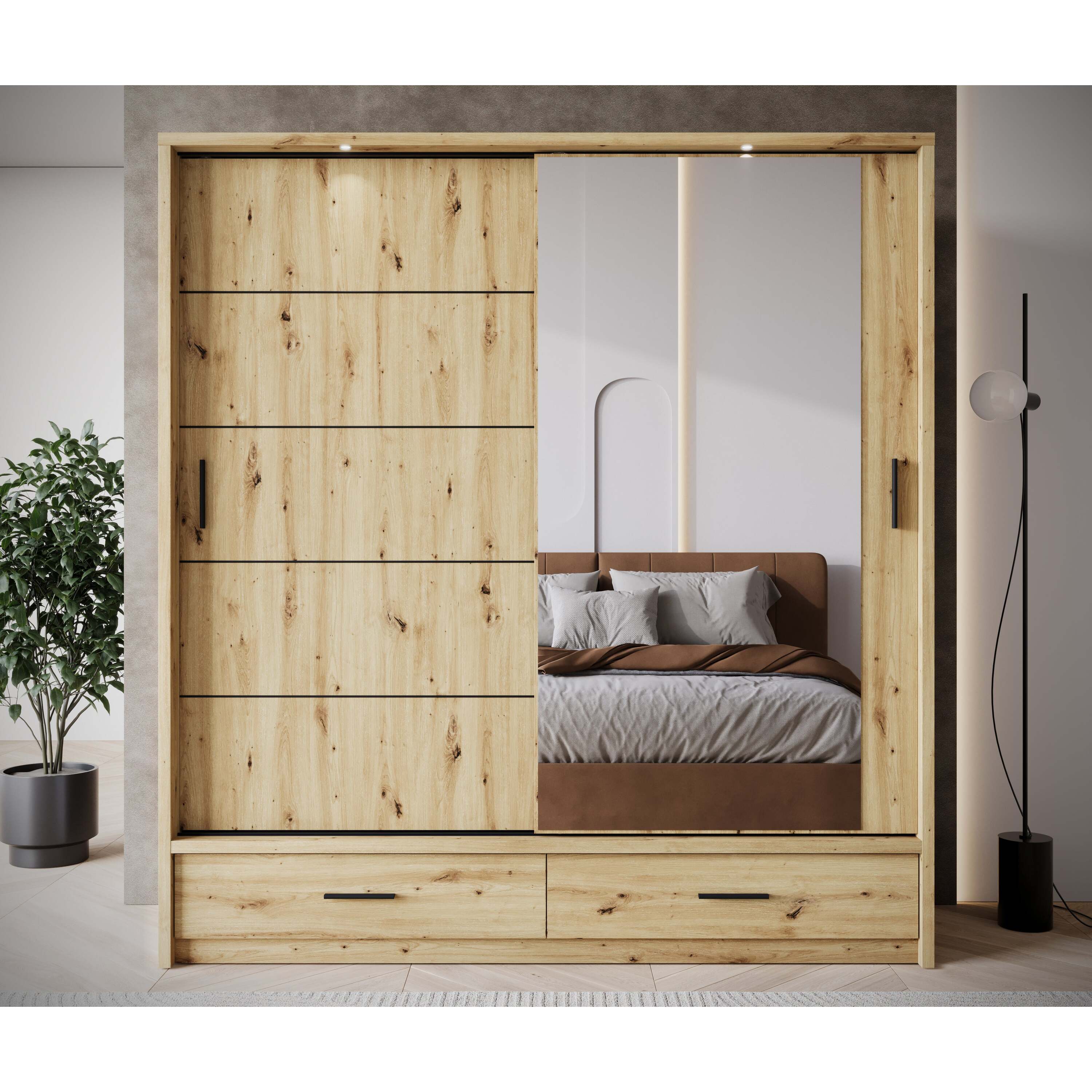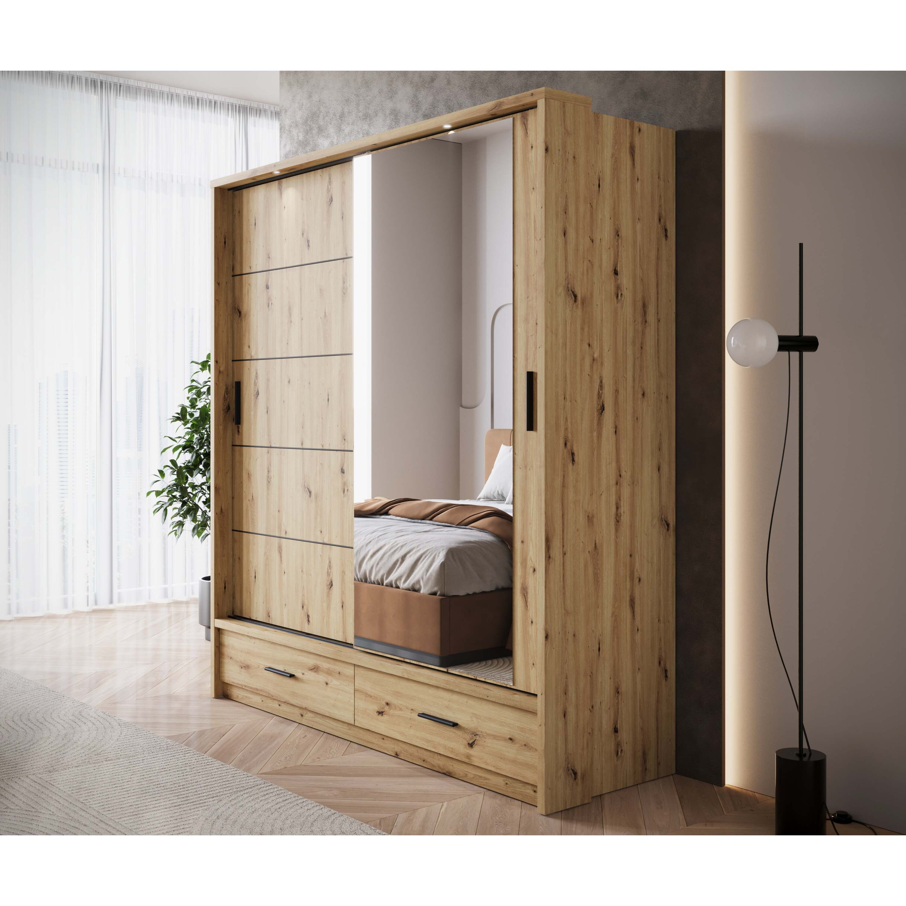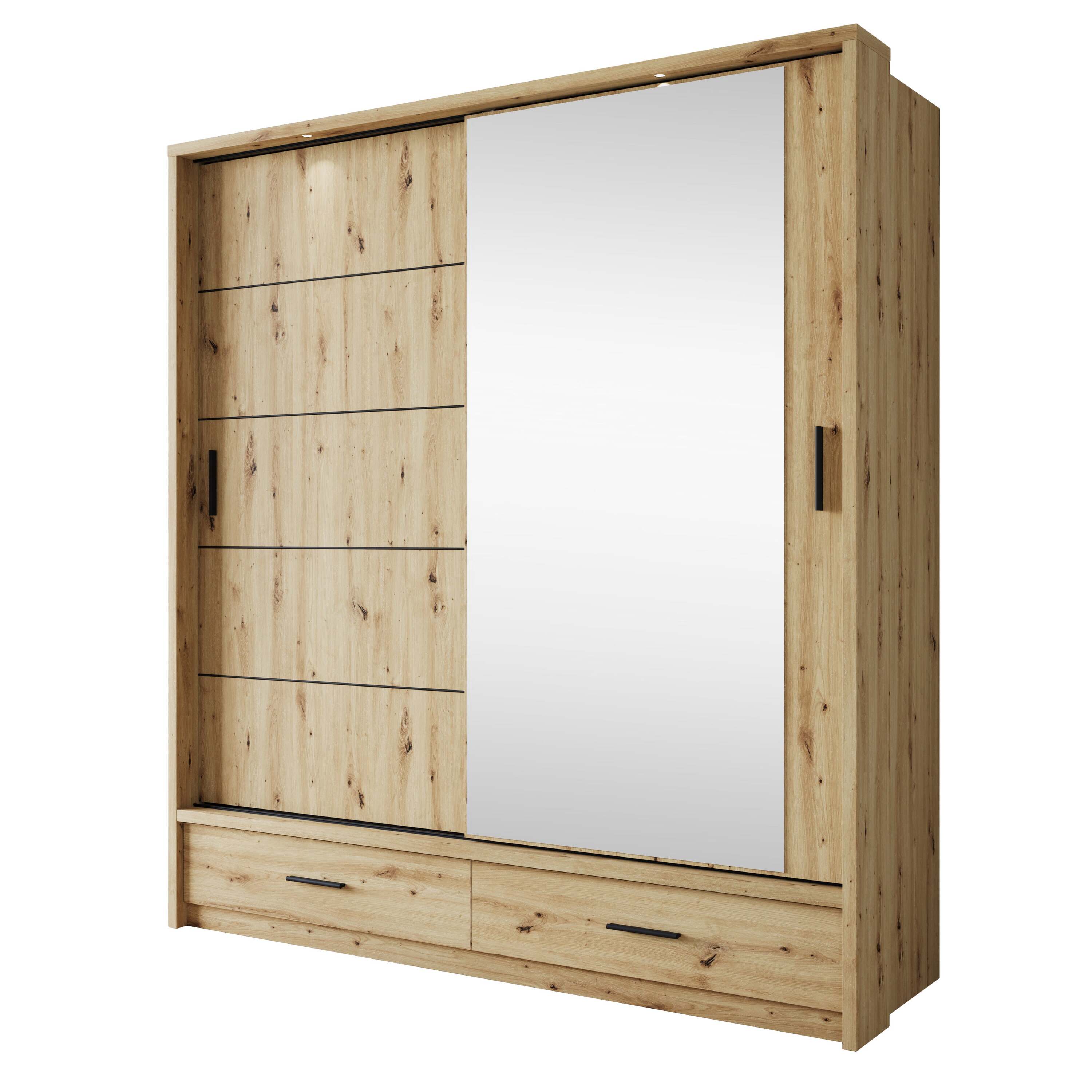 Meubella - Kledingkast Autumn - Eiken - 200 cm - Met spiegel