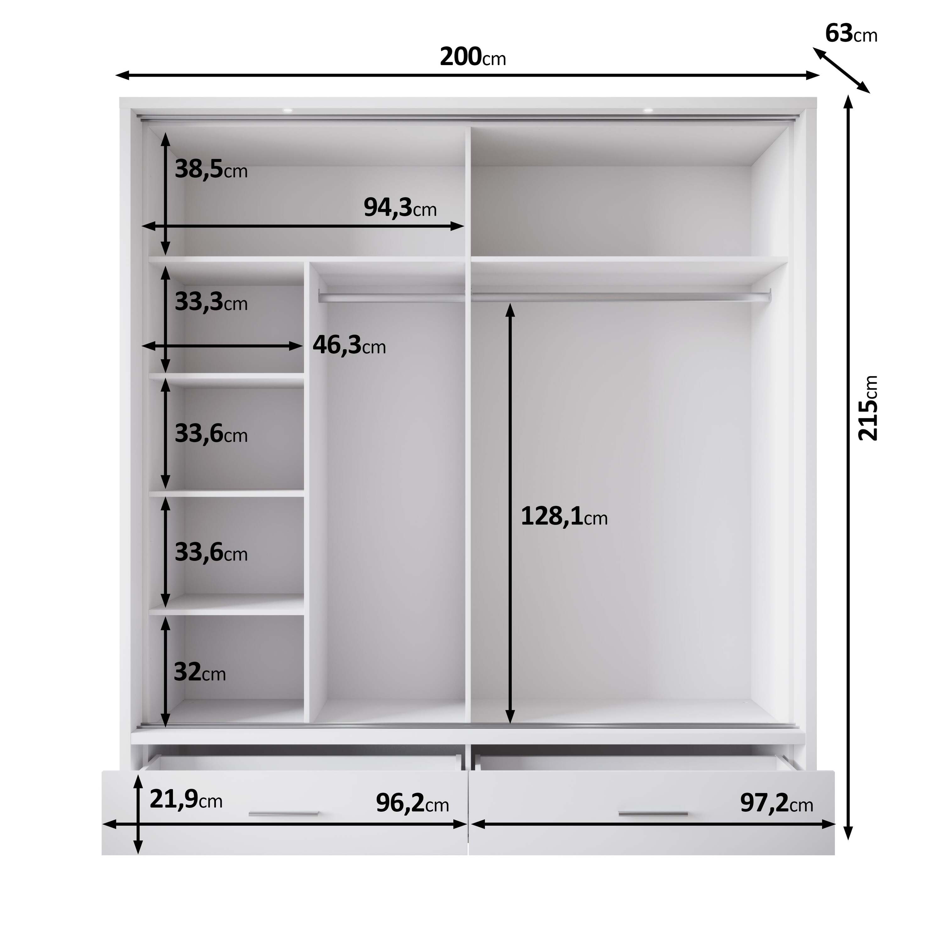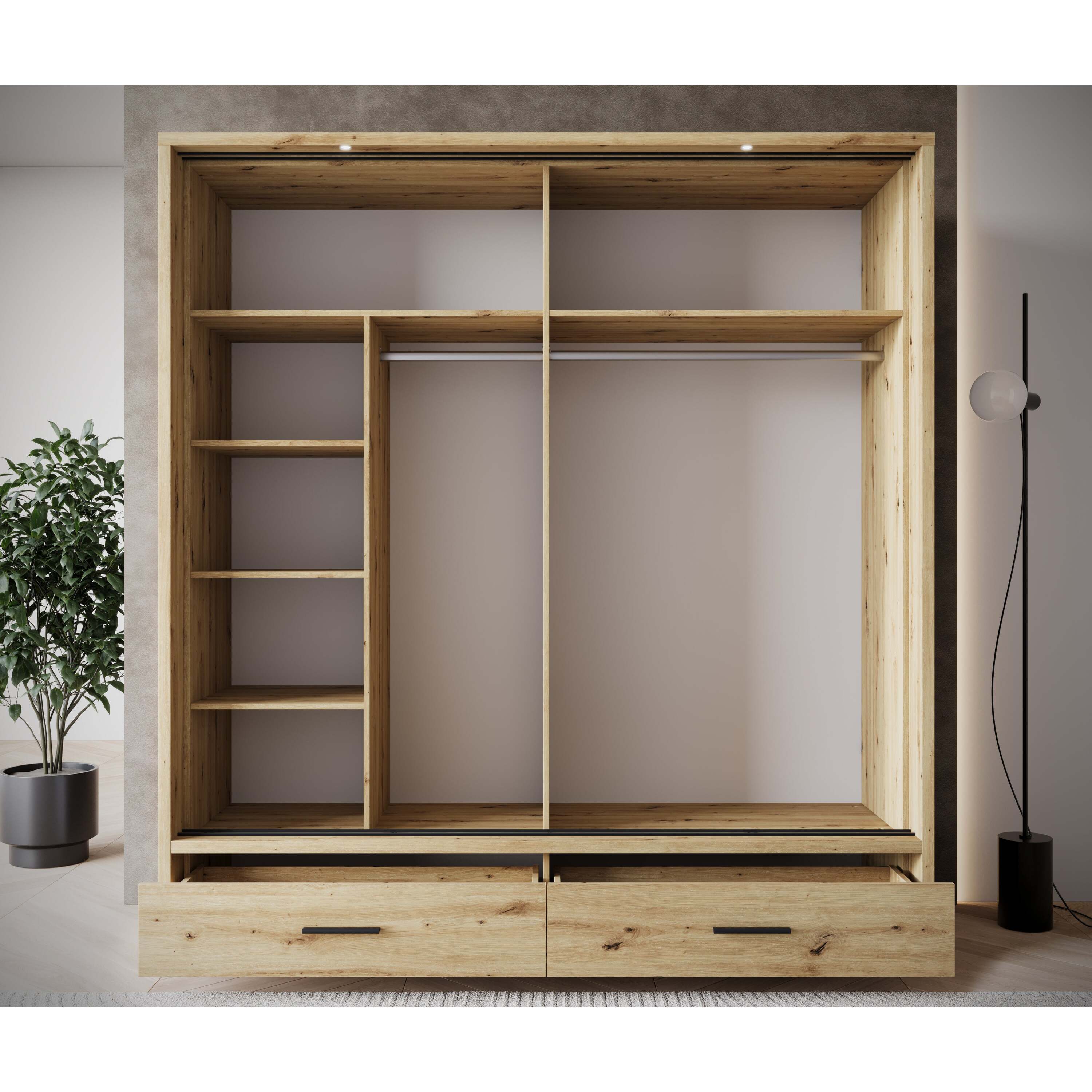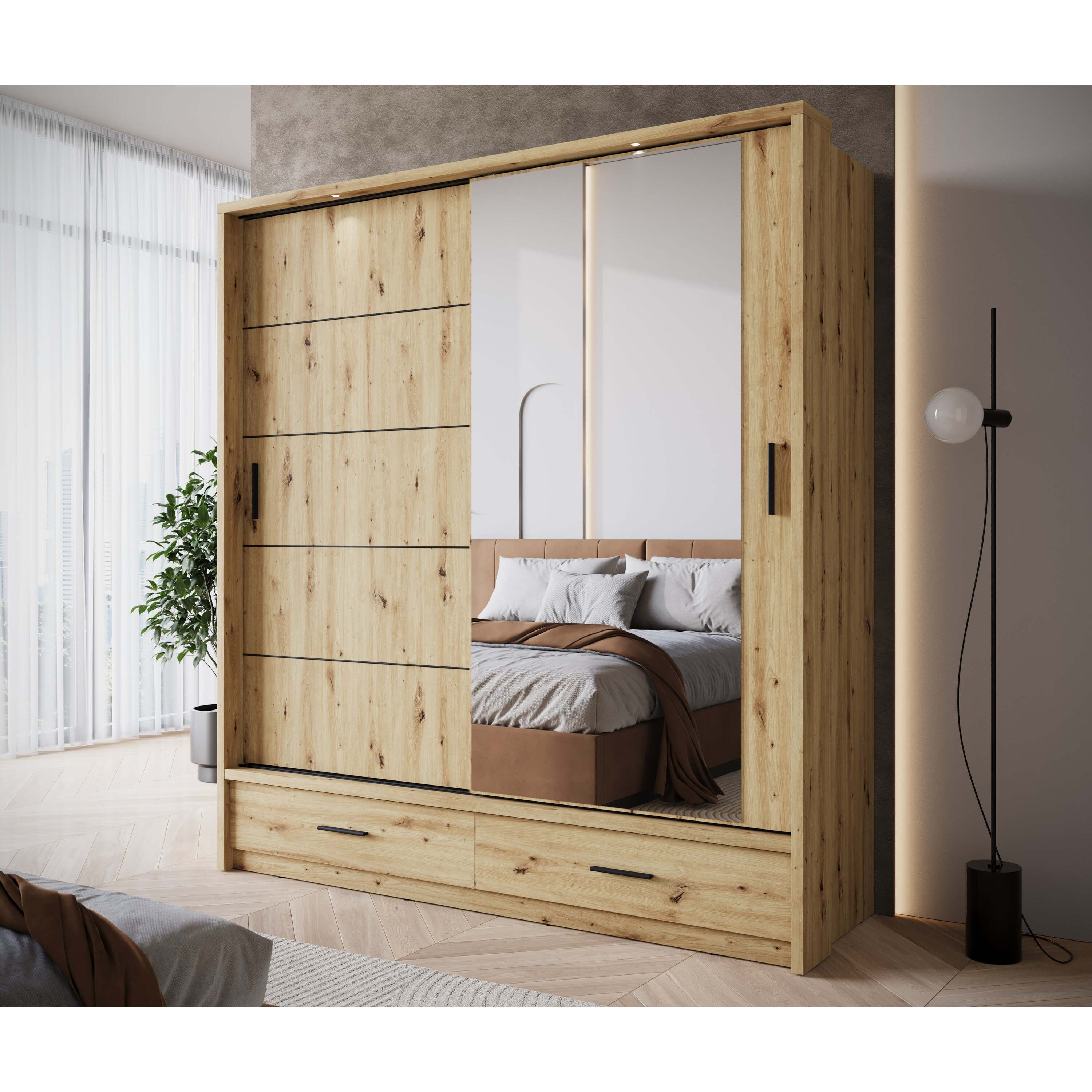 Meubella - Kledingkast Autumn - Eiken - 200 cm - Met spiegel
