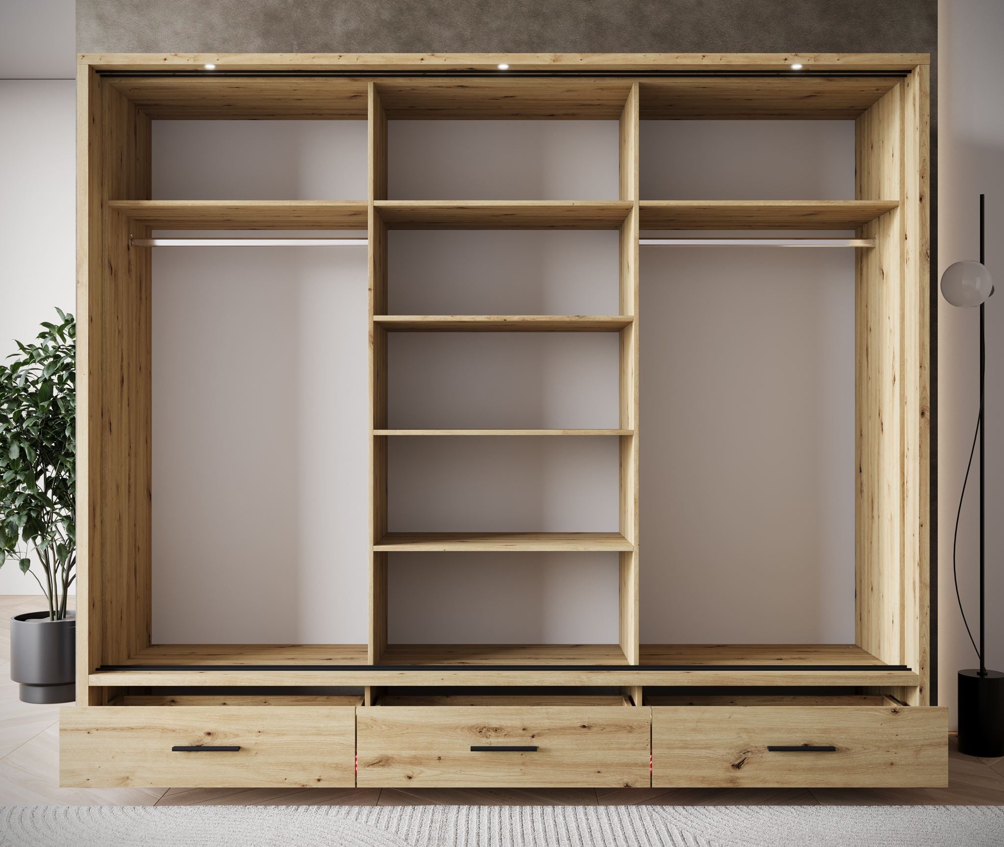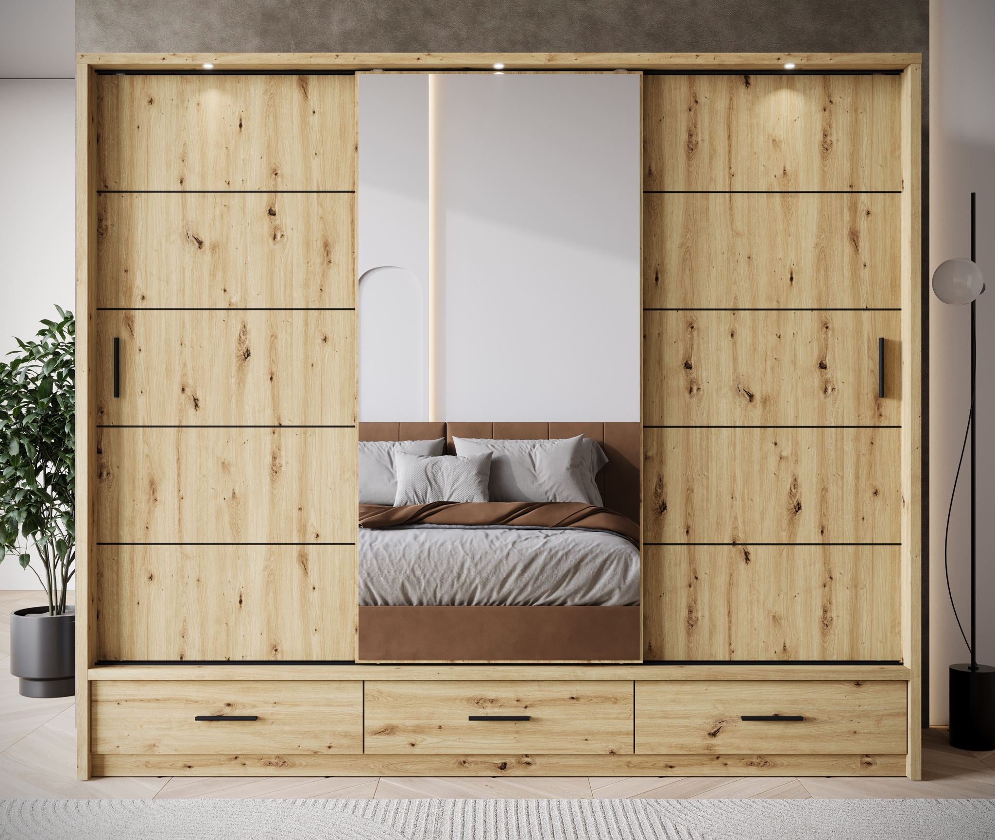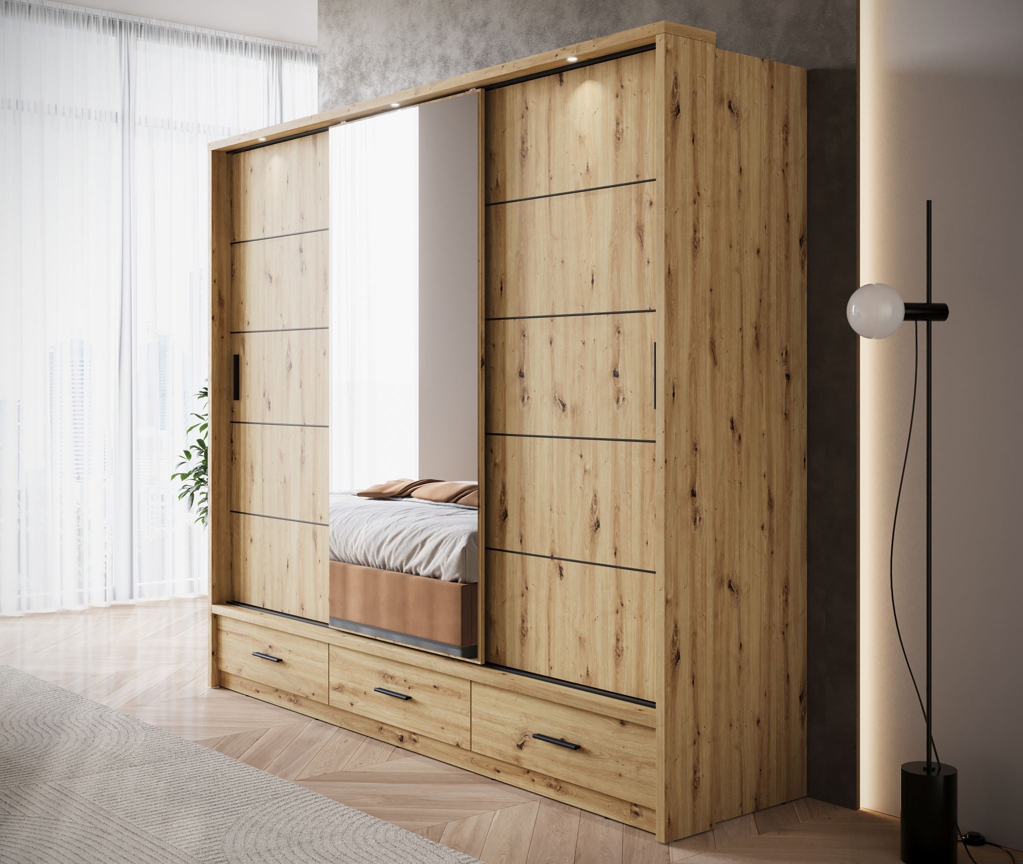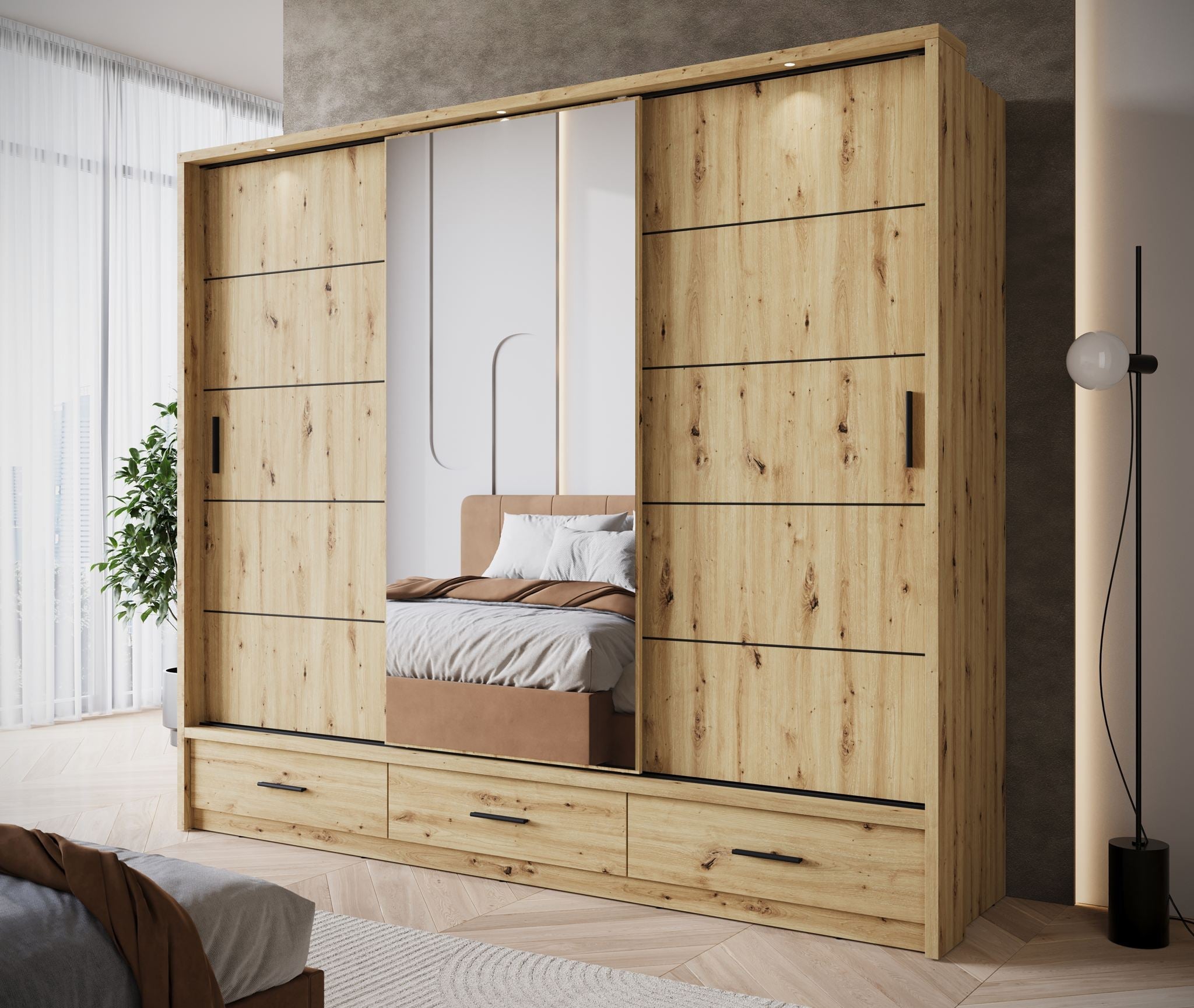 Meubella - Kledingkast Autumn - Eiken - 250 cm - Met spiegel