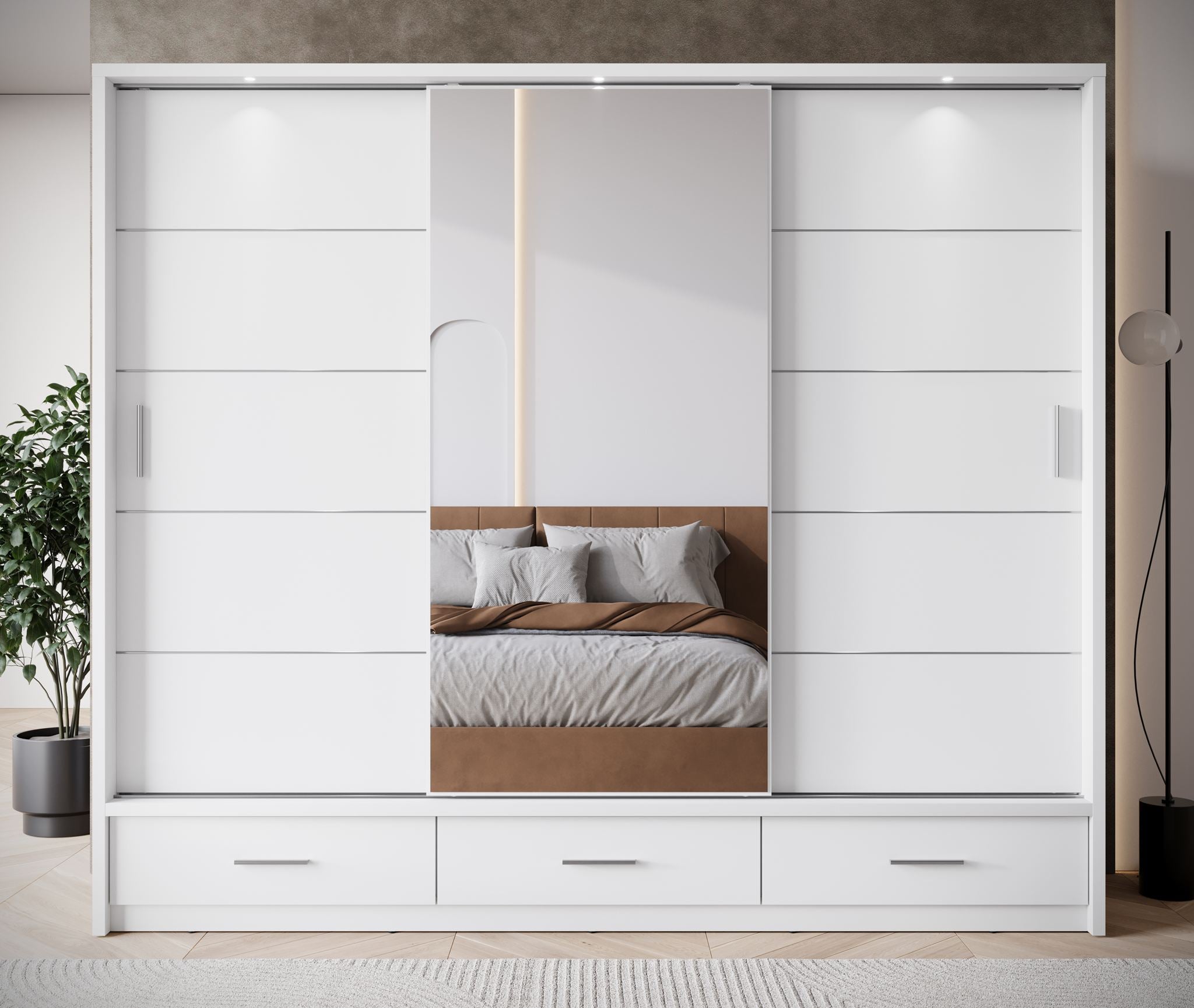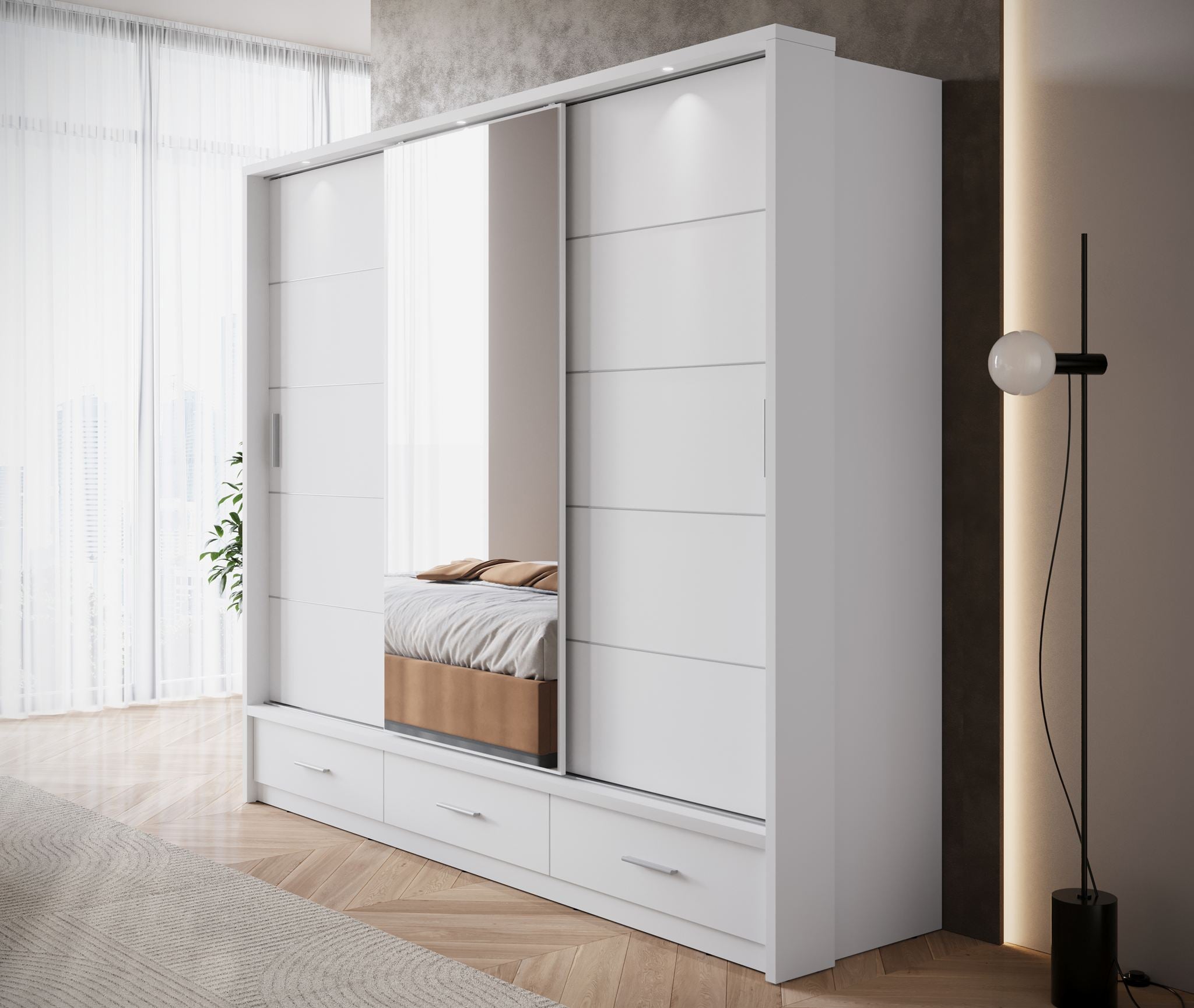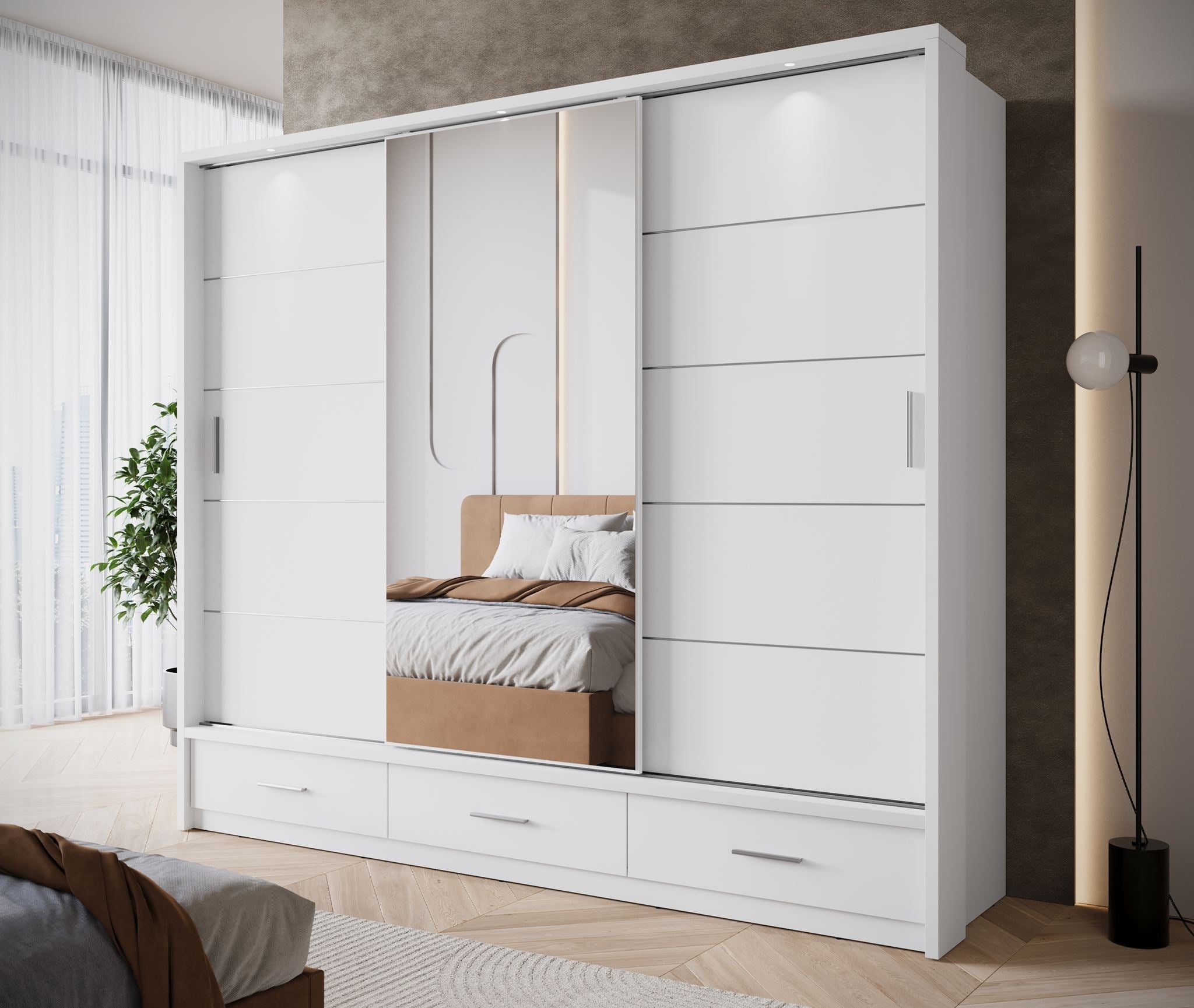 Meubella - Kledingkast Autumn - Wit - 250 cm - Met spiegel