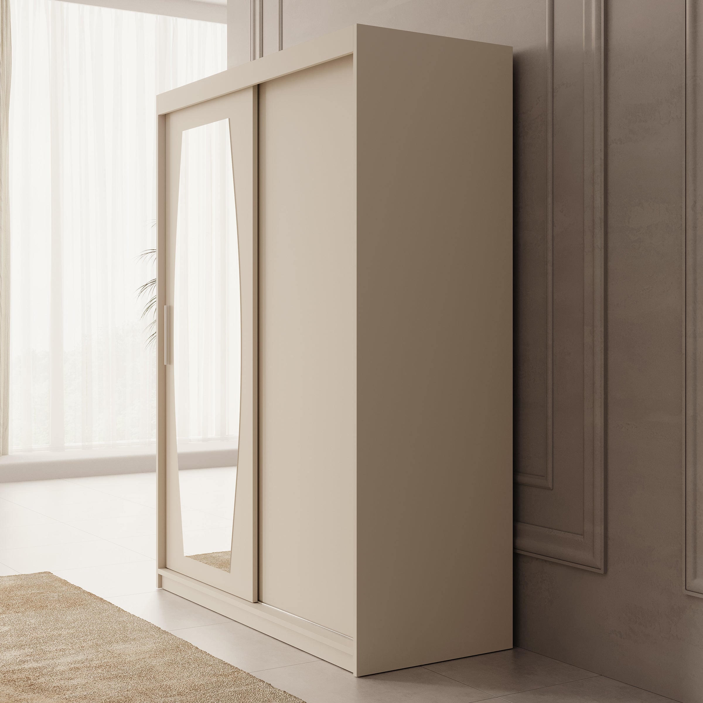 Meubella - Kledingkast Azai - Beige - 150 cm - Met spiegel