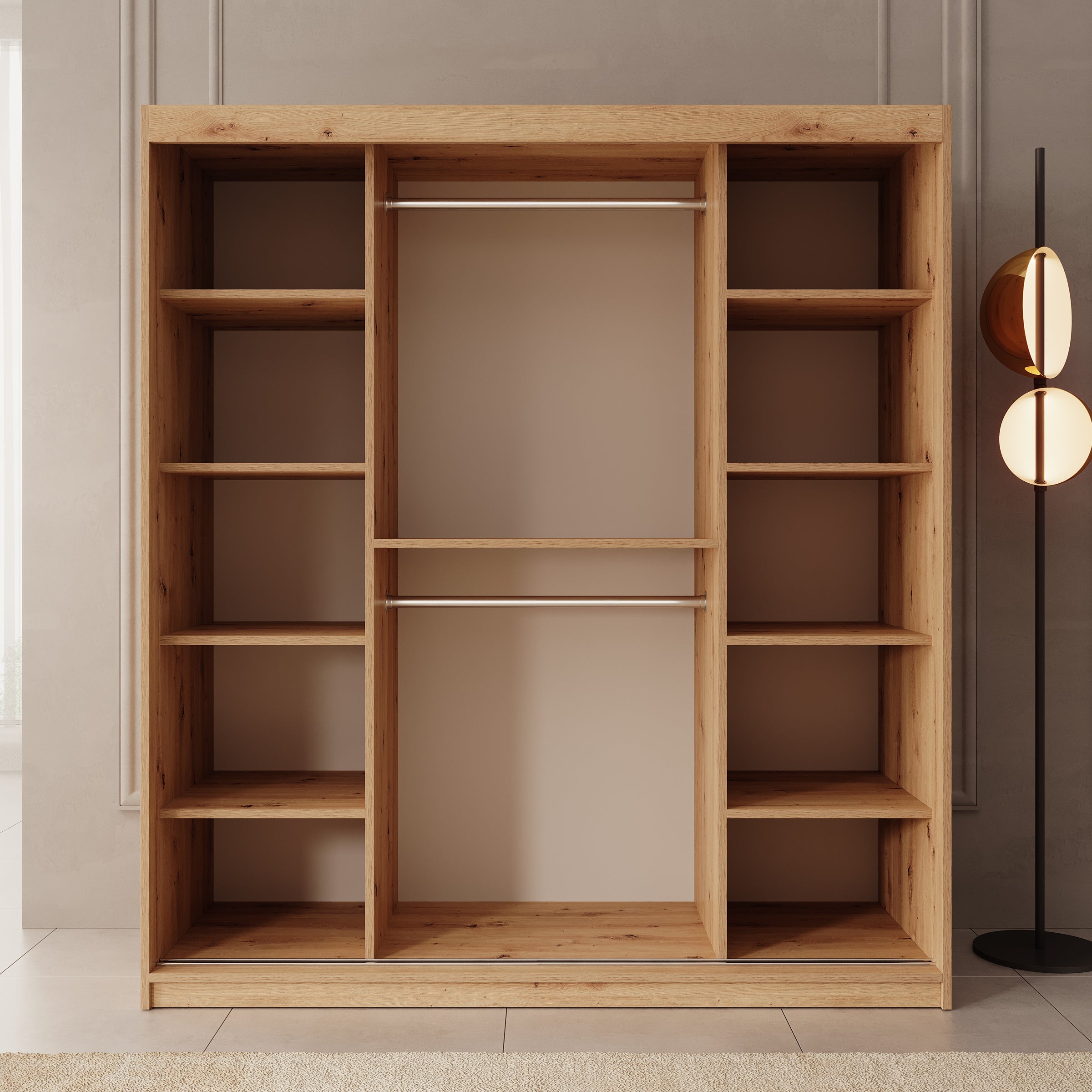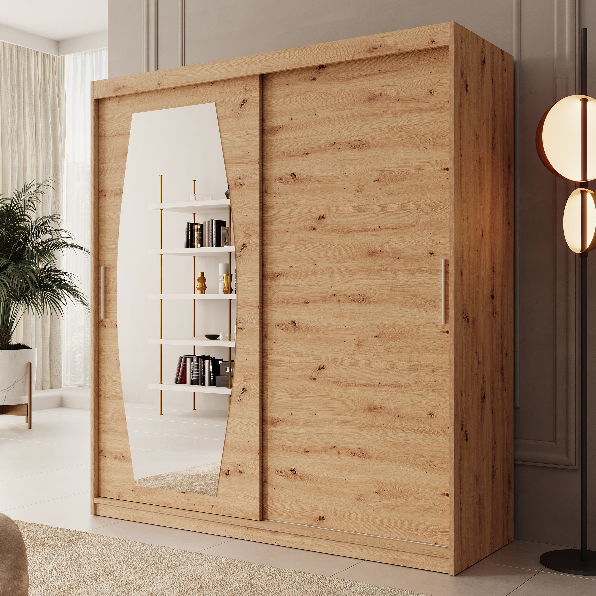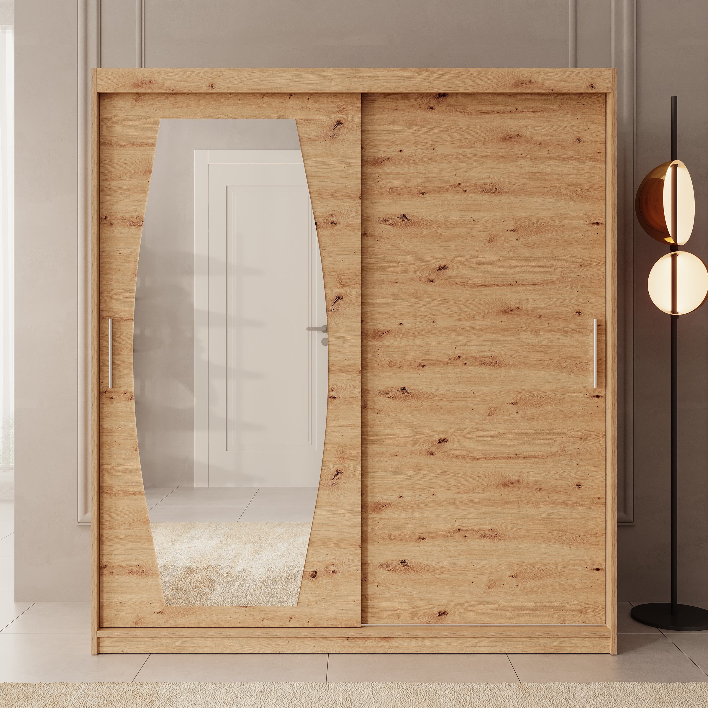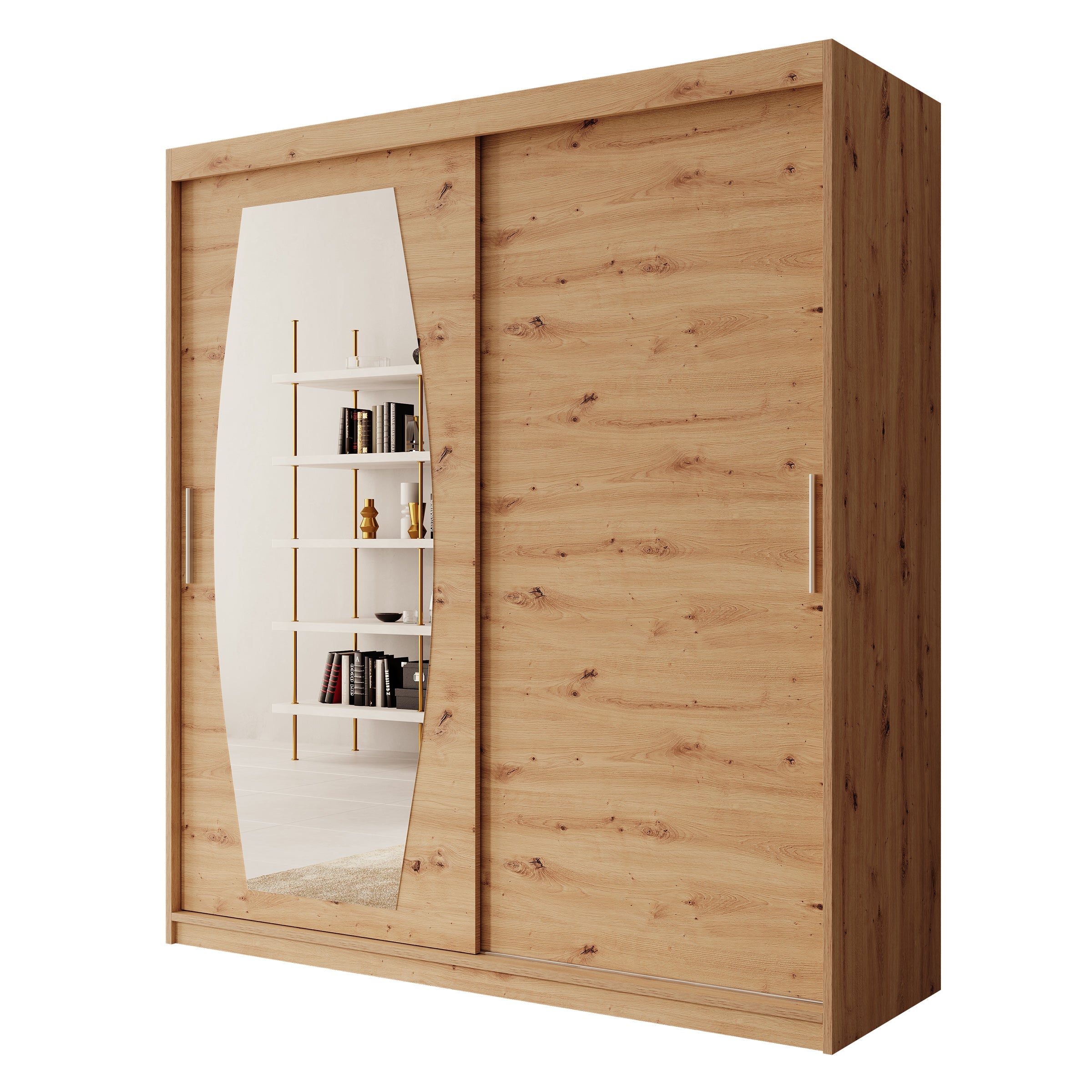 Meubella - Kledingkast Azai - Eiken - 180 cm - Met spiegel
