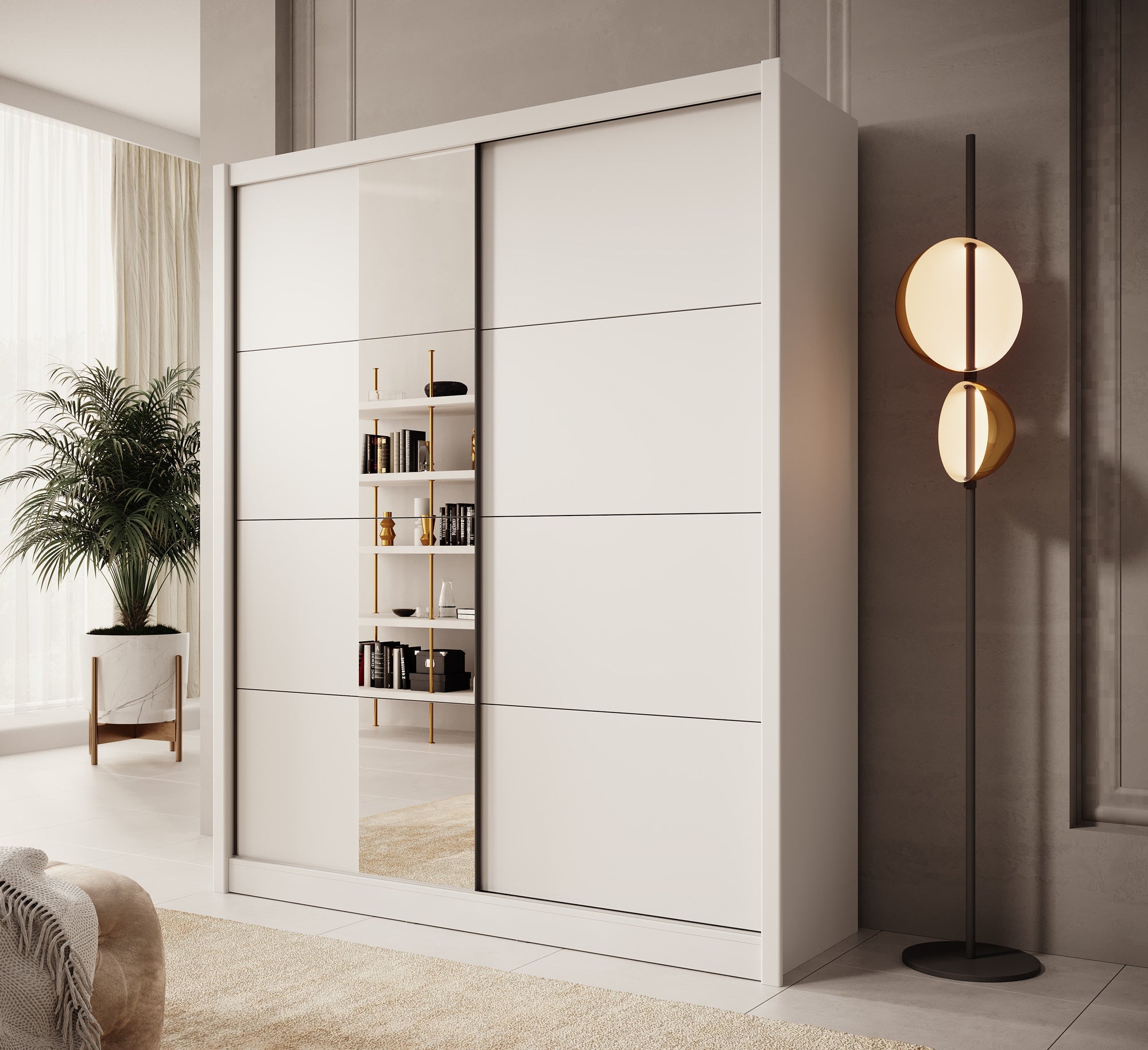 Meubella - Kledingkast Azul - Wit - 180 cm - Met spiegel