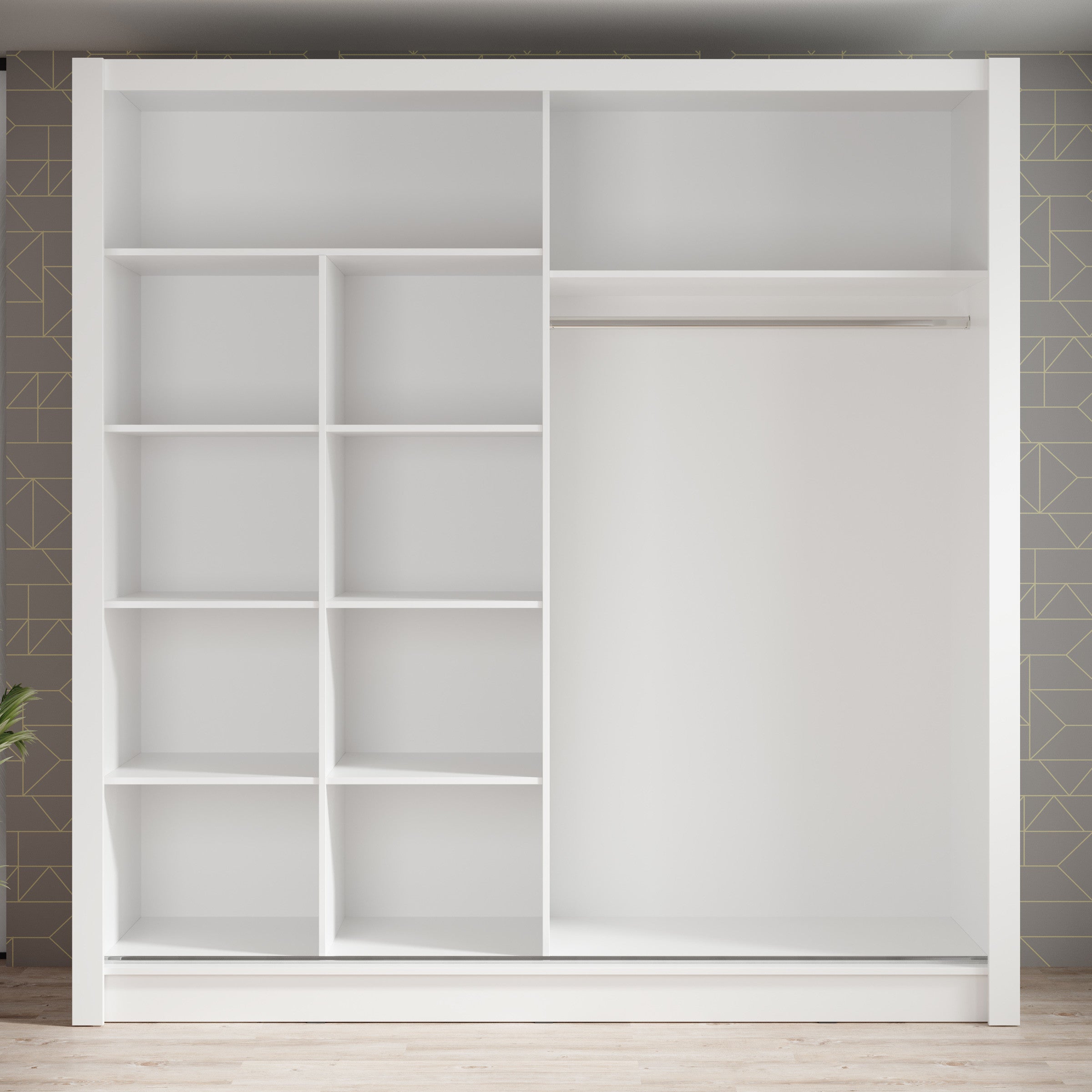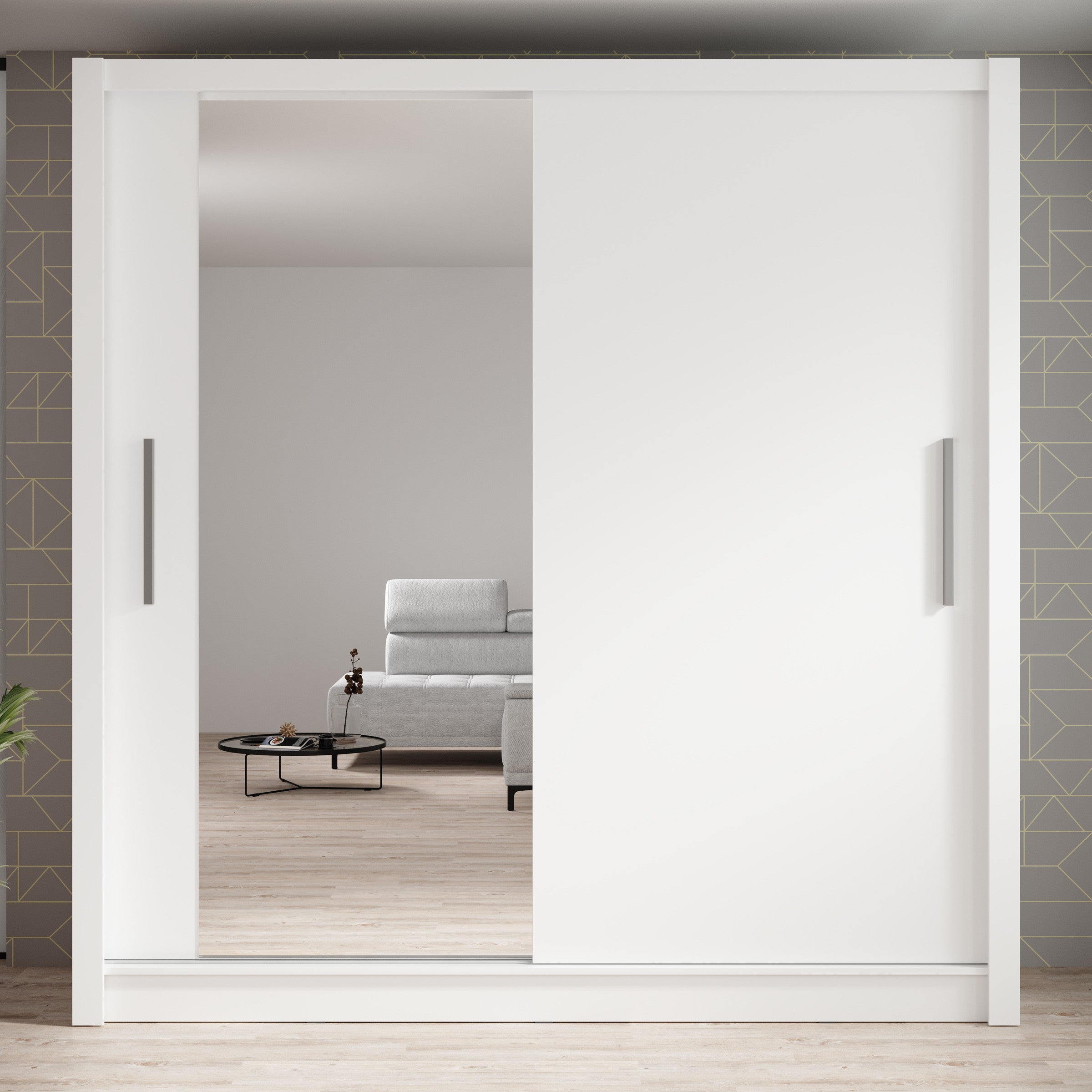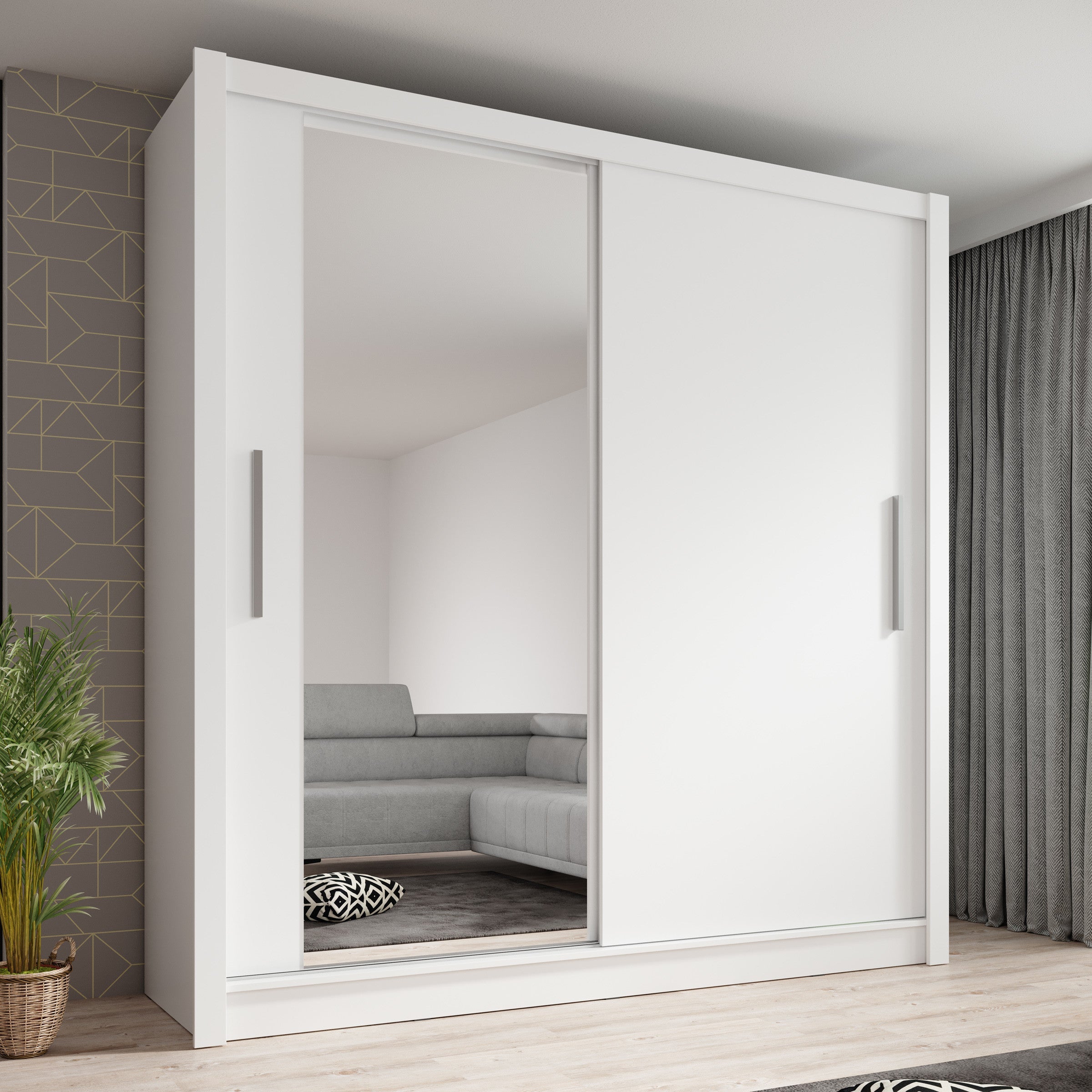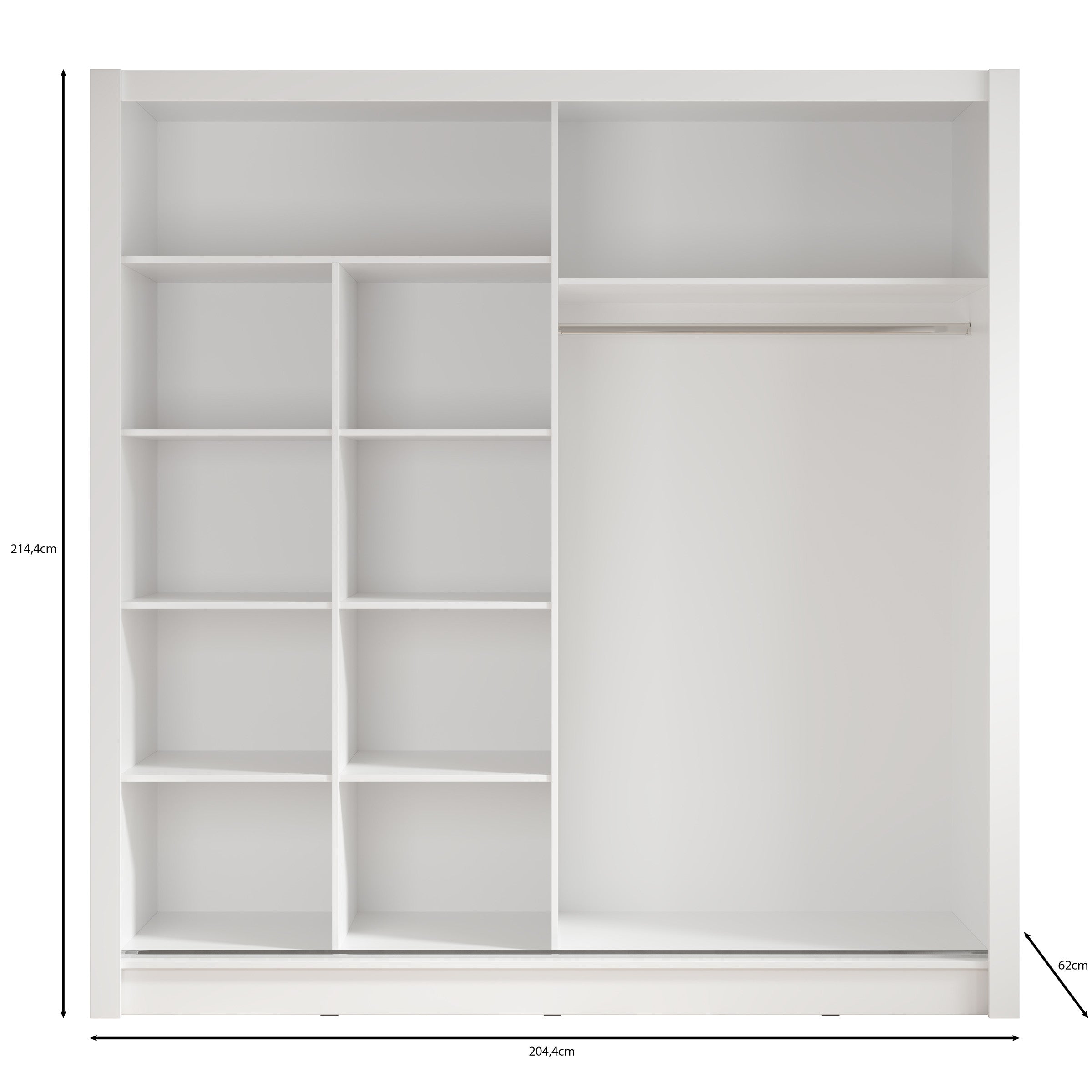 Meubella - Kledingkast Bazarre - Wit - 205 cm - Met spiegel