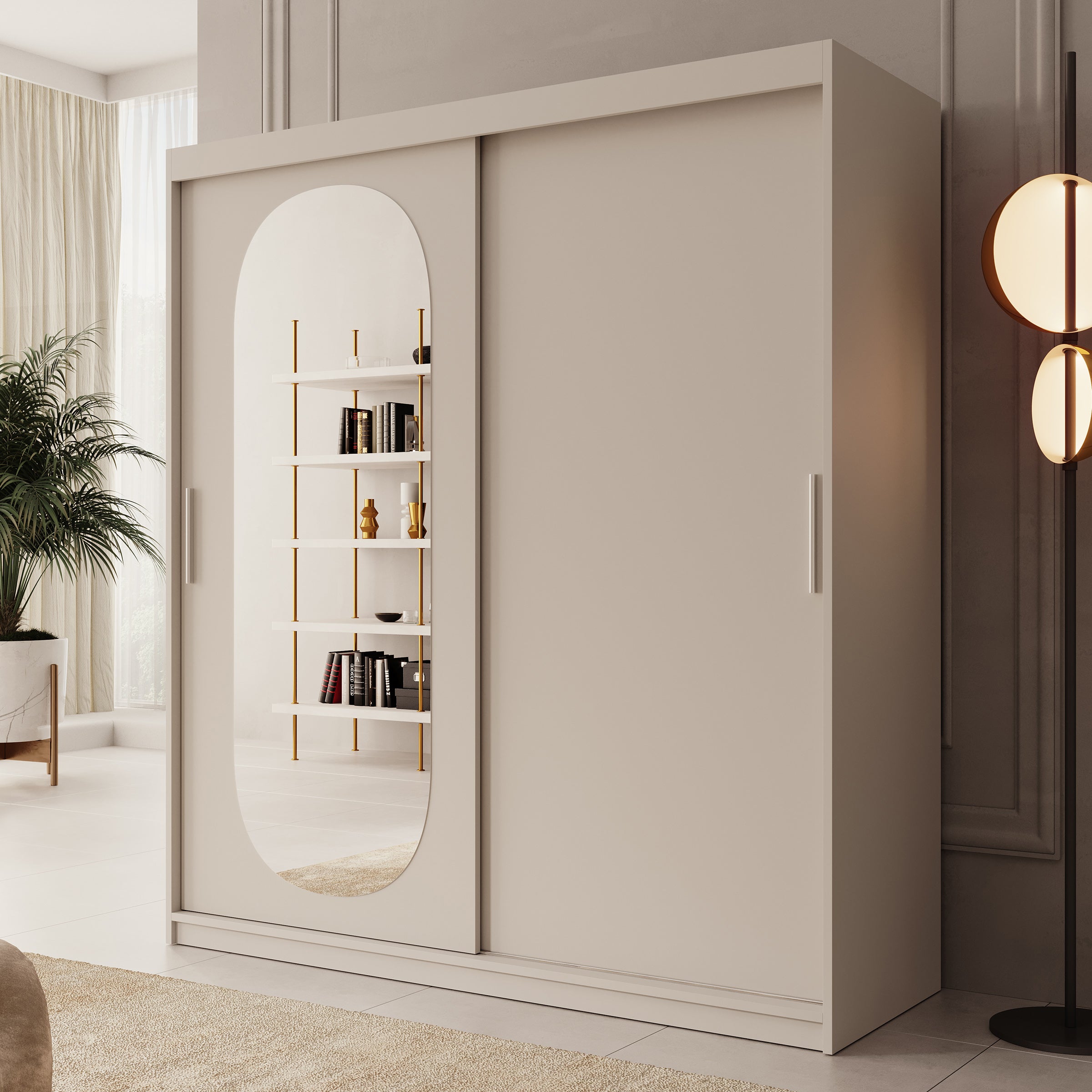 Meubella - Kledingkast Bodhi - Beige - 180 cm - Met spiegel