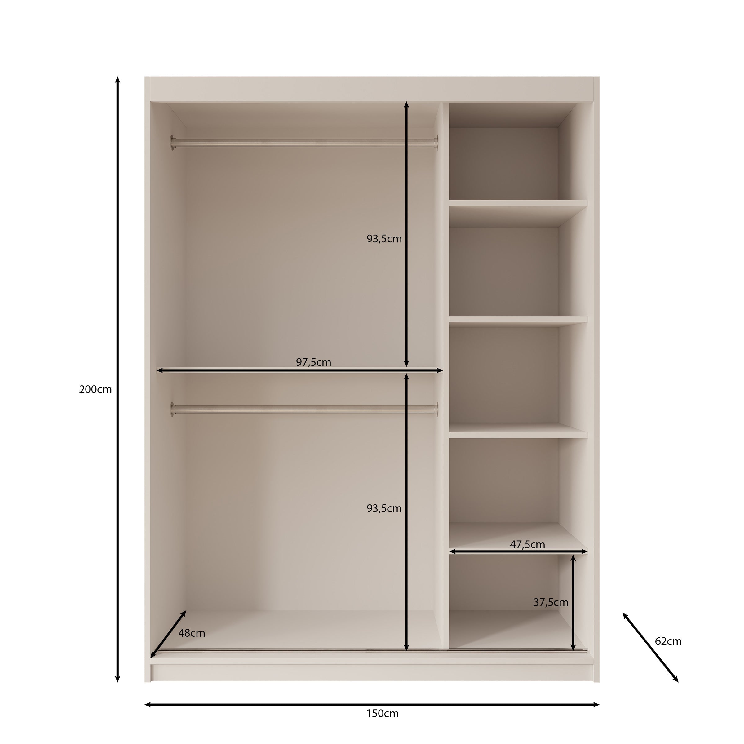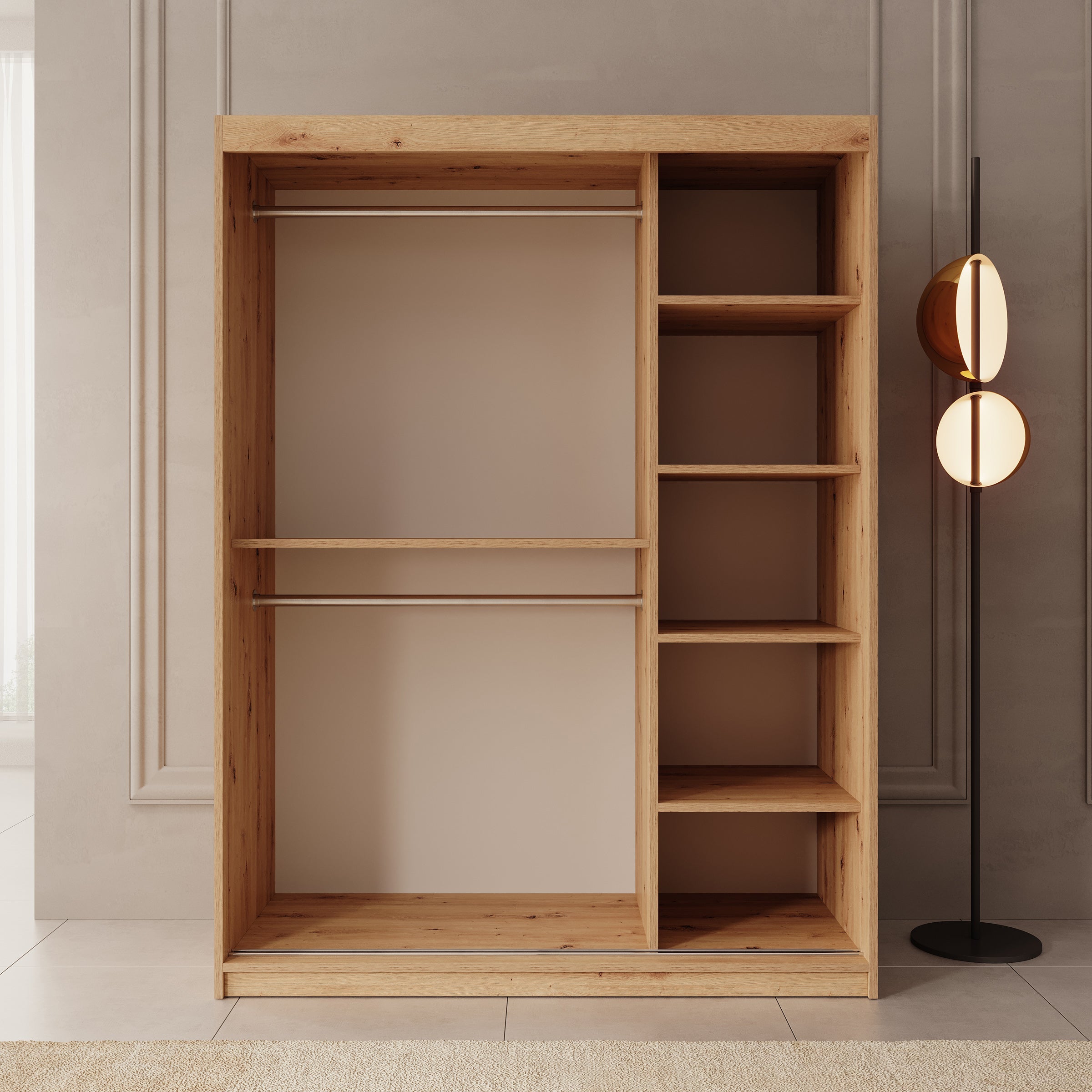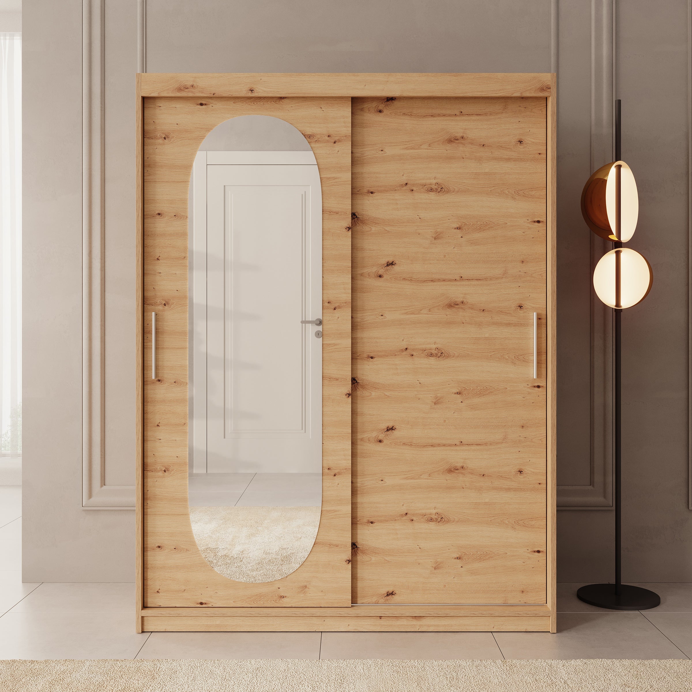 Meubella - Kledingkast Bodhi - Eiken - 150 cm - Met spiegel