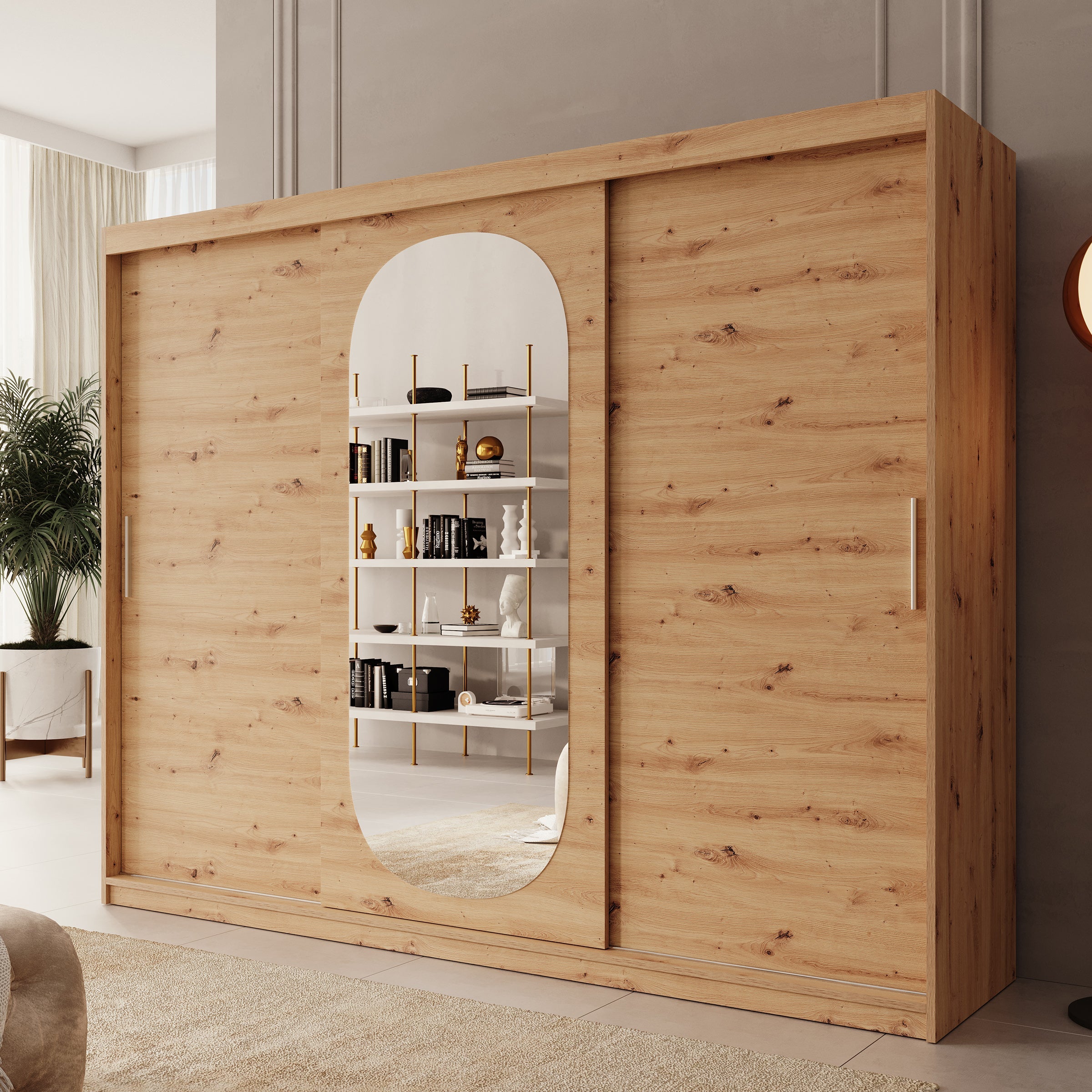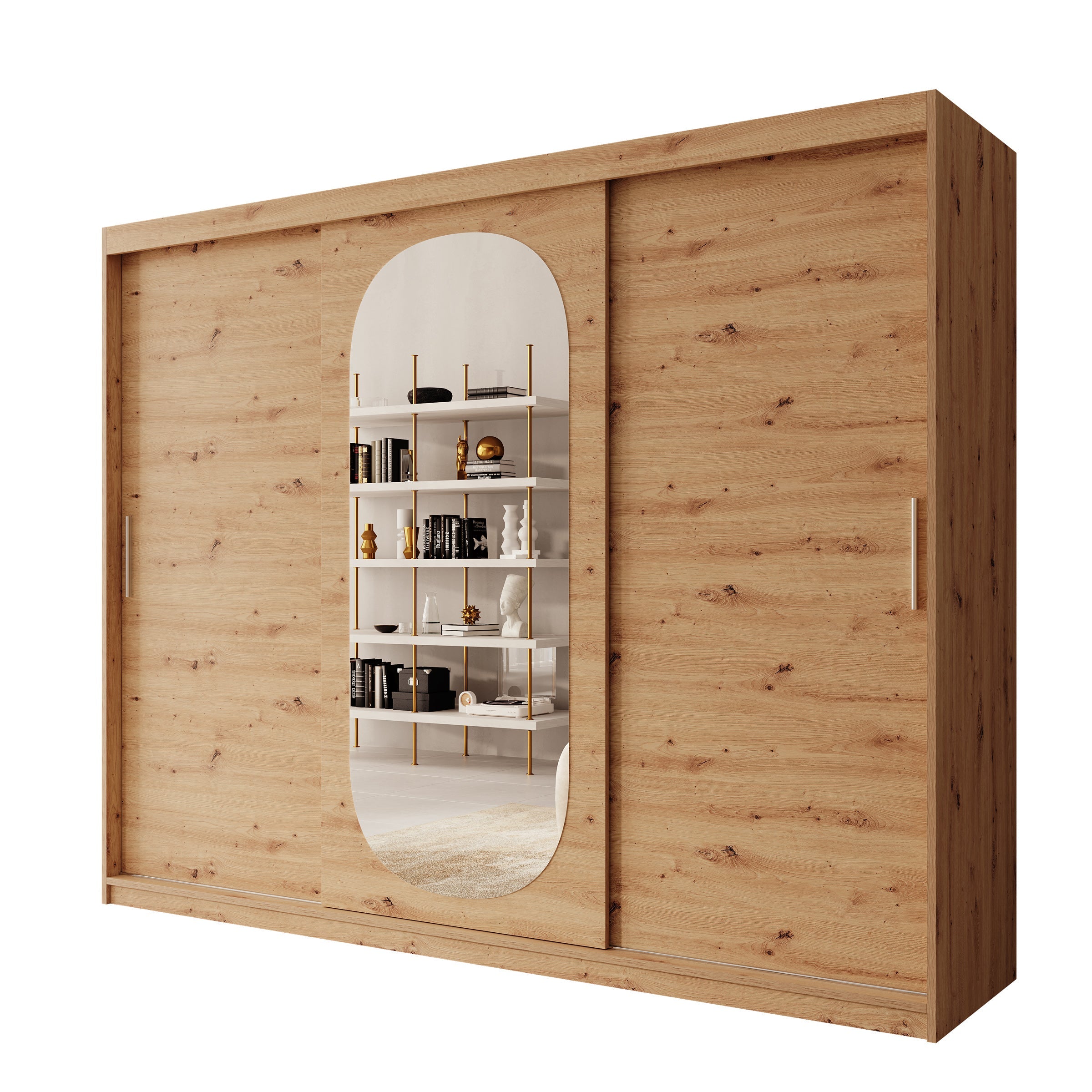Meubella - Kledingkast Bodhi - Eiken - 250 cm - Met spiegel