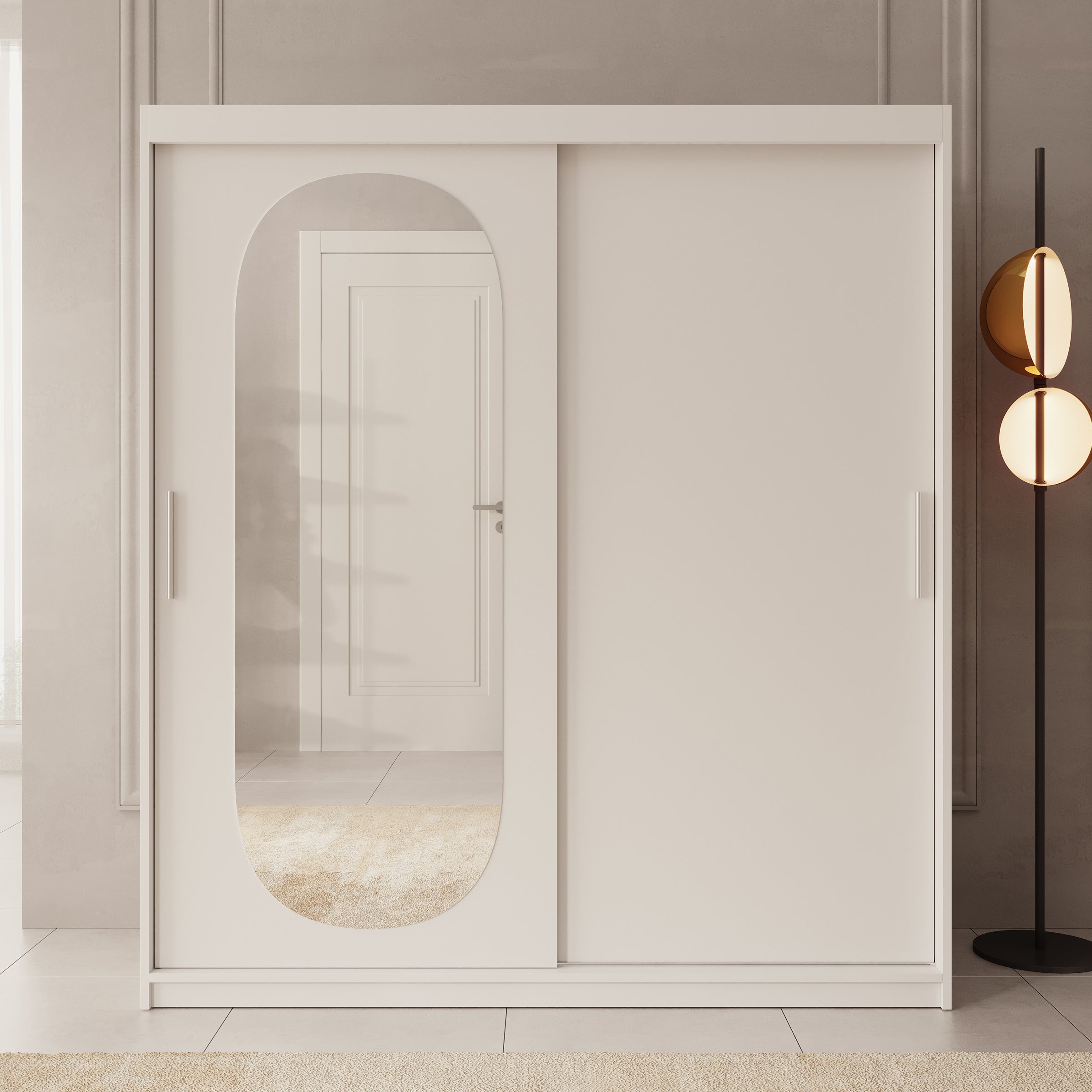 Meubella - Kledingkast Bodhi - Wit - 180 cm - Met spiegel