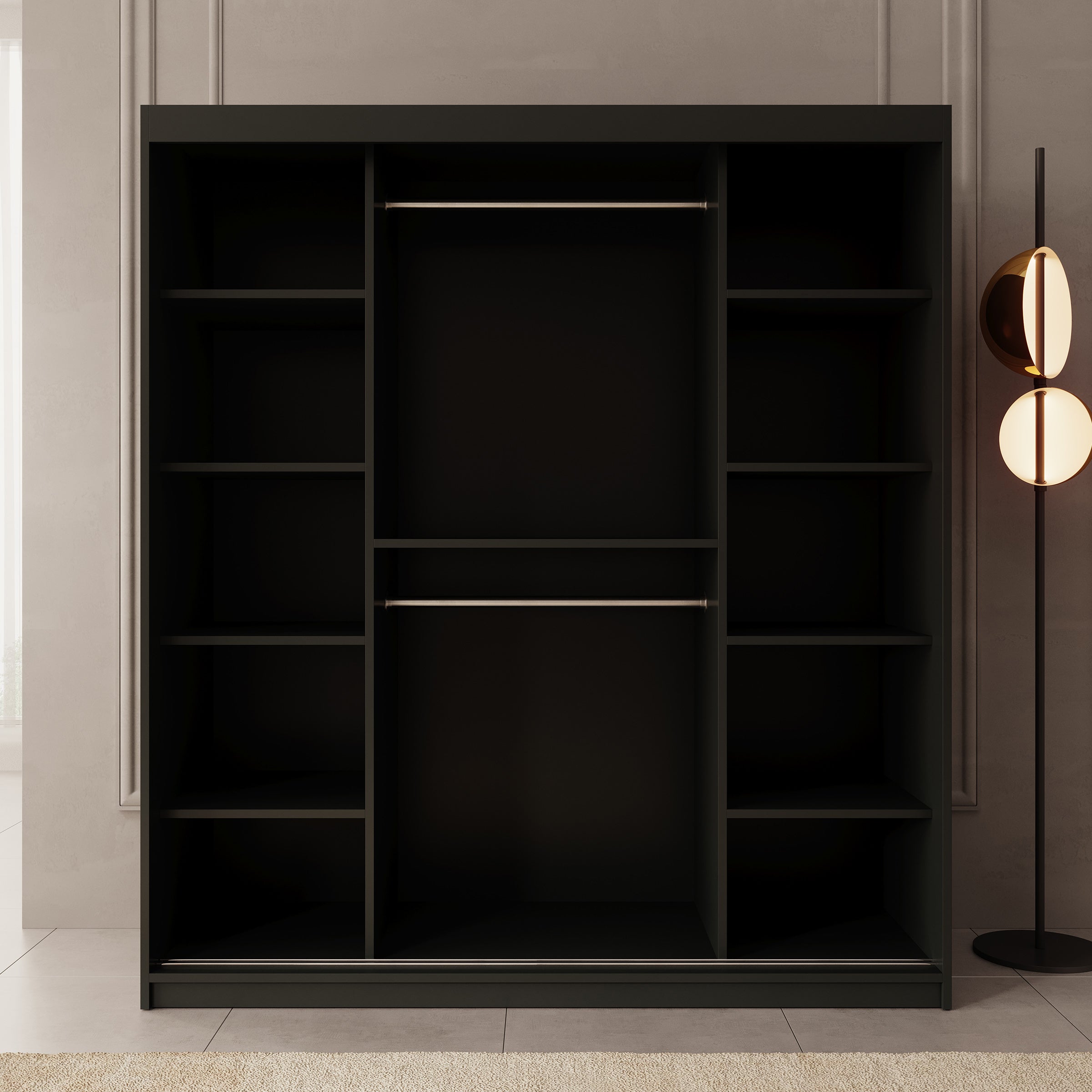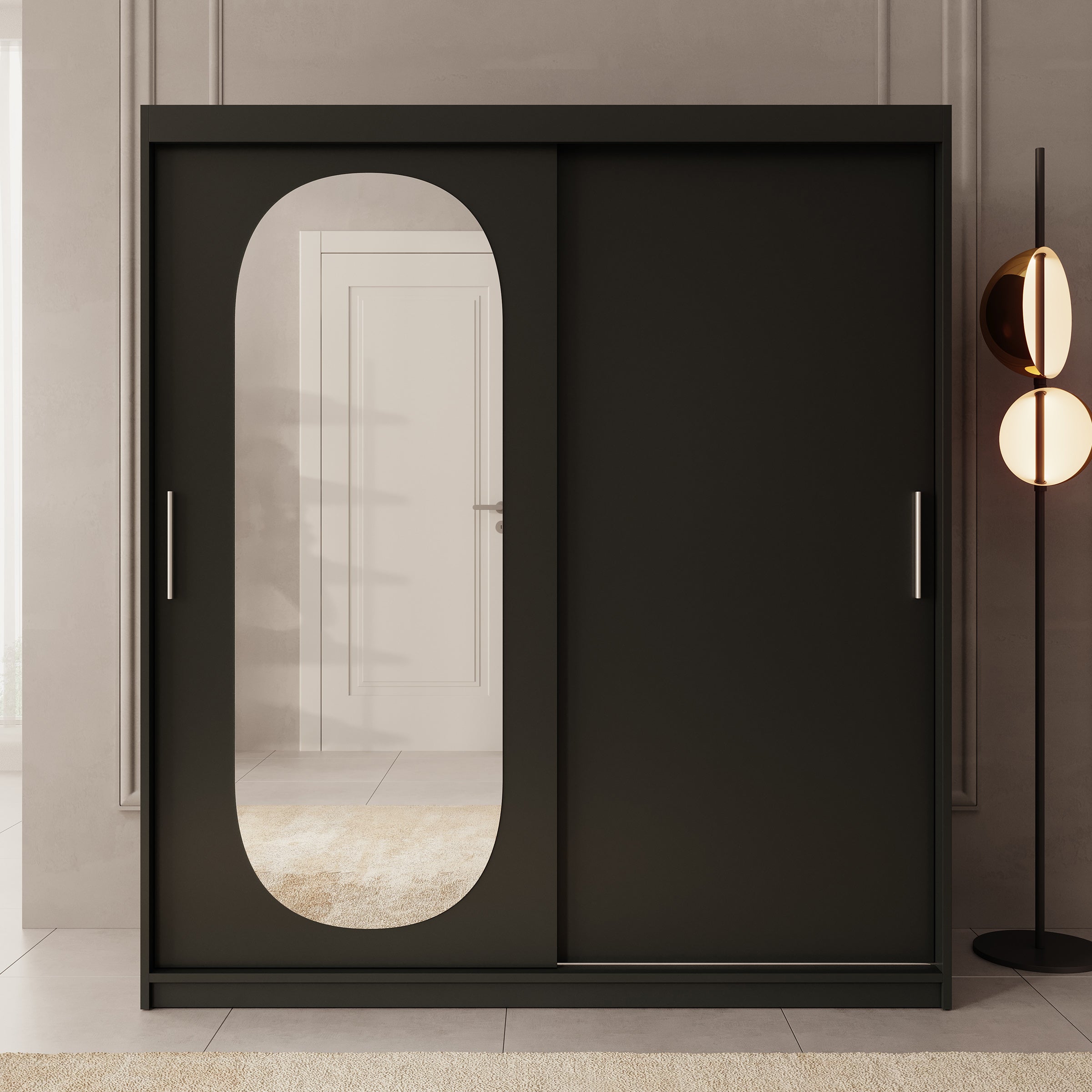 Meubella - Kledingkast Bodhi - Zwart - 180 cm - Met spiegel