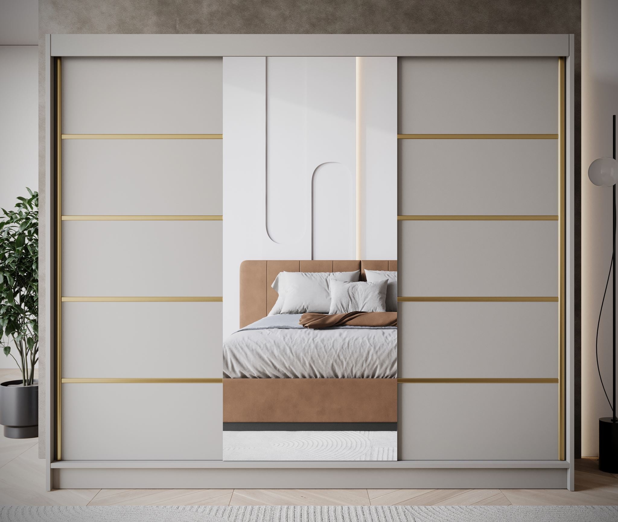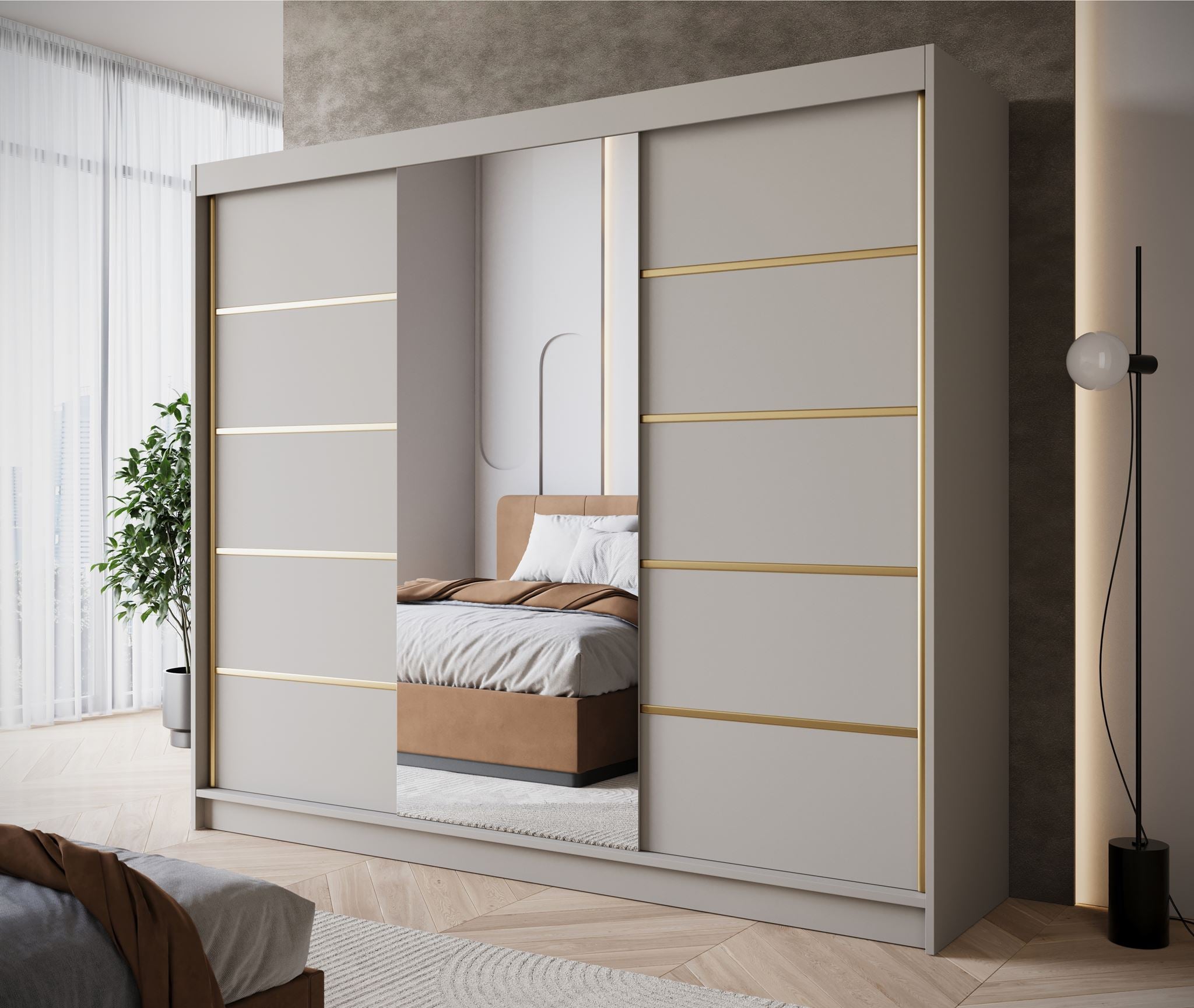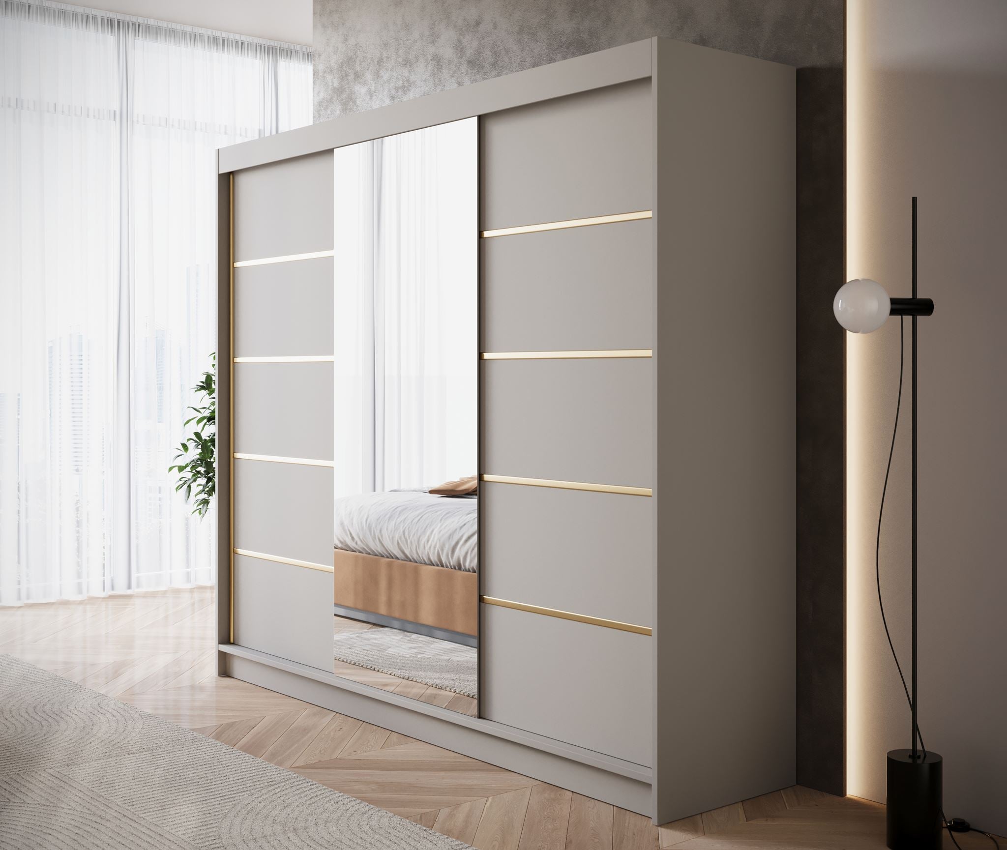 Meubella Kledingkast Eagle - Beige - 250 cm - Met spiegel