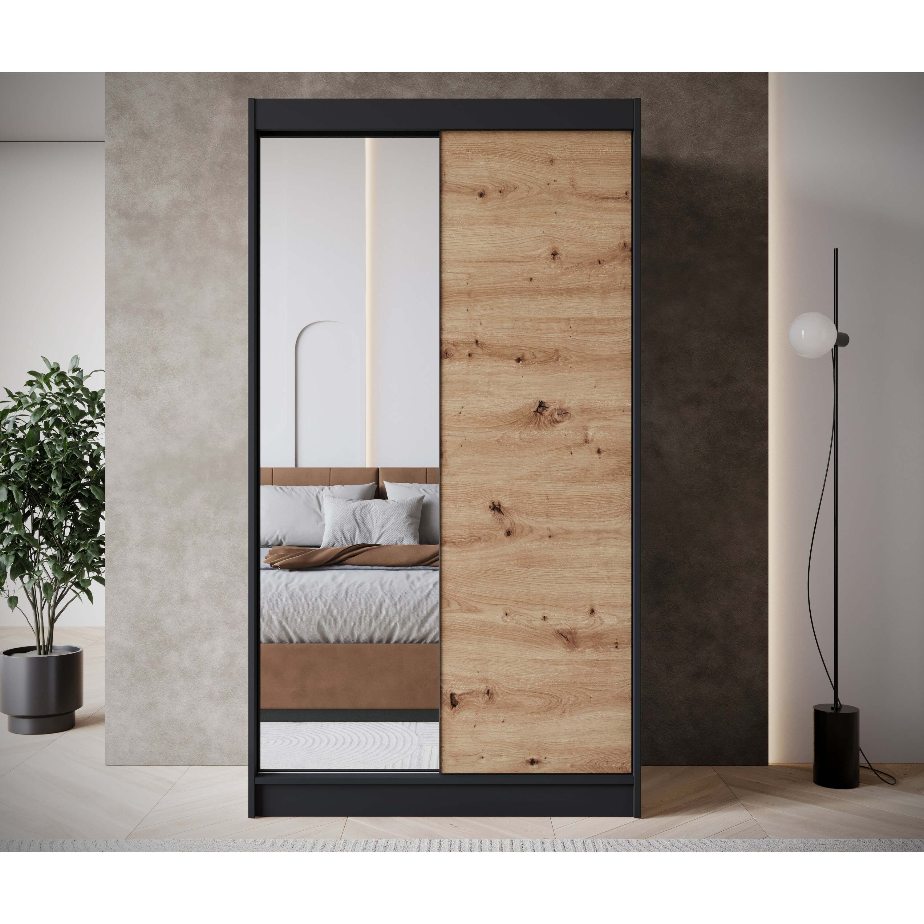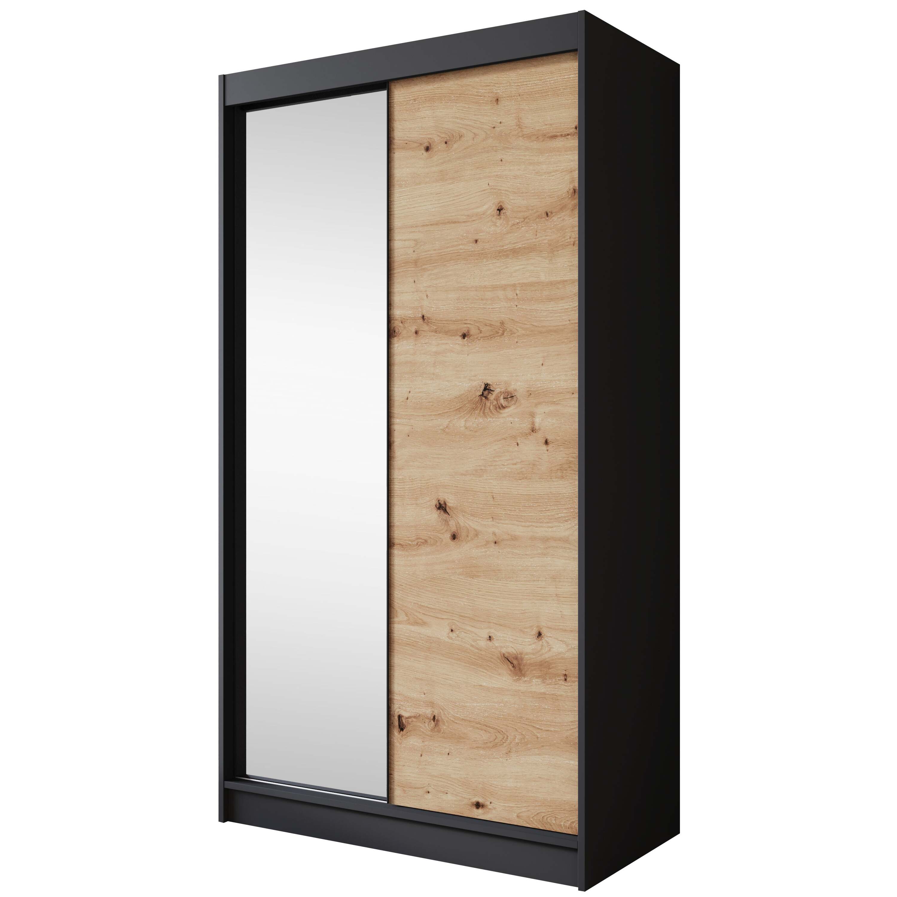 Meubella - Kledingkast Epirus - Zwart - 120 cm - Met spiegel