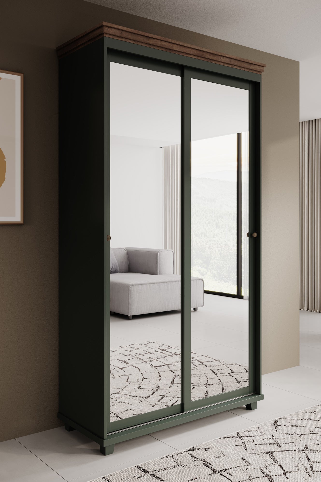 Meubella - Kledingkast Eric - Groen - 120 cm - Met spiegel
