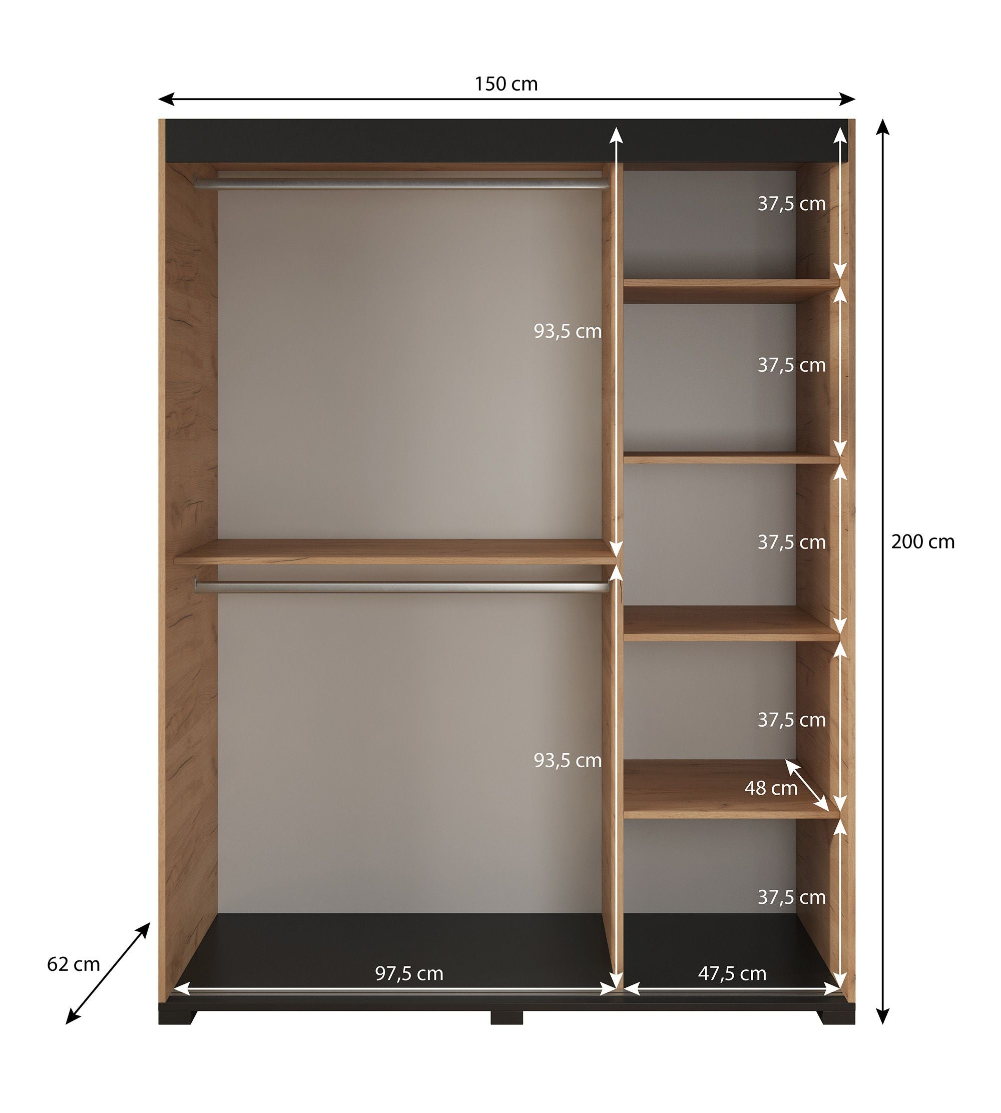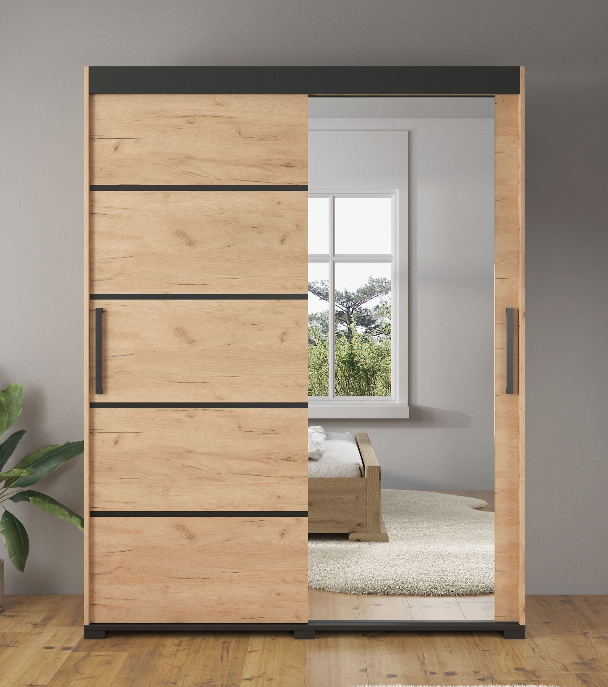 Meubella Kledingkast Fabio - Eiken - 150 cm - Met spiegel