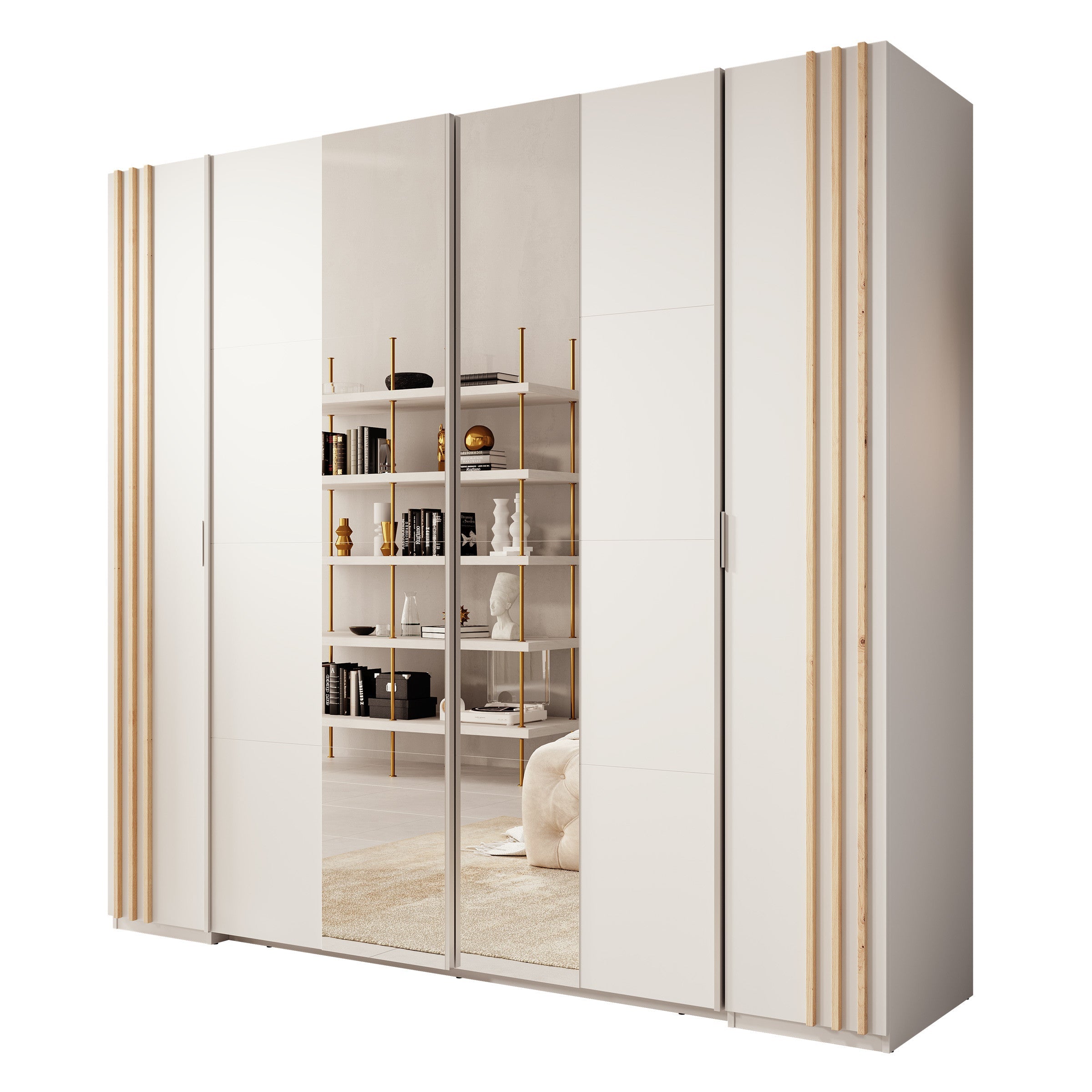 Meubella - Kledingkast Franklin - Wit - 220 cm - Met spiegel