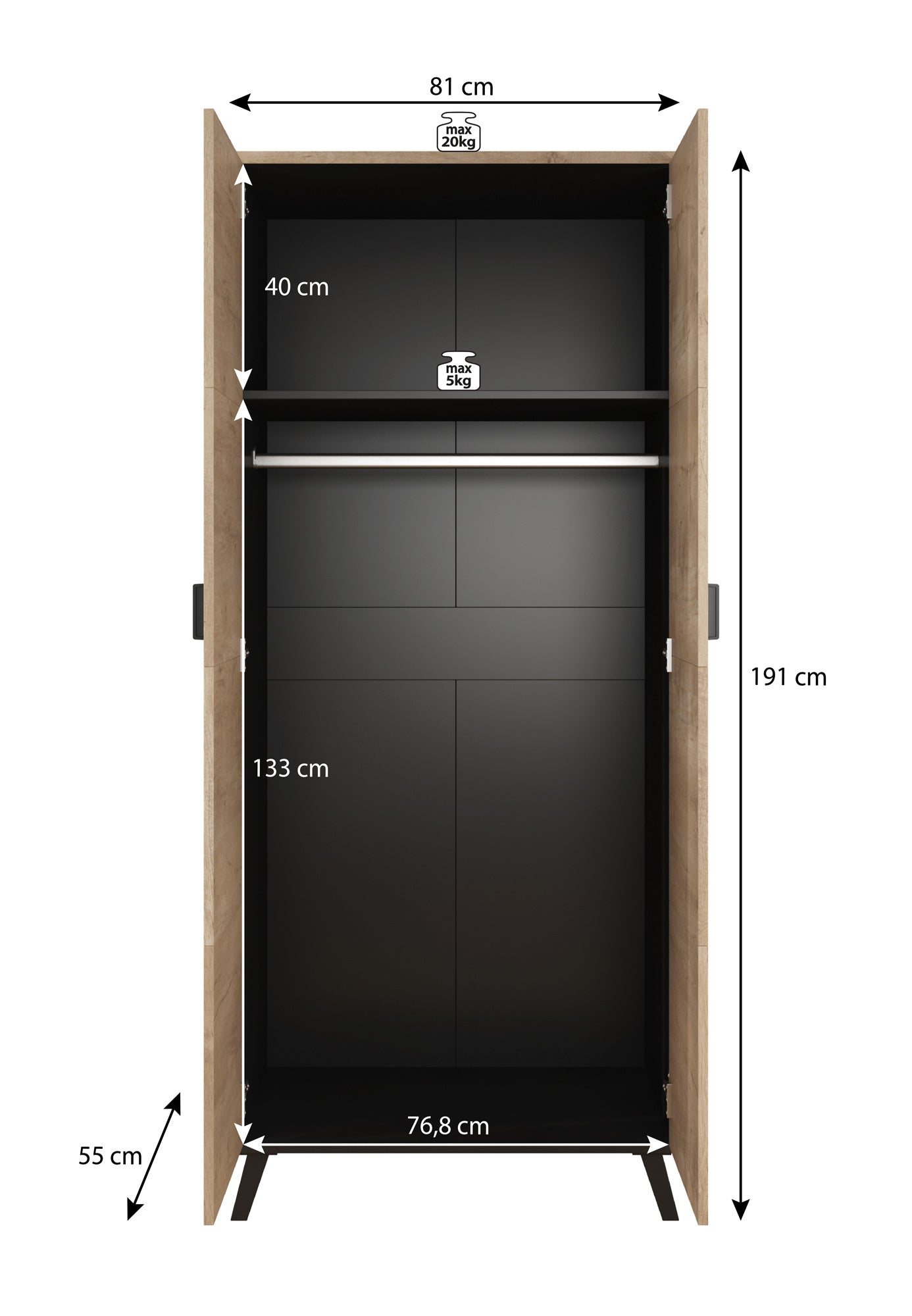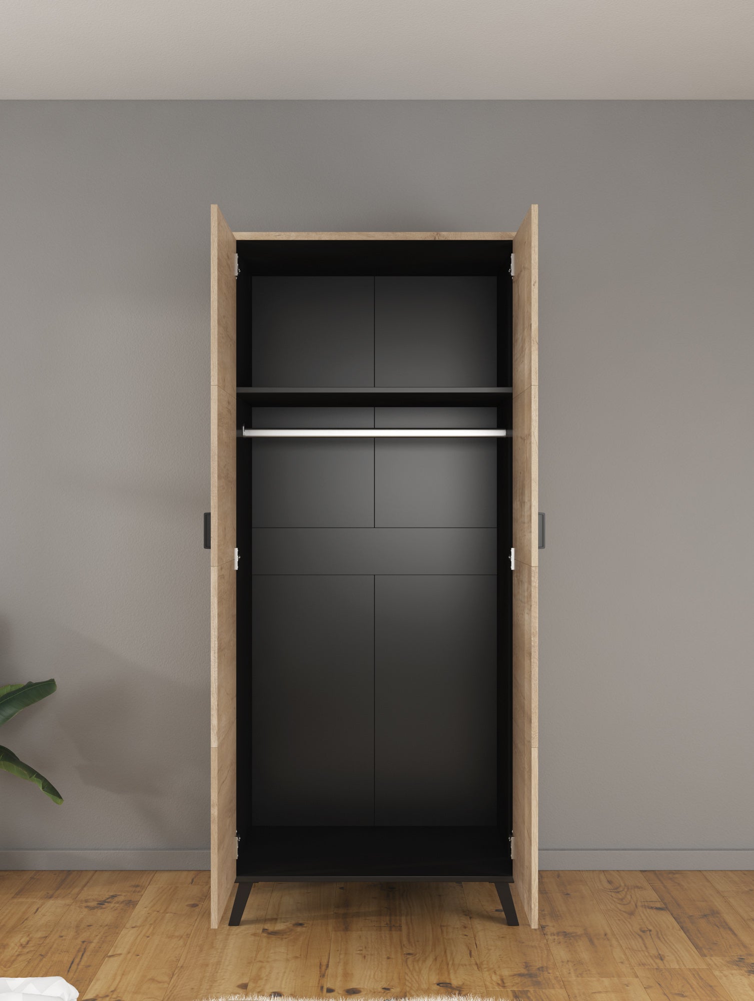 Meubella Kledingkast Jenny - Eiken - Zwart - 81 cm