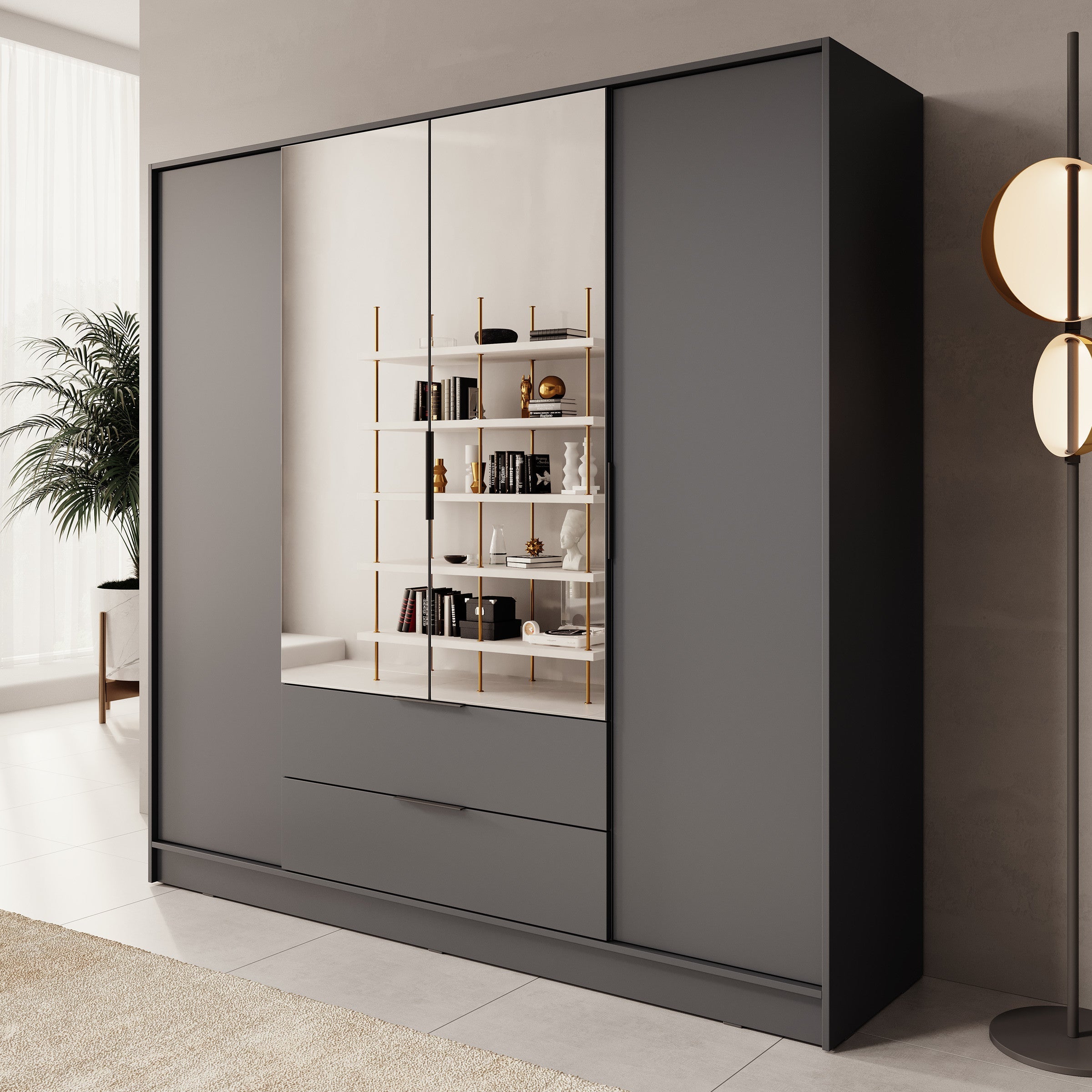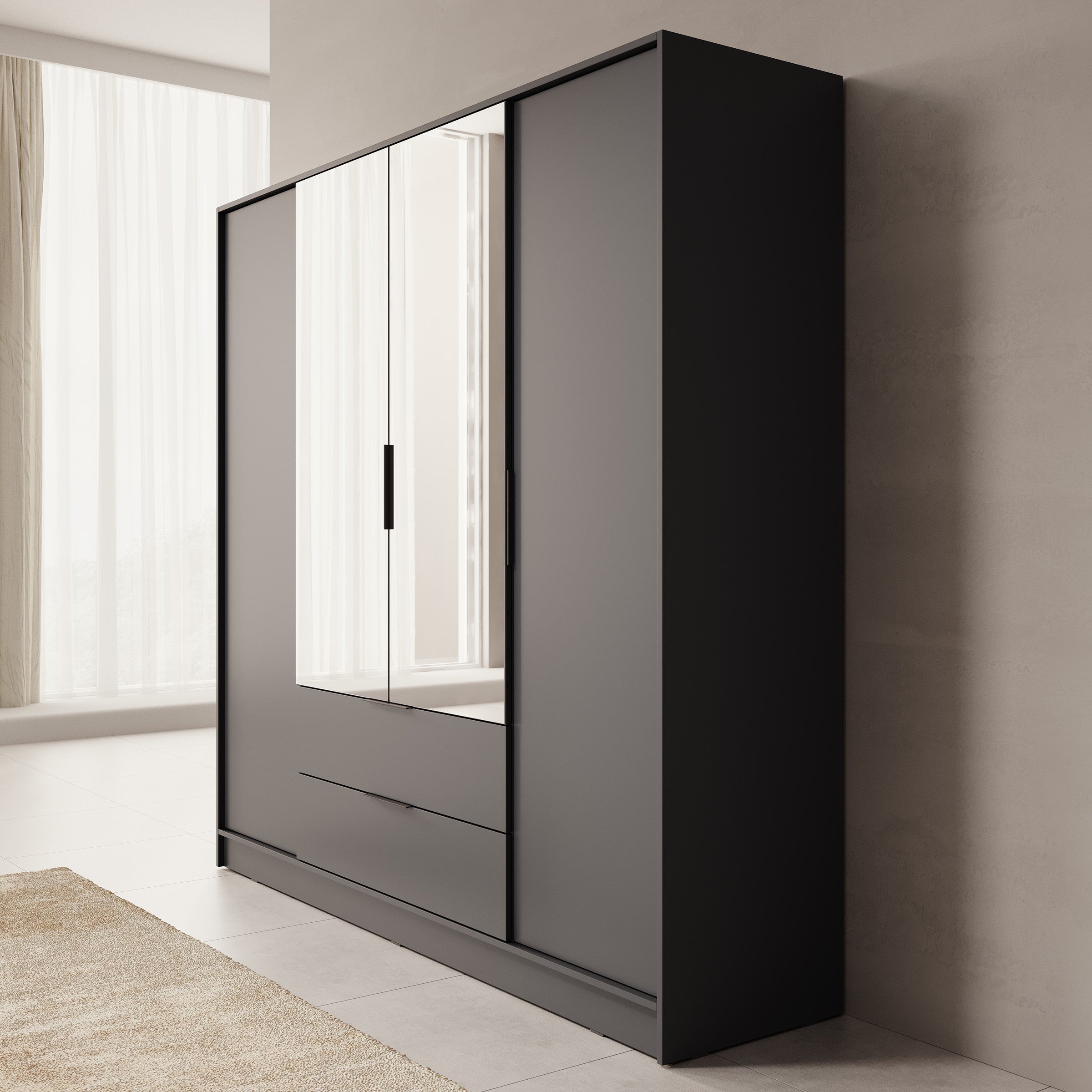 Meubella - Kledingkast Kaelum - Grijs - 206 cm - Met spiegel
