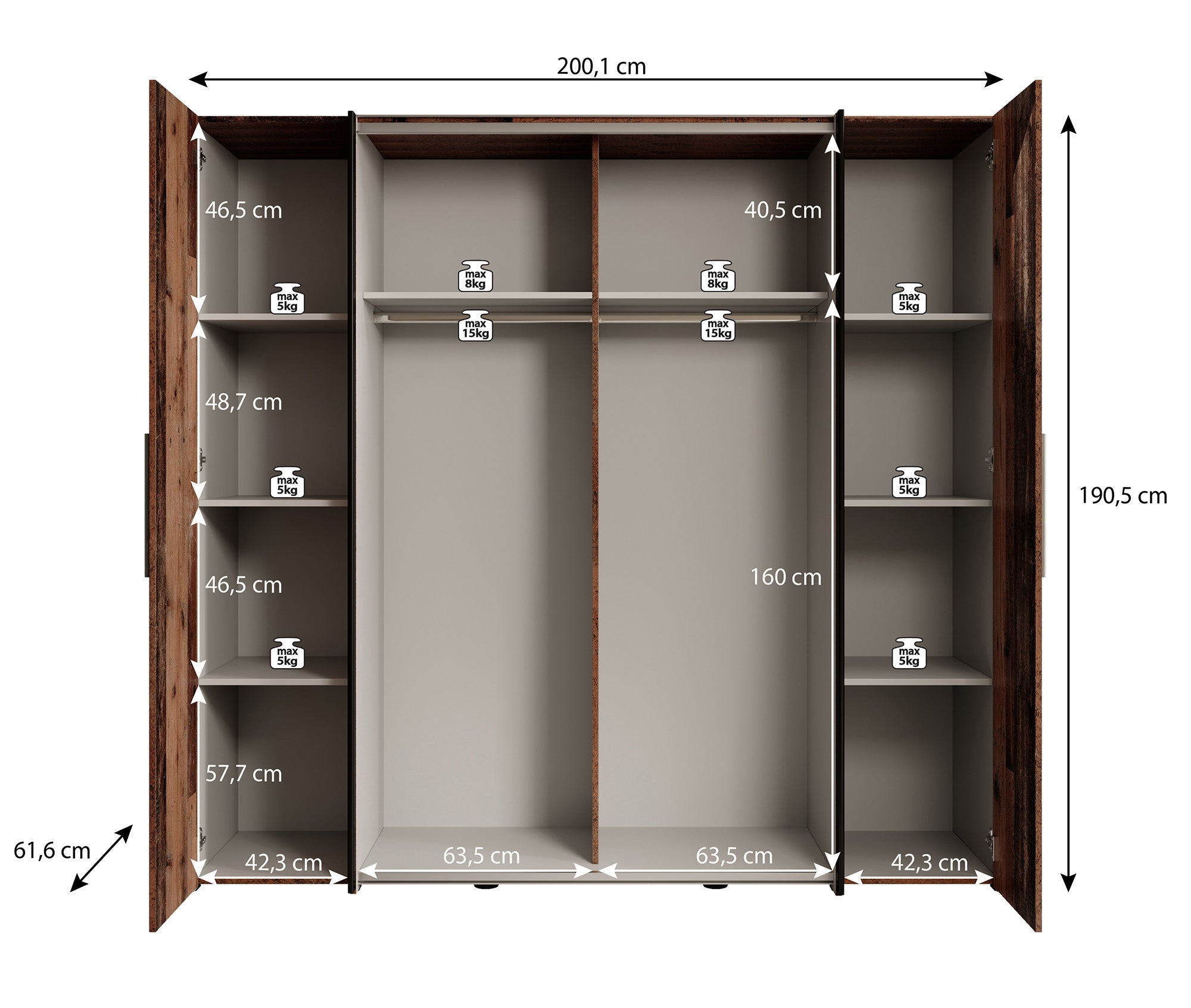 | Maat | H 191 x B 200 x D 62 cm |