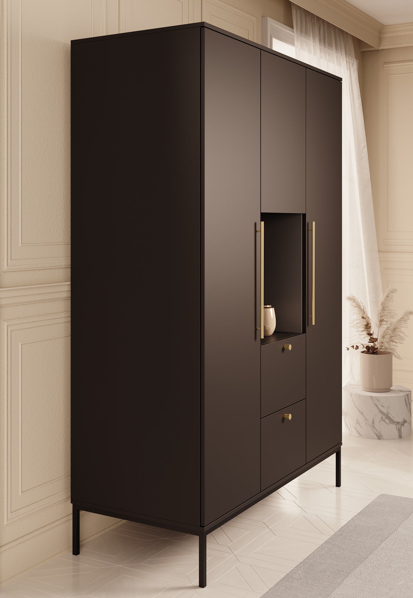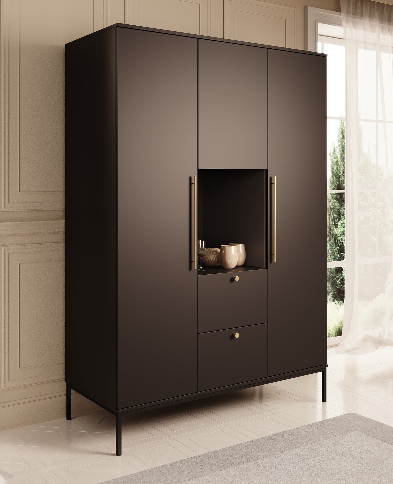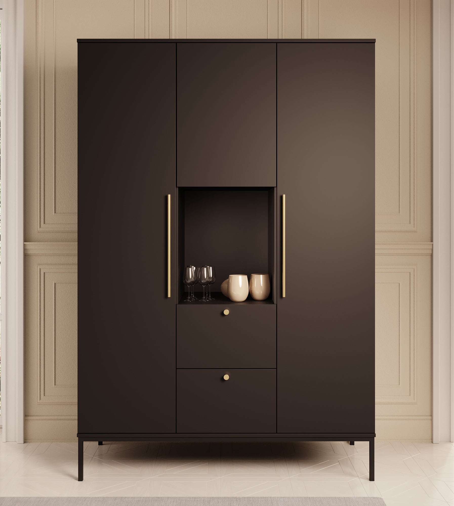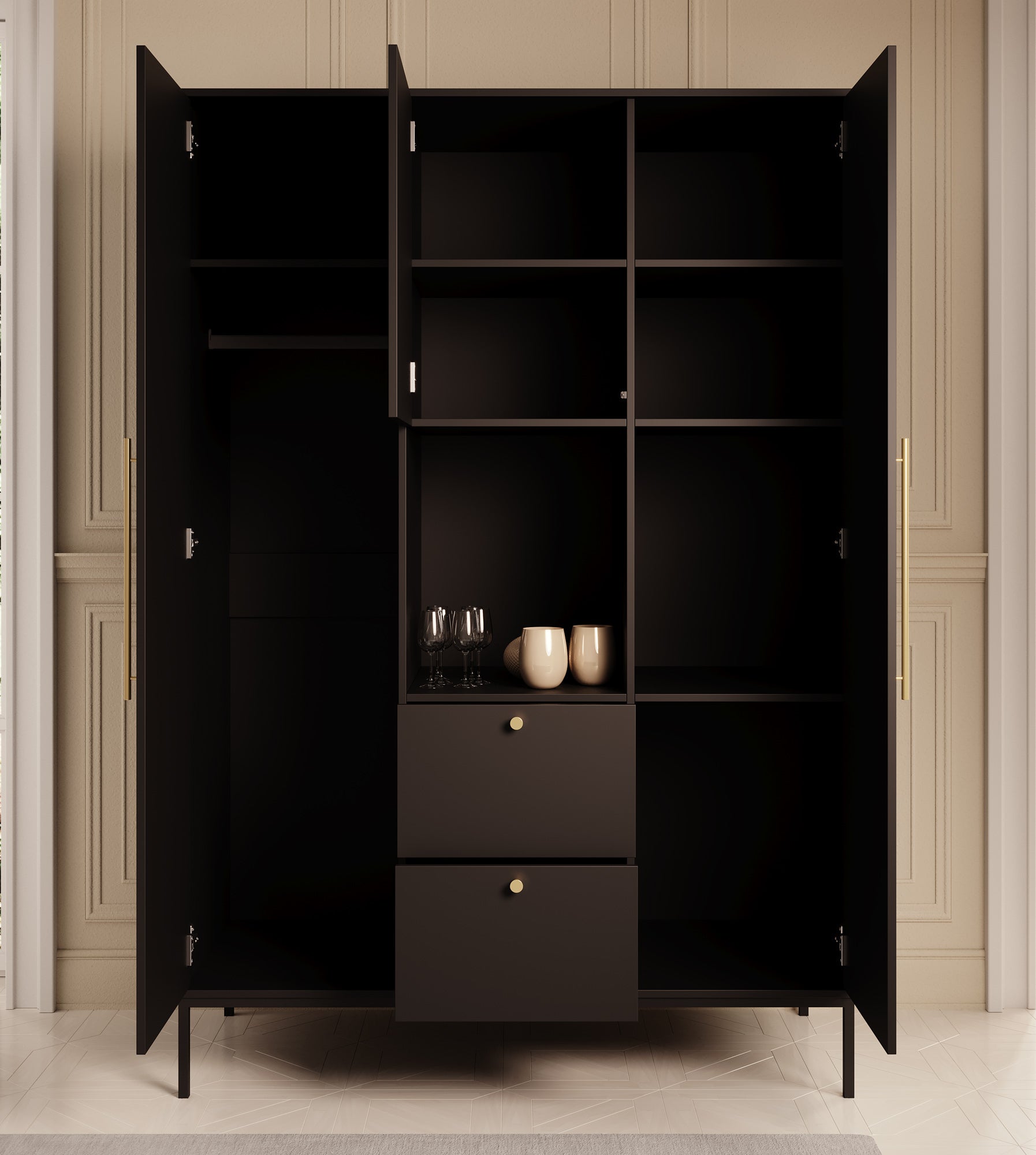 - Goudkleurige handgrepen en knoppen