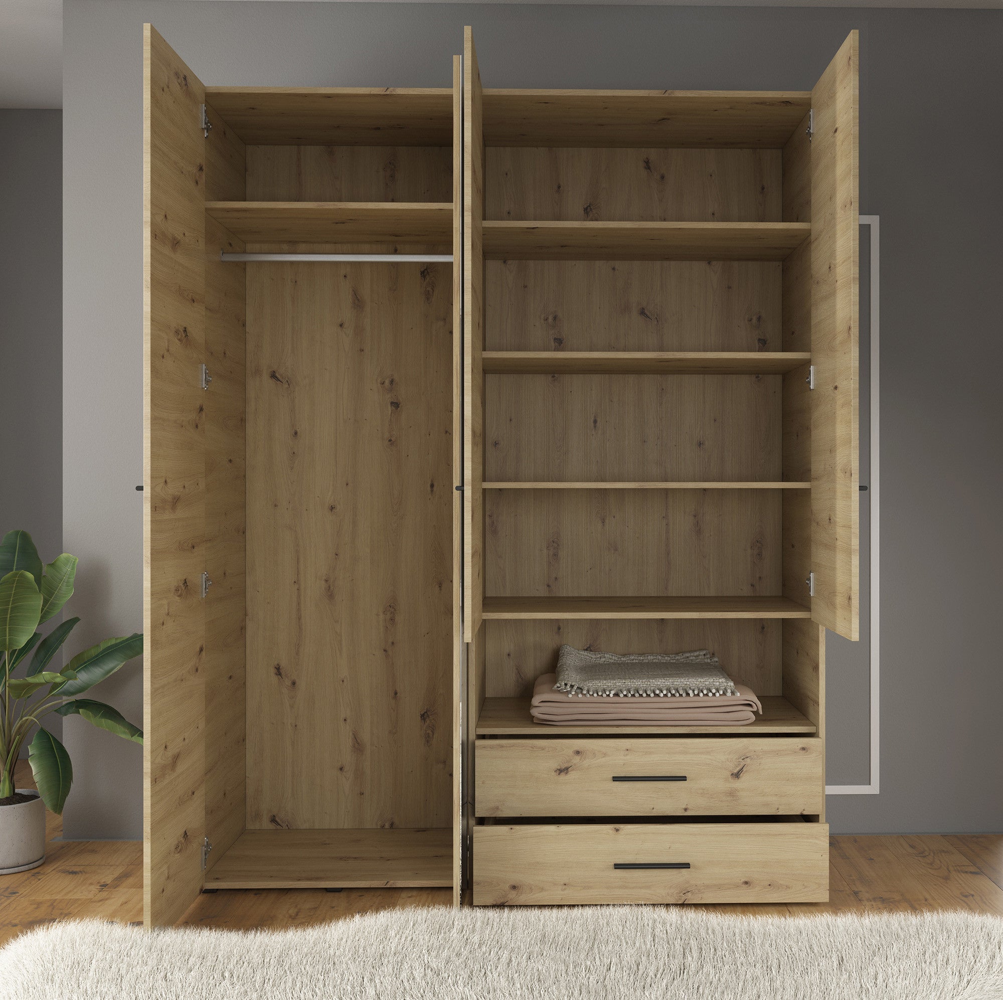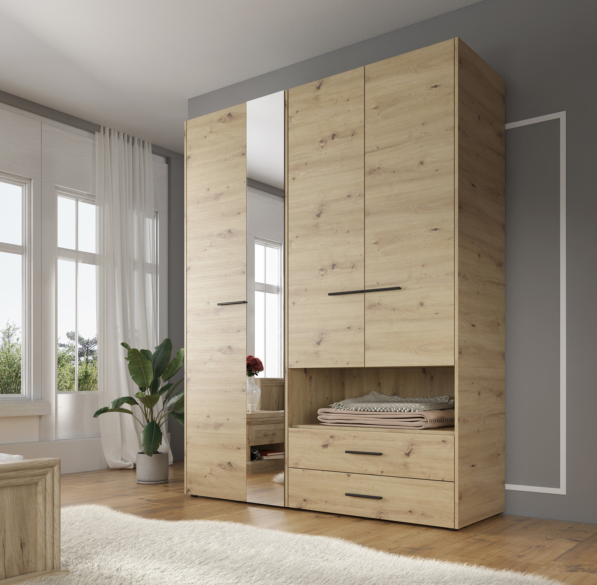 Meubella - Kledingkast Laura - Eiken - Zwart - 161 cm - Met spiegel