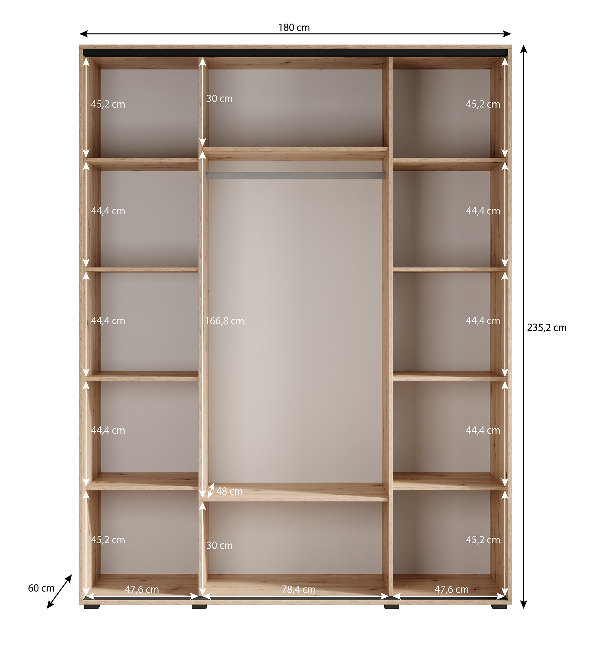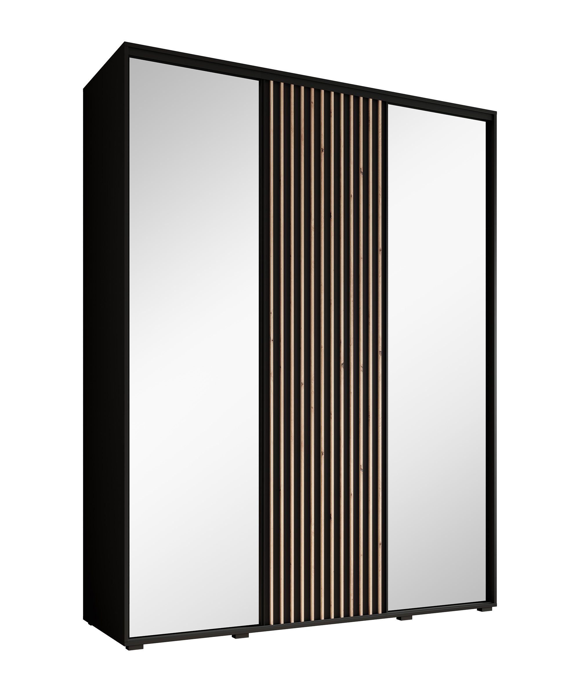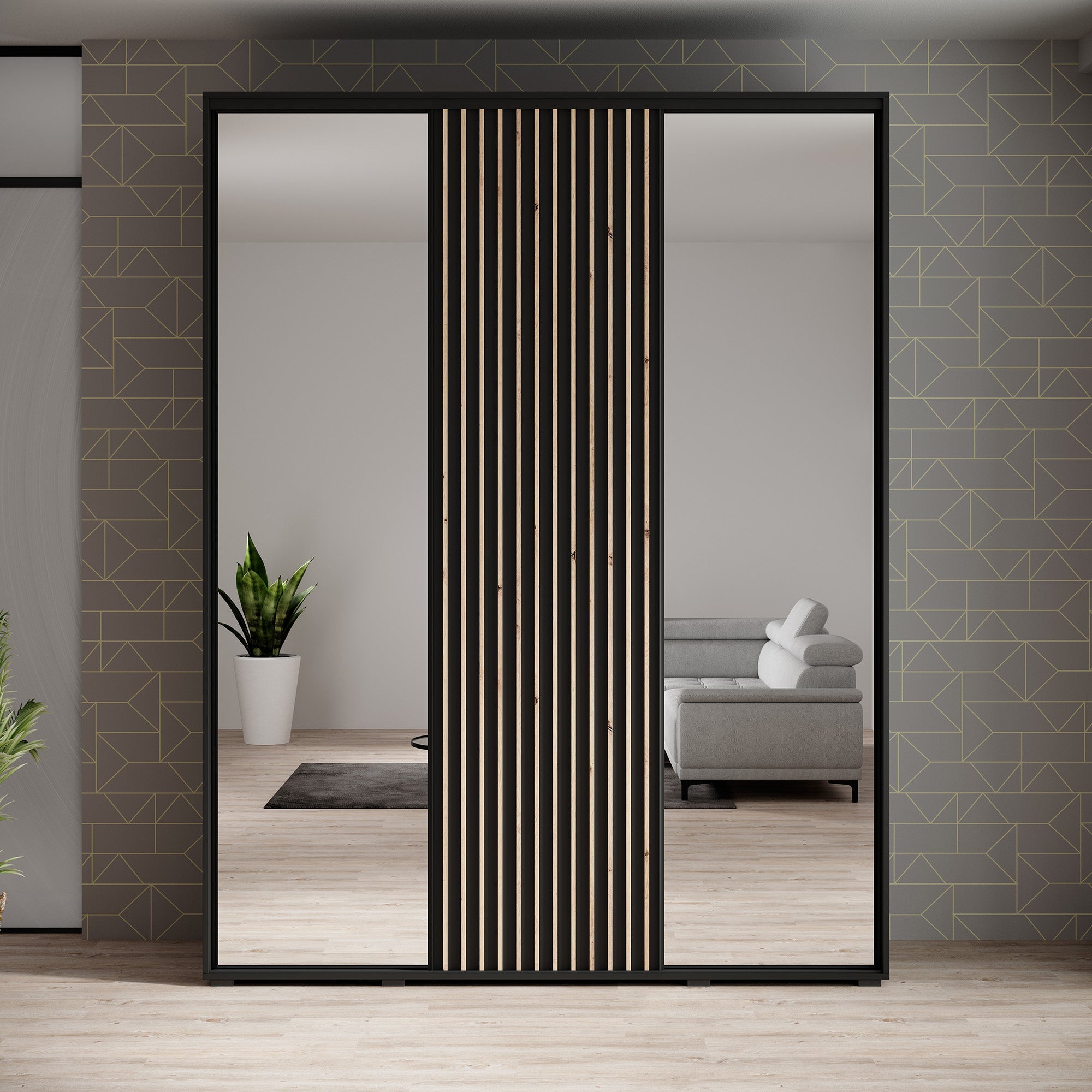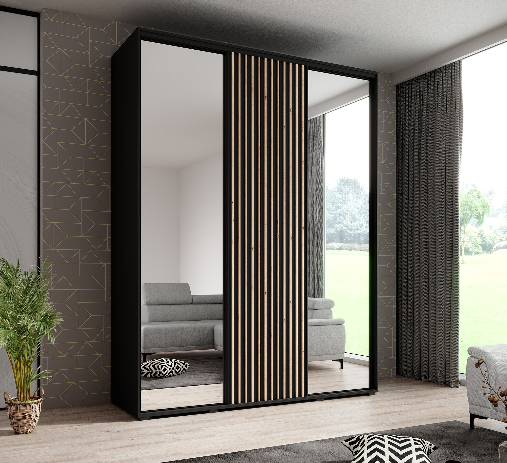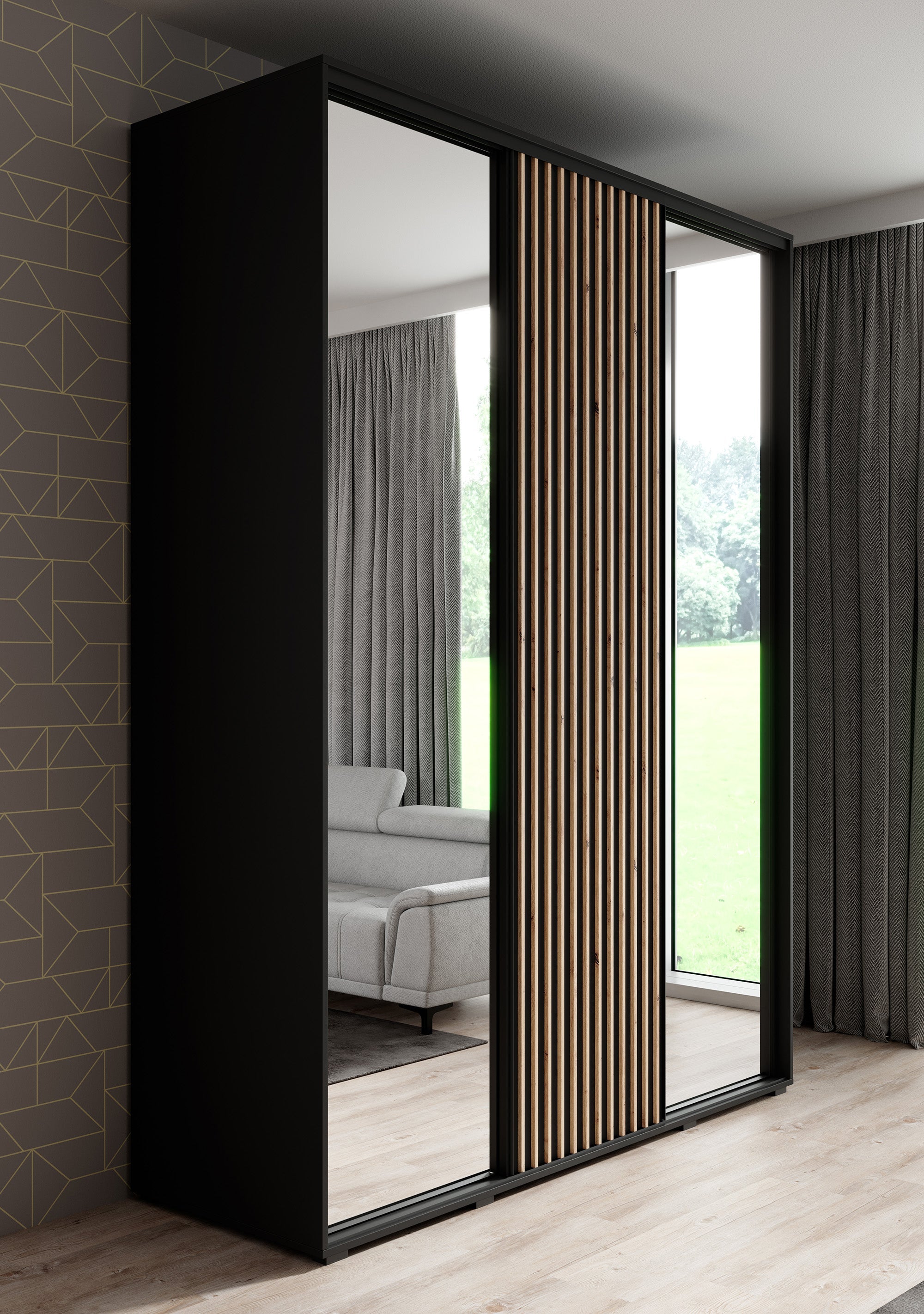 Meubella - Kledingkast Leandro - Zwart - 180 cm - Met spiegel