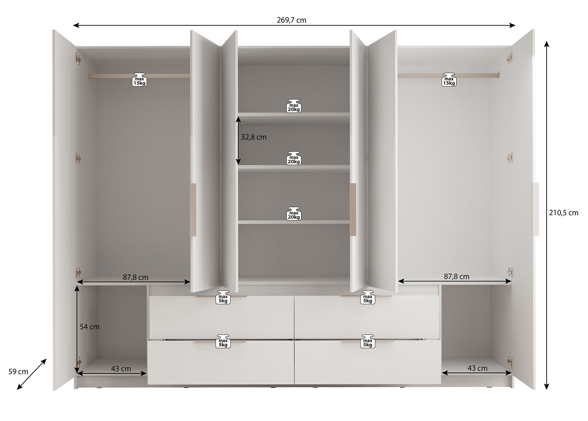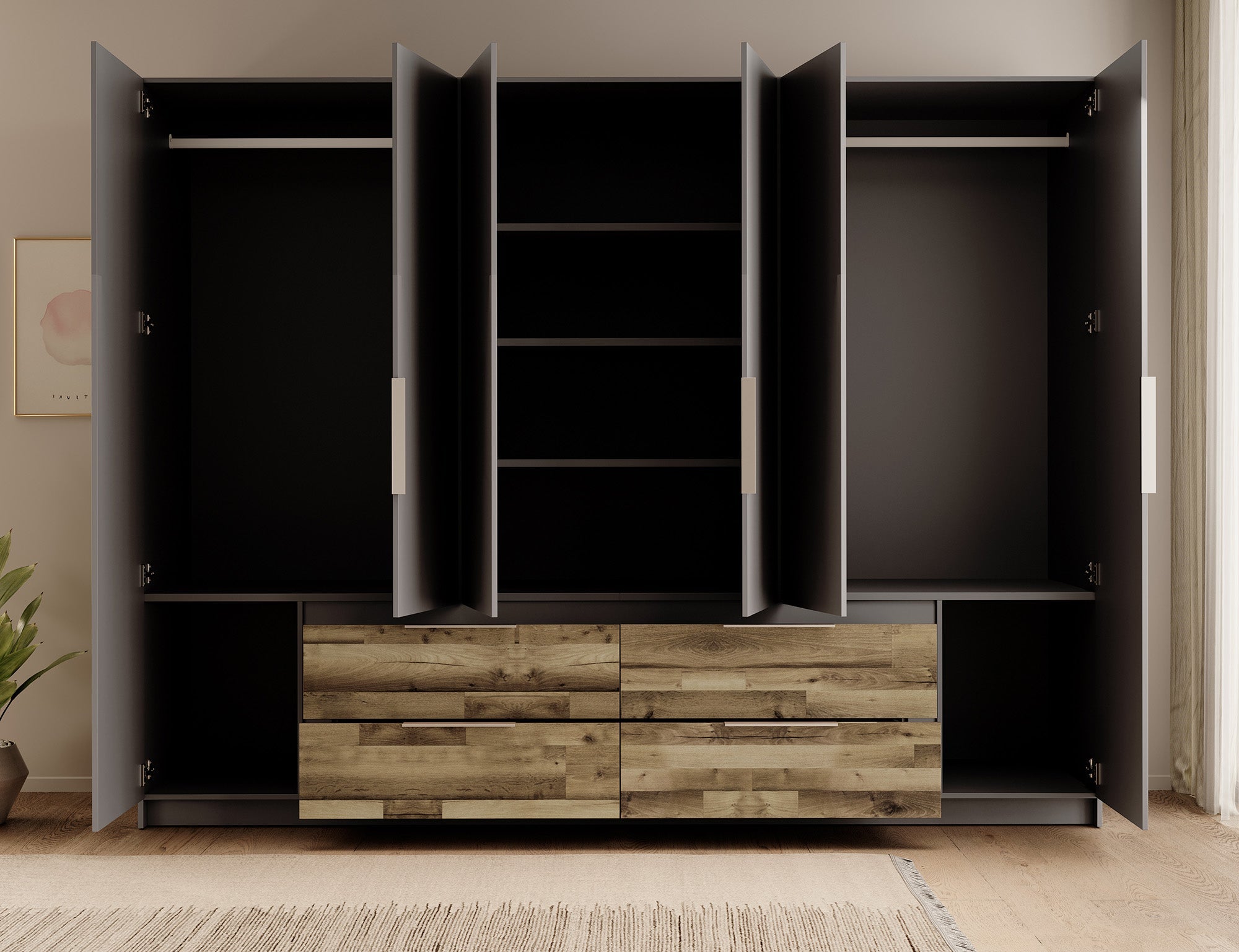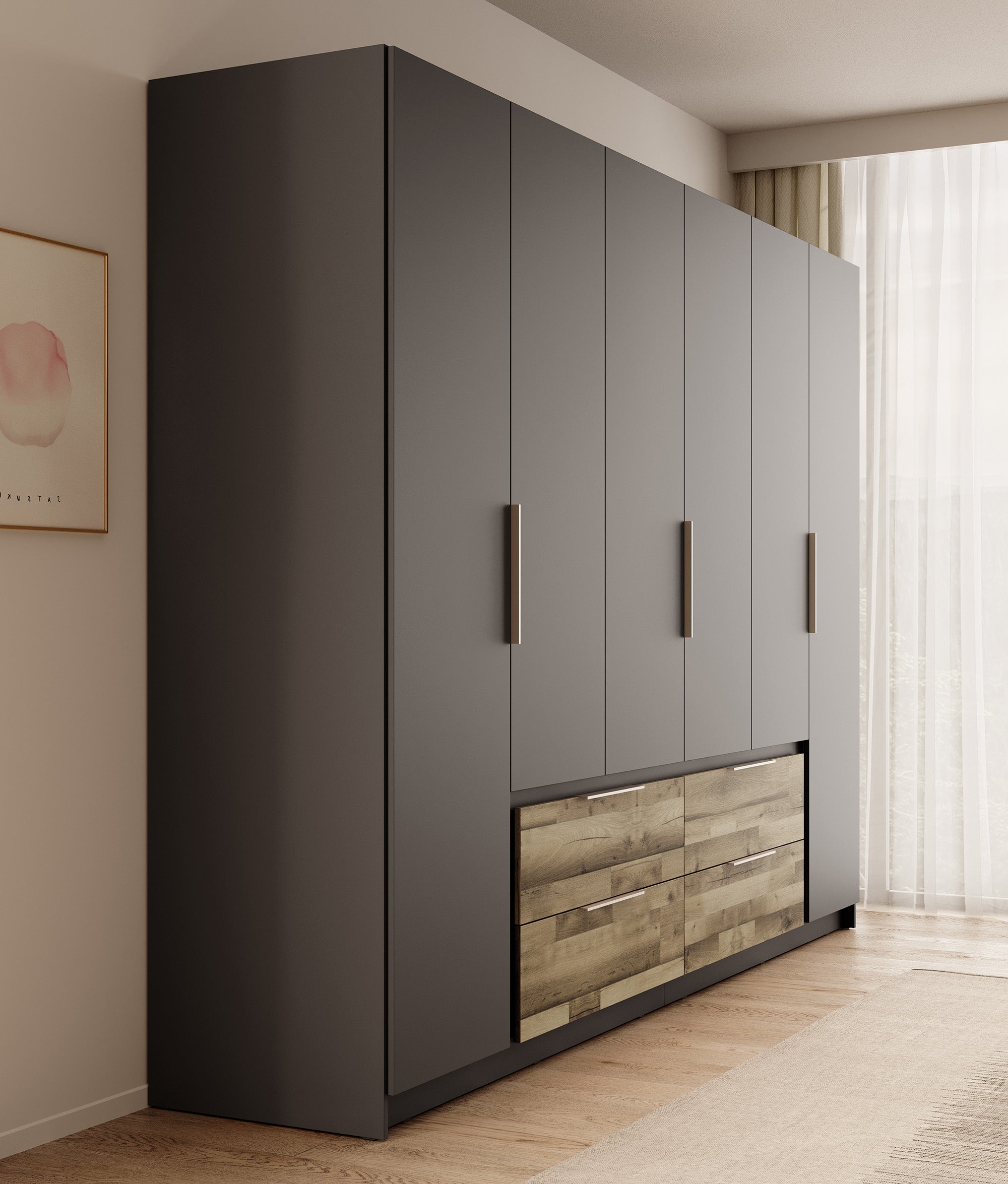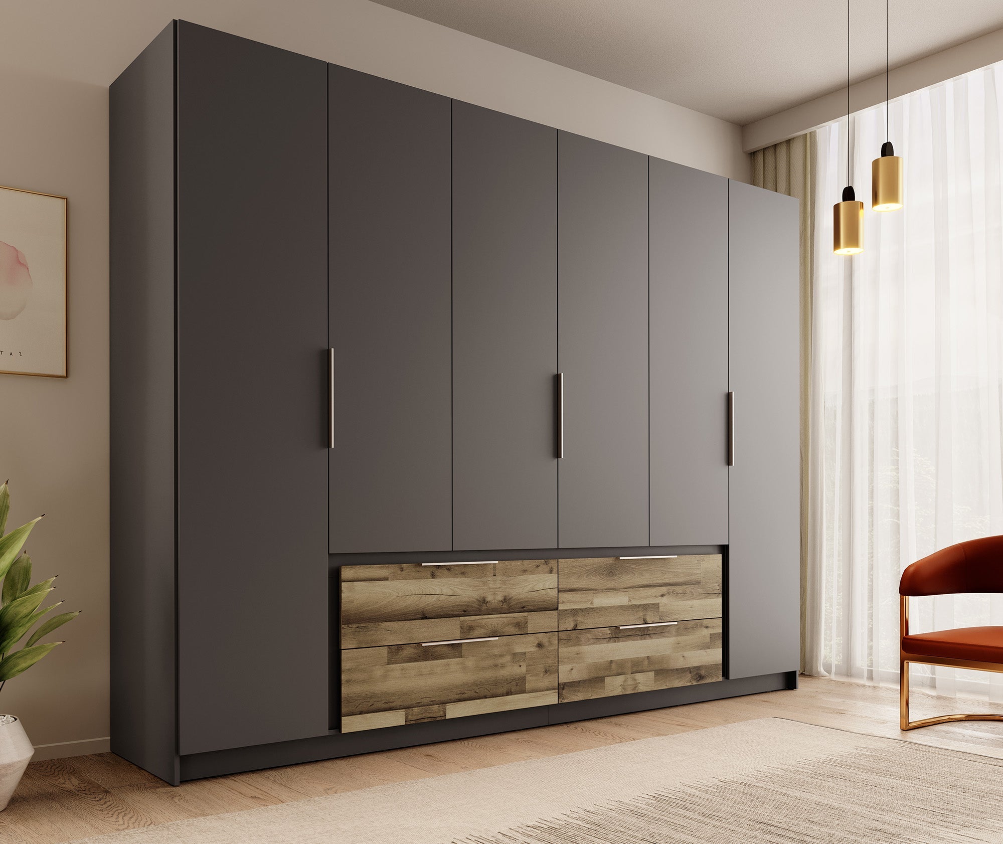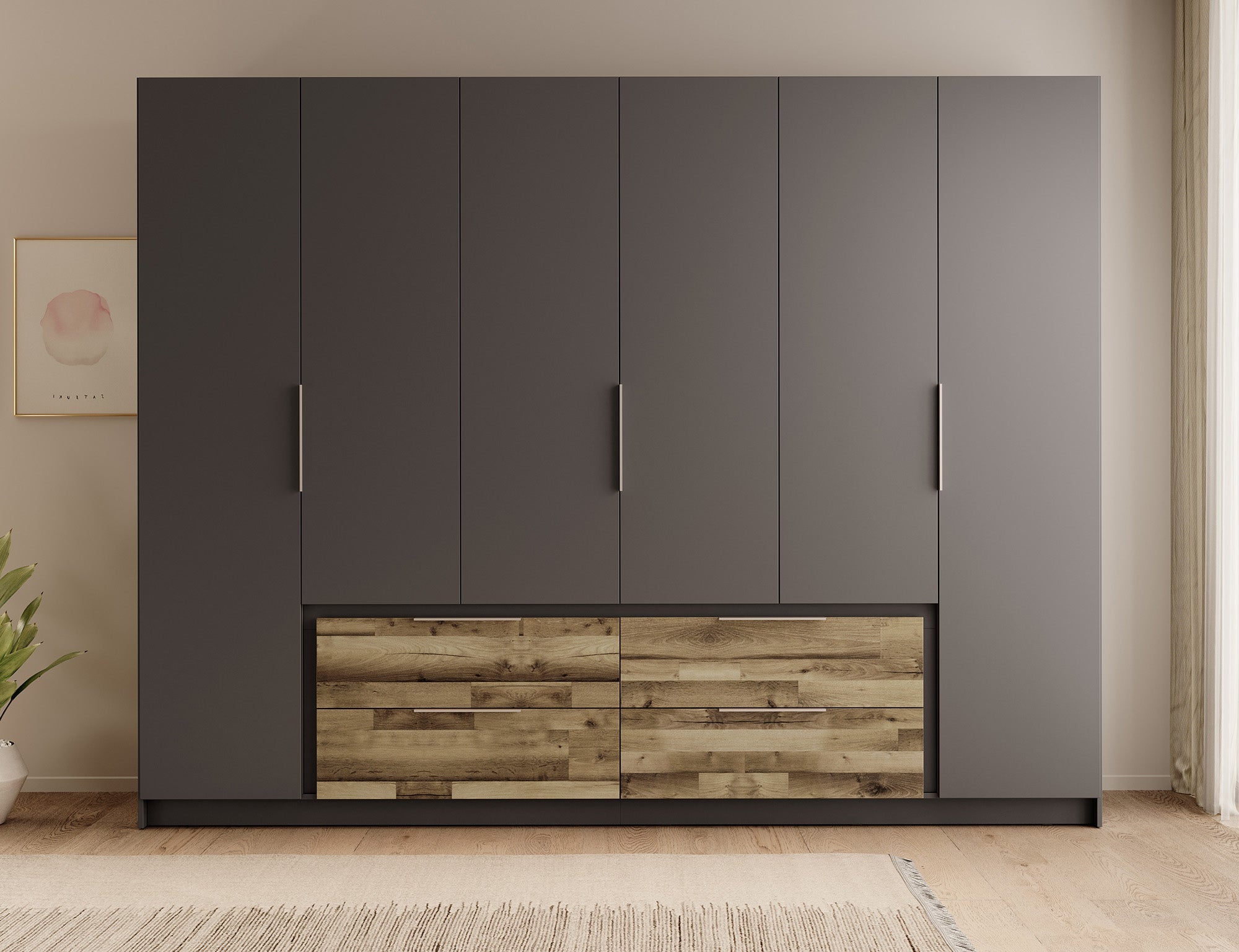 Meubella - Kledingkast Leipzig - Grijs - Eiken - 270 cm