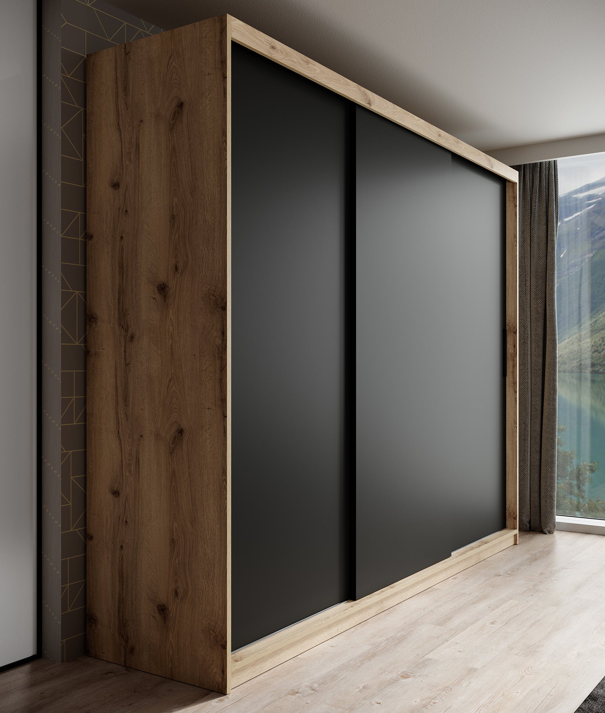 Meubella - Kledingkast Luxor - Zwart - Eiken - 250 cm
