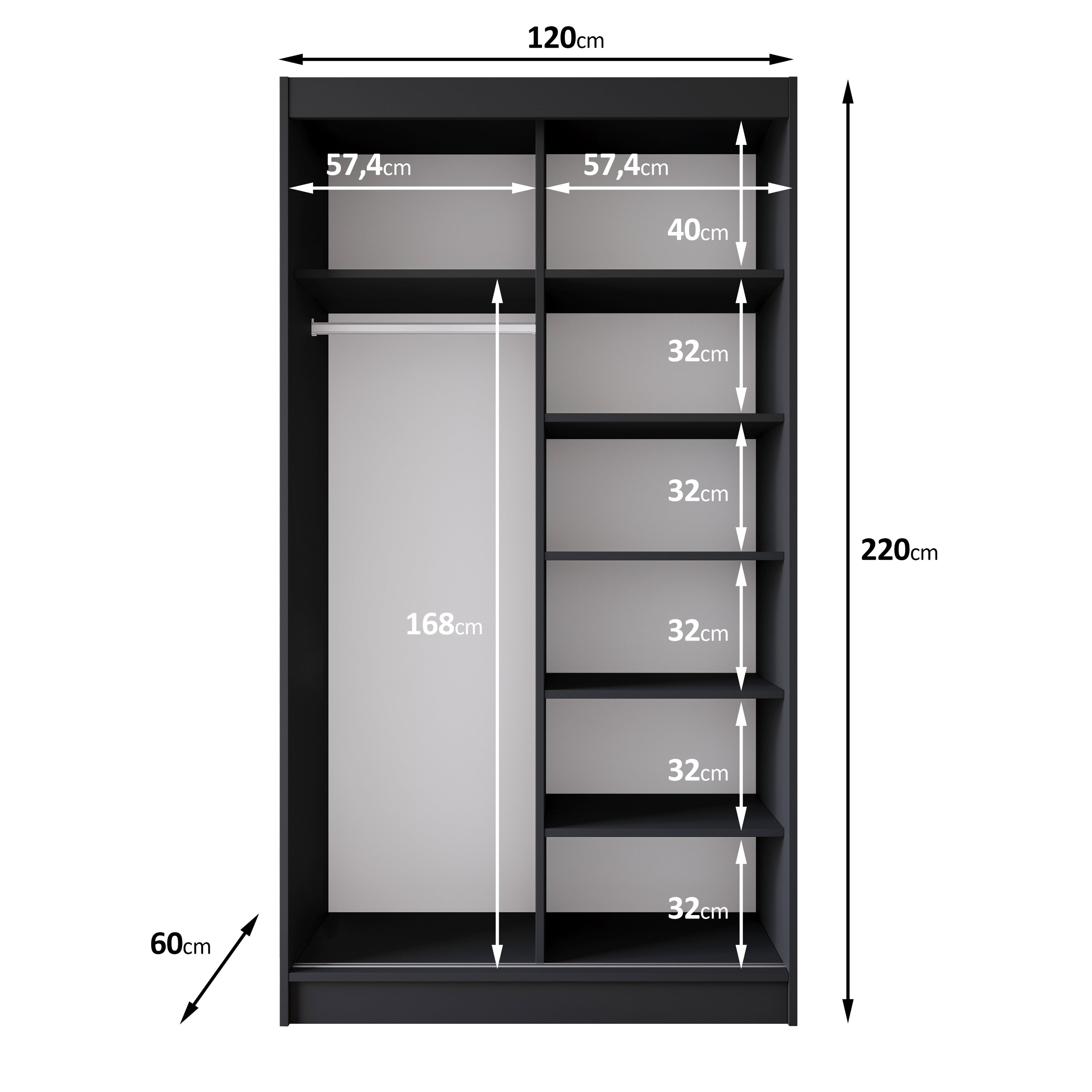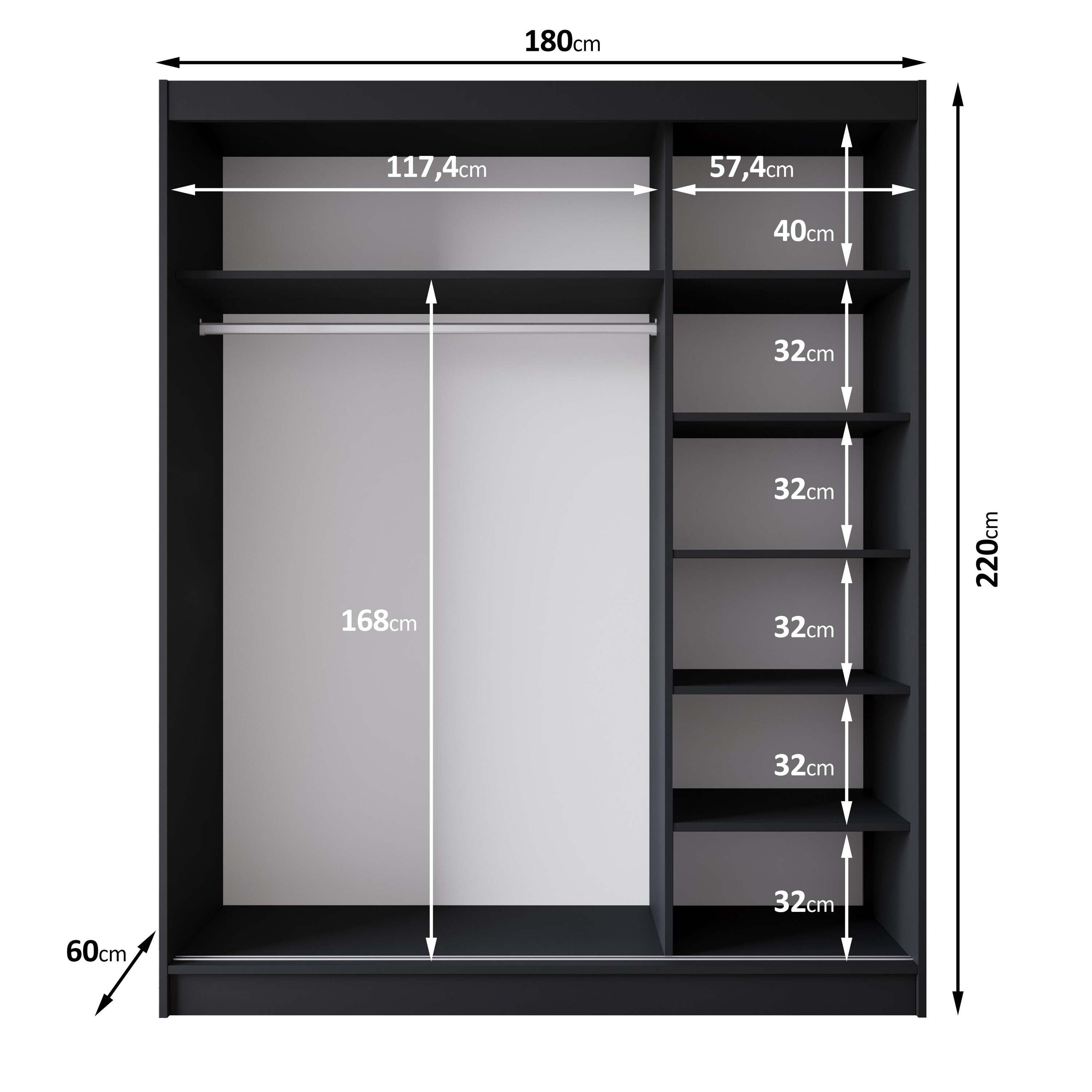 | Maat | H 220 x B 180 x D 60 cm |