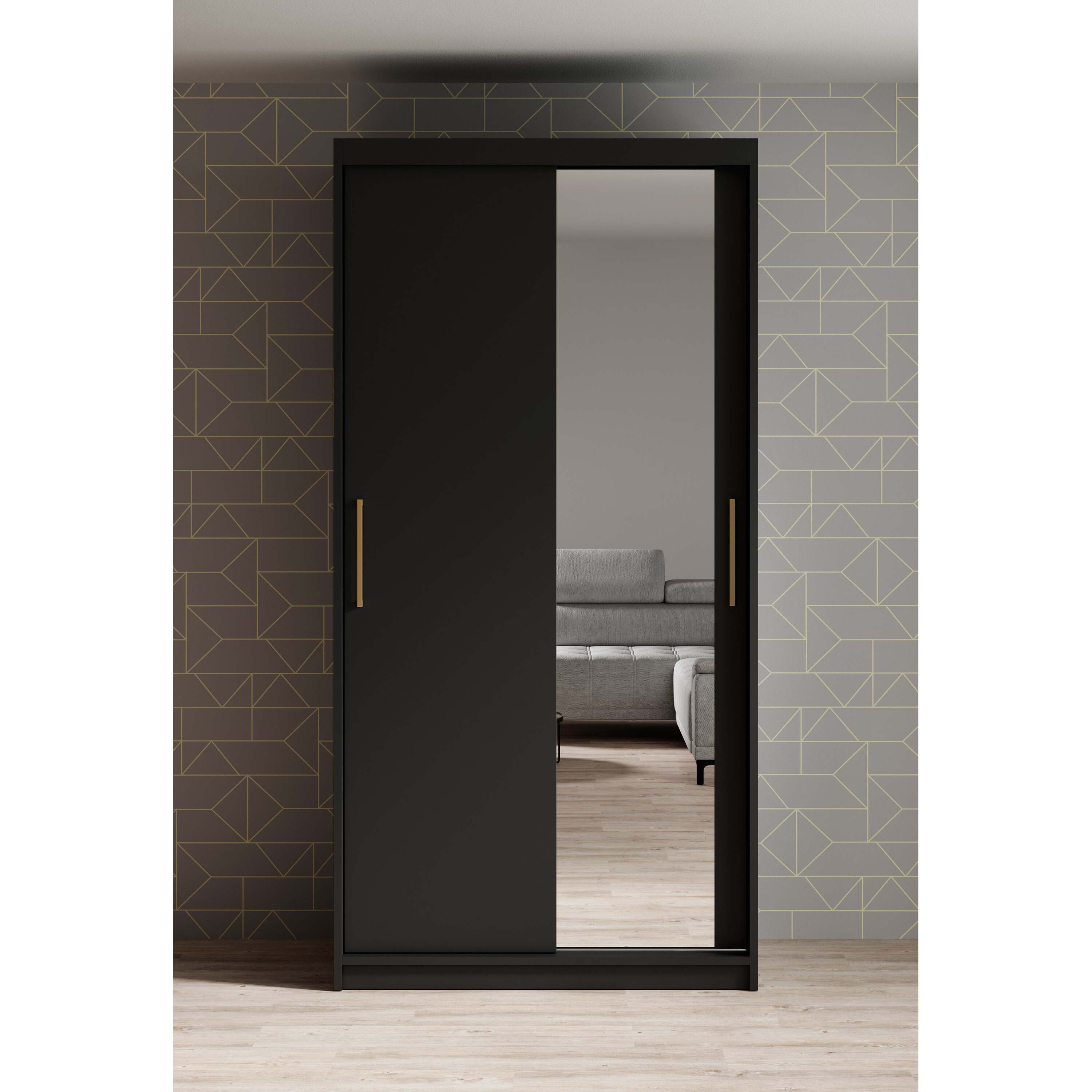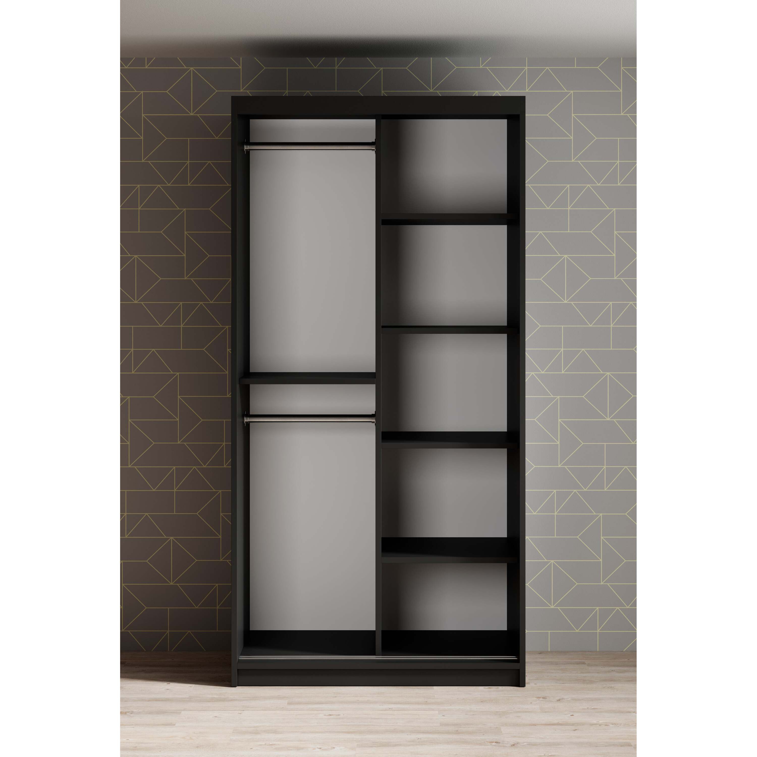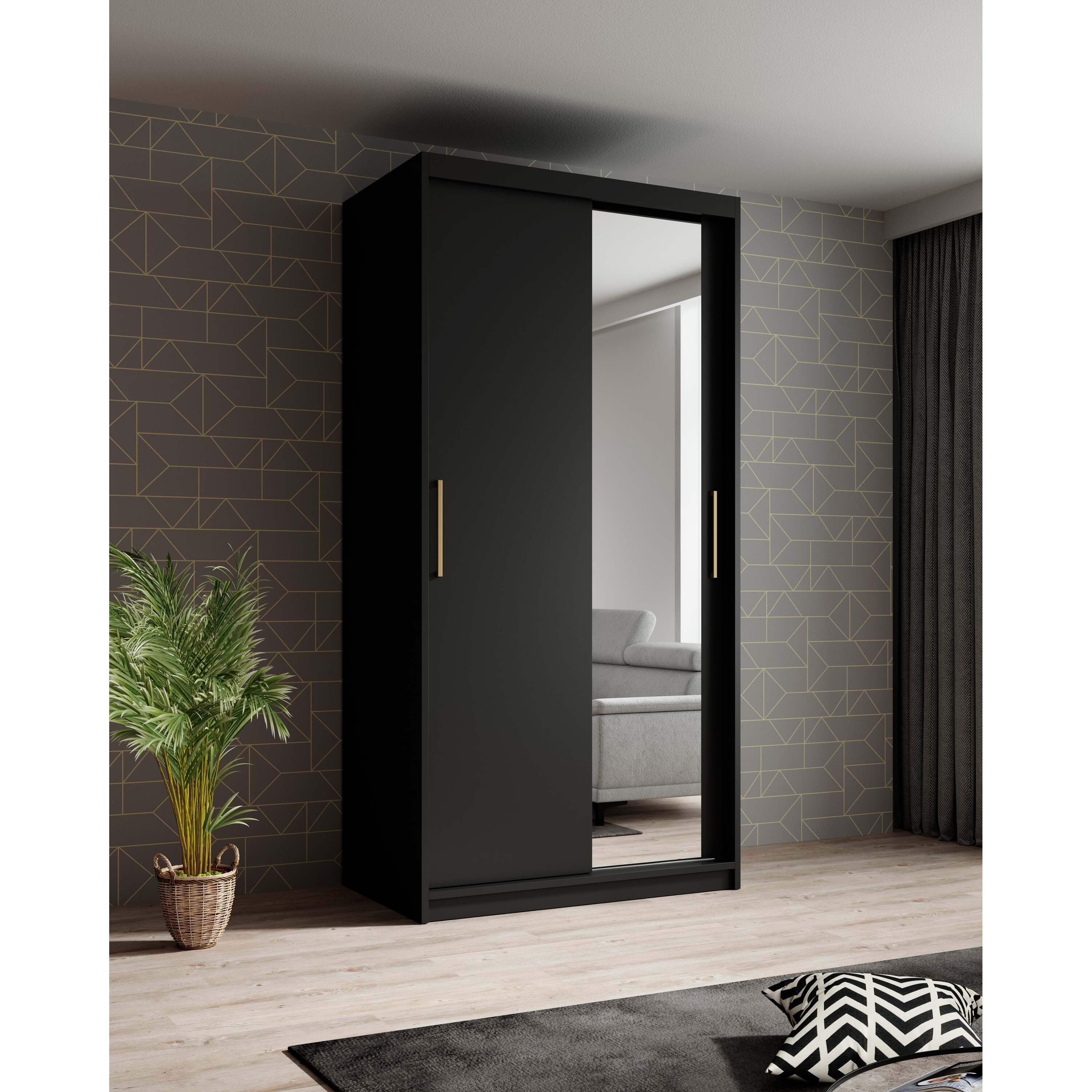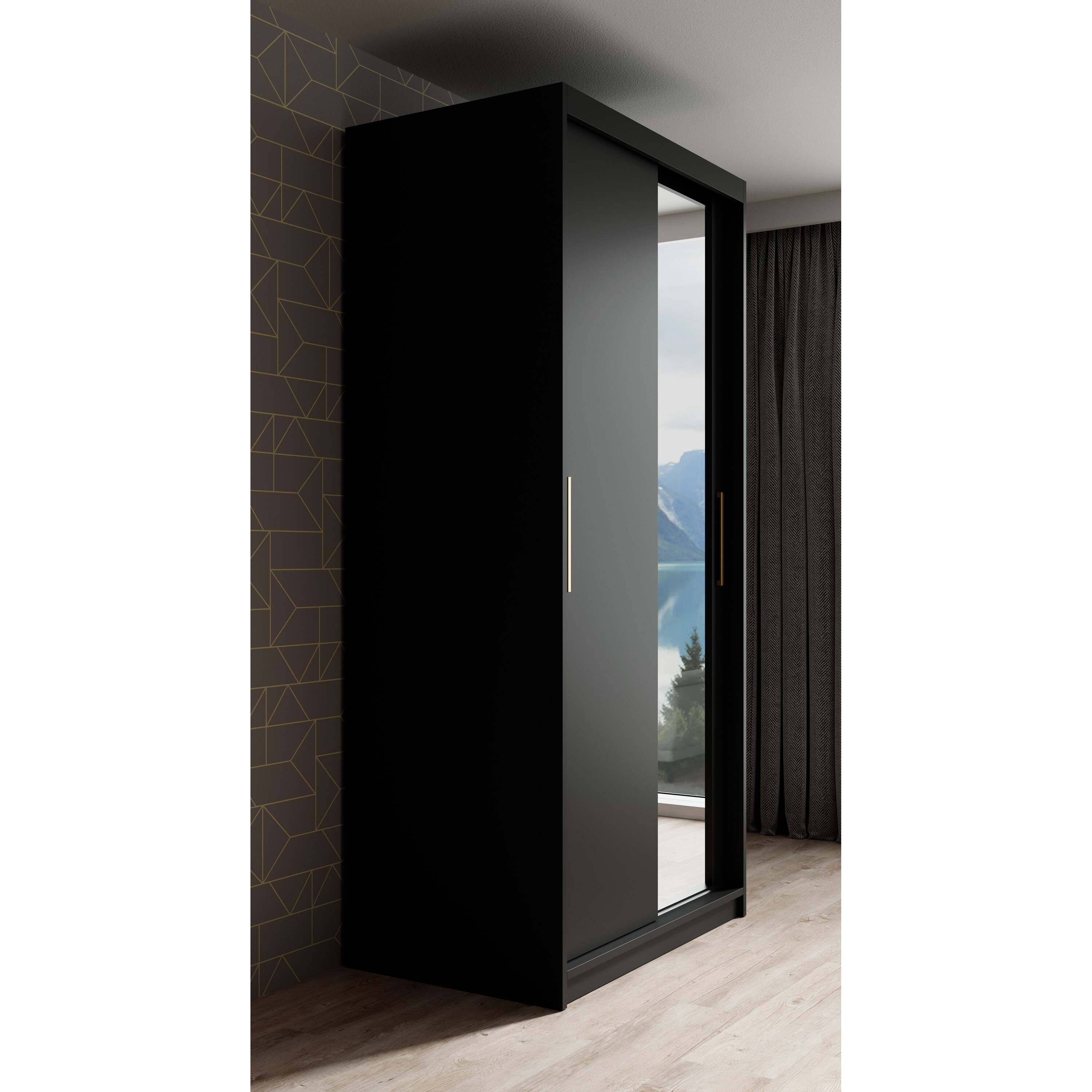 Meubella - Kledingkast Mandalin - Zwart - 100 cm - Met spiegel