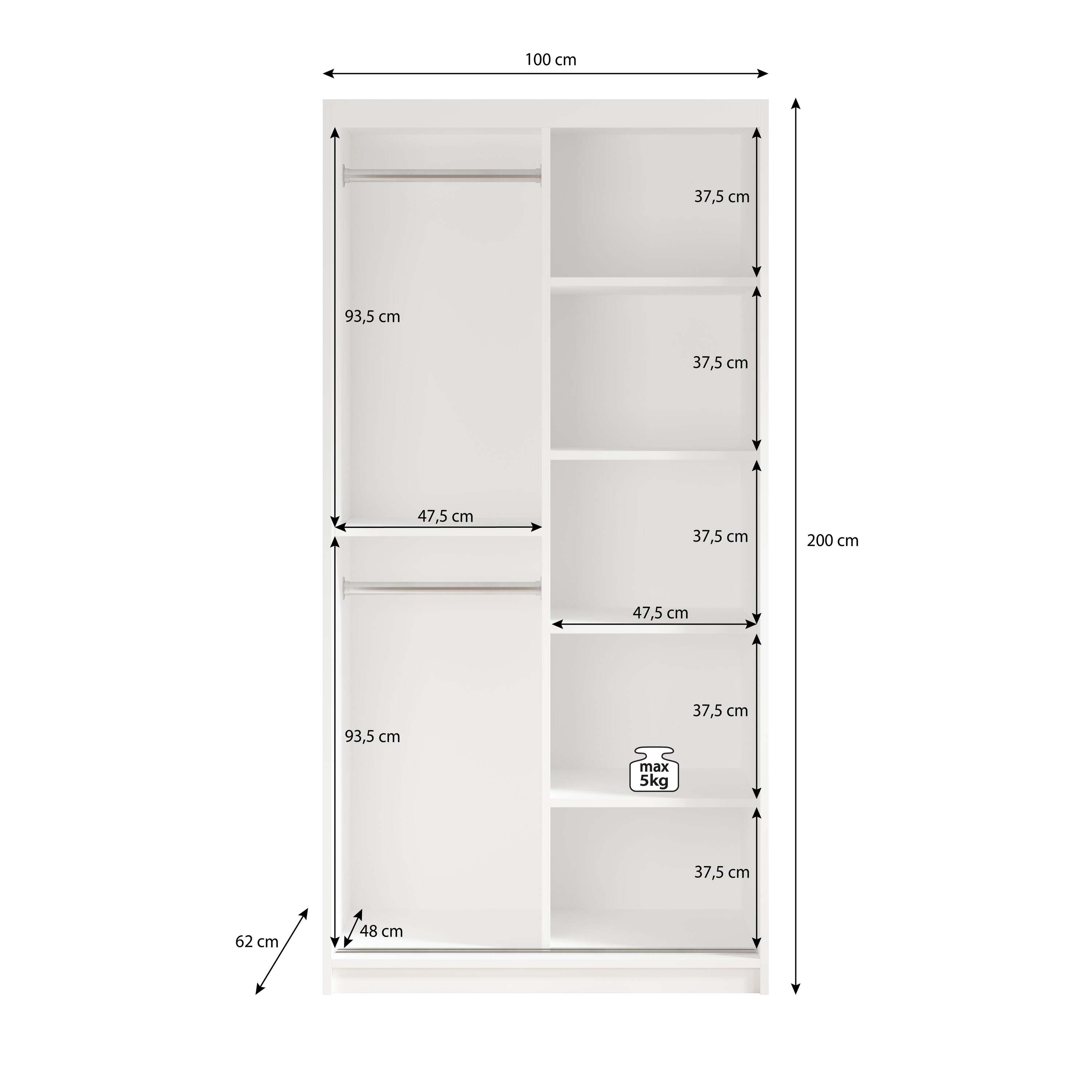 | Maat | H 200 x B 100 x D 62 cm |
