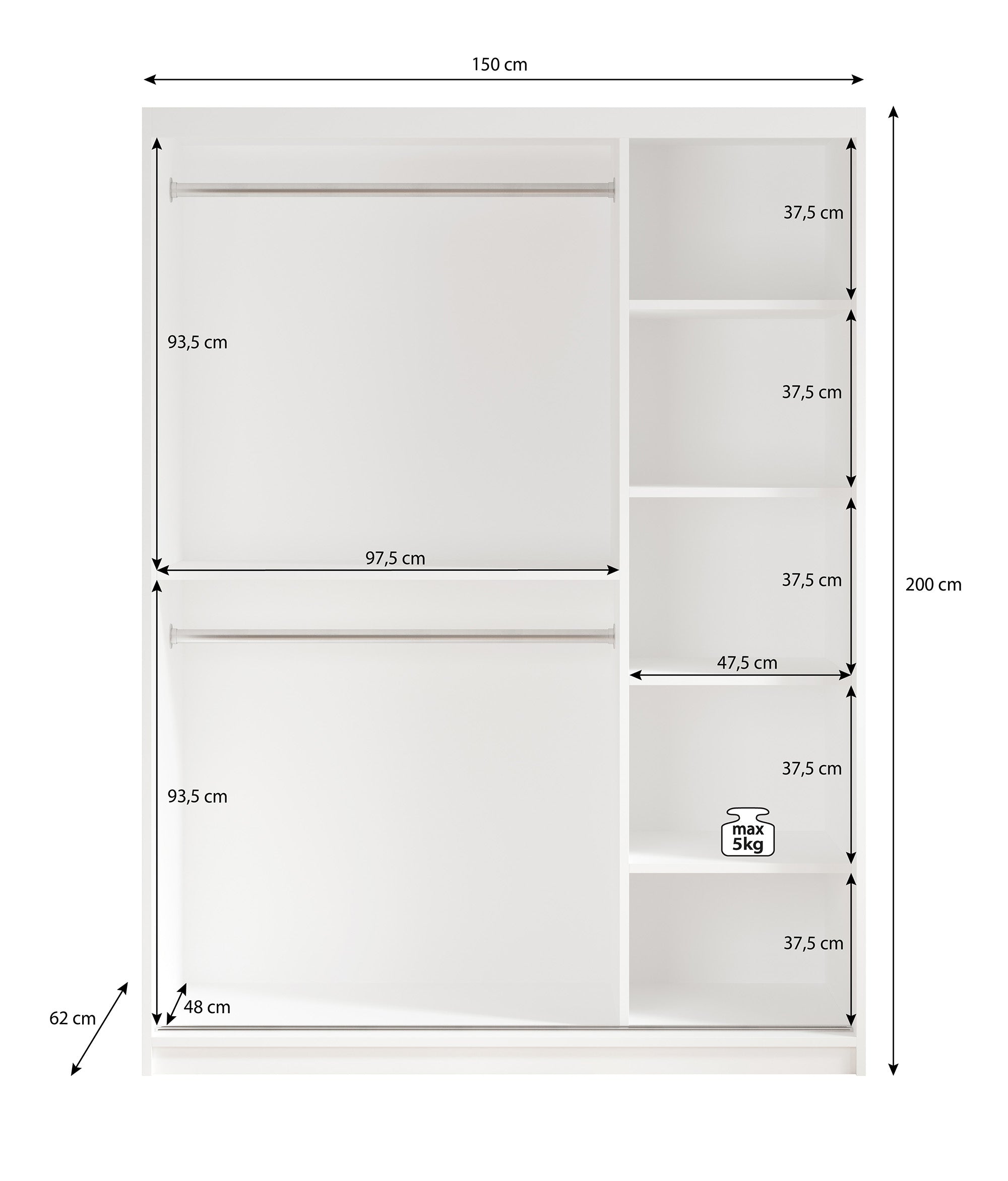 Meubella - Kledingkast Mandalin - Zwart - 150 cm