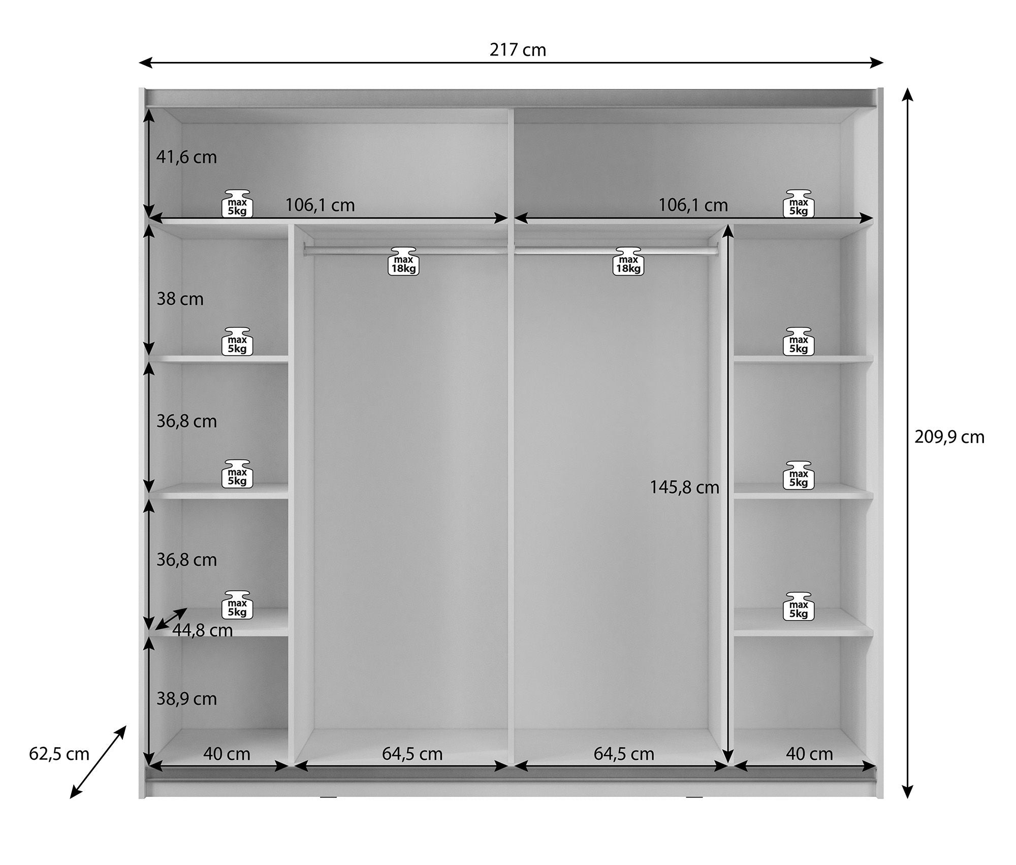 Meubella - Kledingkast Mariah - Wit - 217 cm - Met spiegel