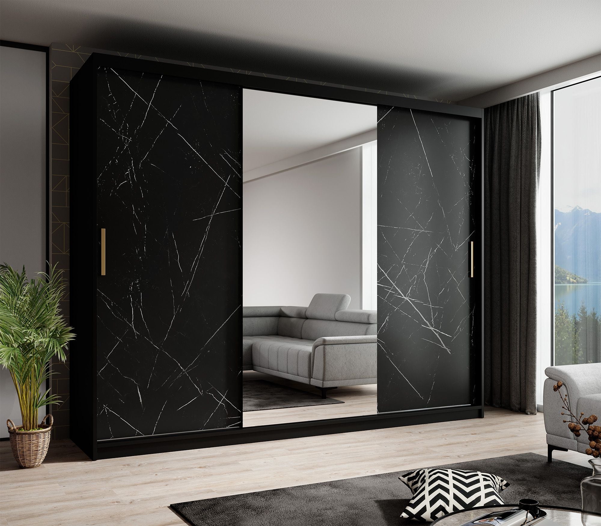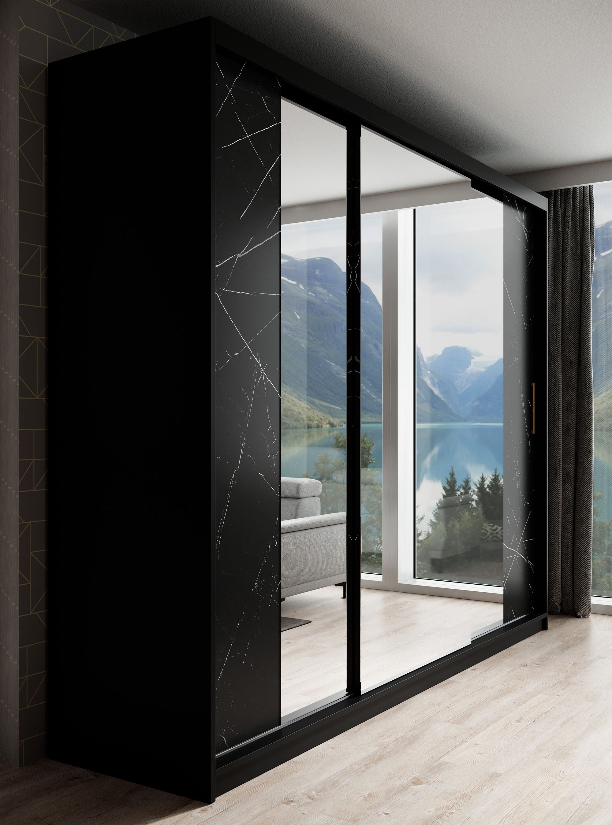 Meubella - Kledingkast Marmer 2 - Zwart - 250 cm - Met spiegel