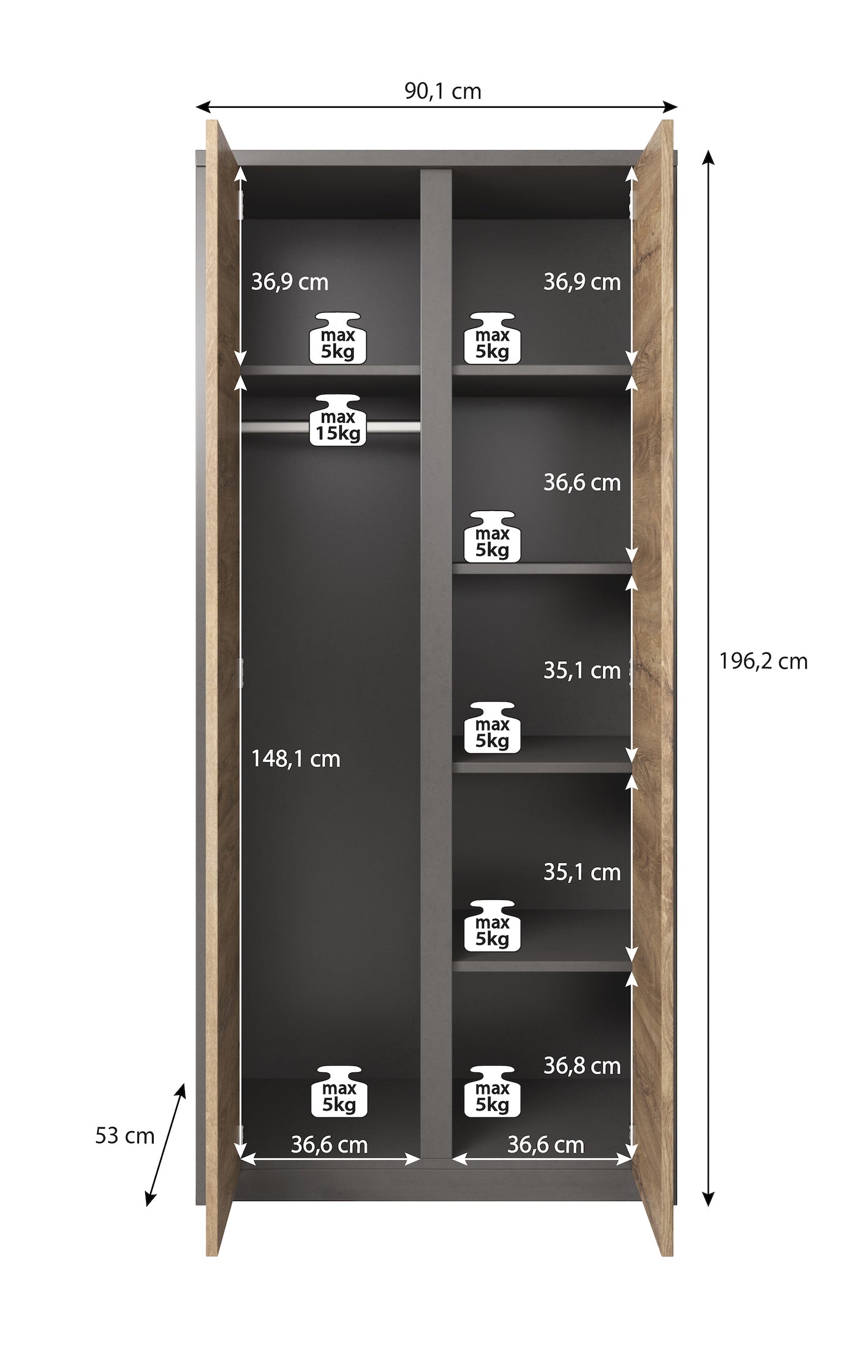 Meubella - Kledingkast Melody - Wit - Eiken - 90 cm