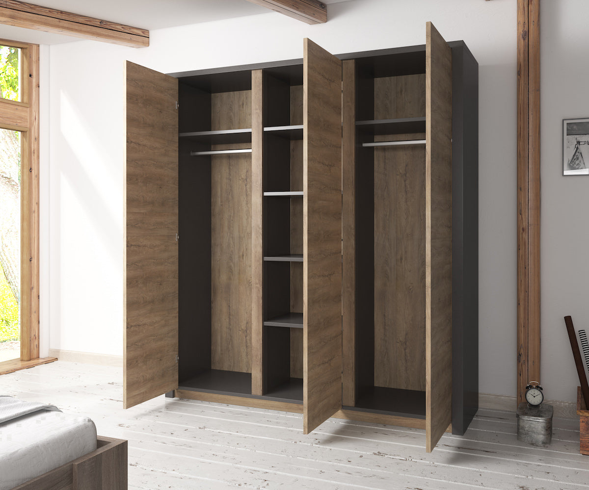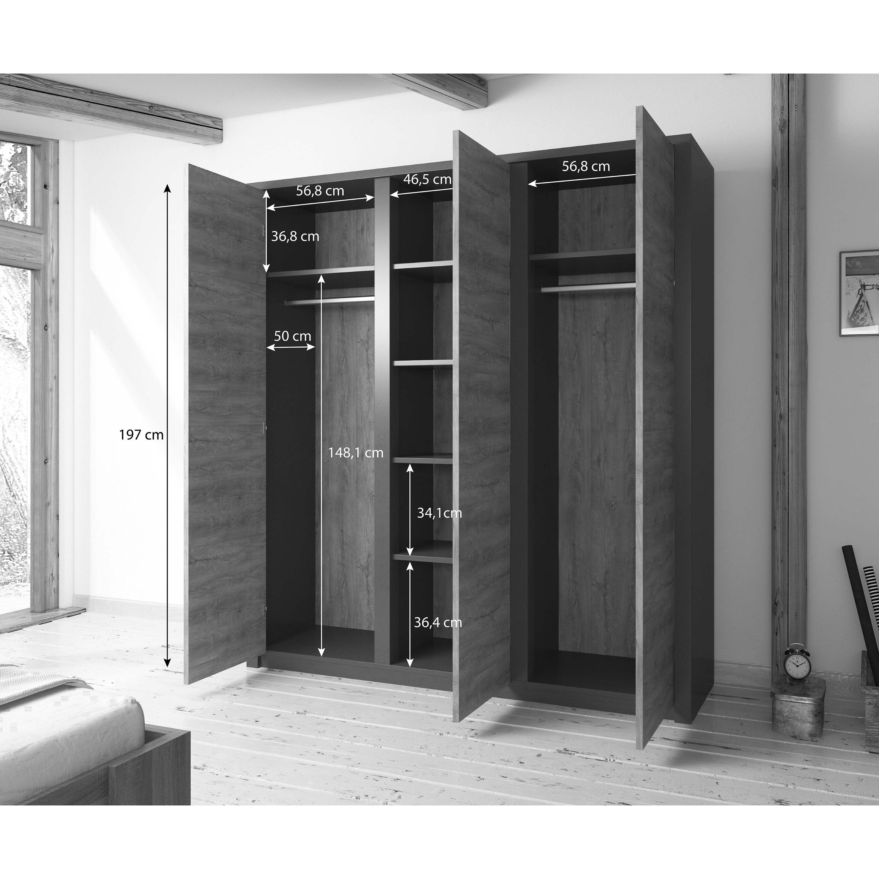 Meubella - Kledingkast Monaco - Eiken - Grijs - 166 cm