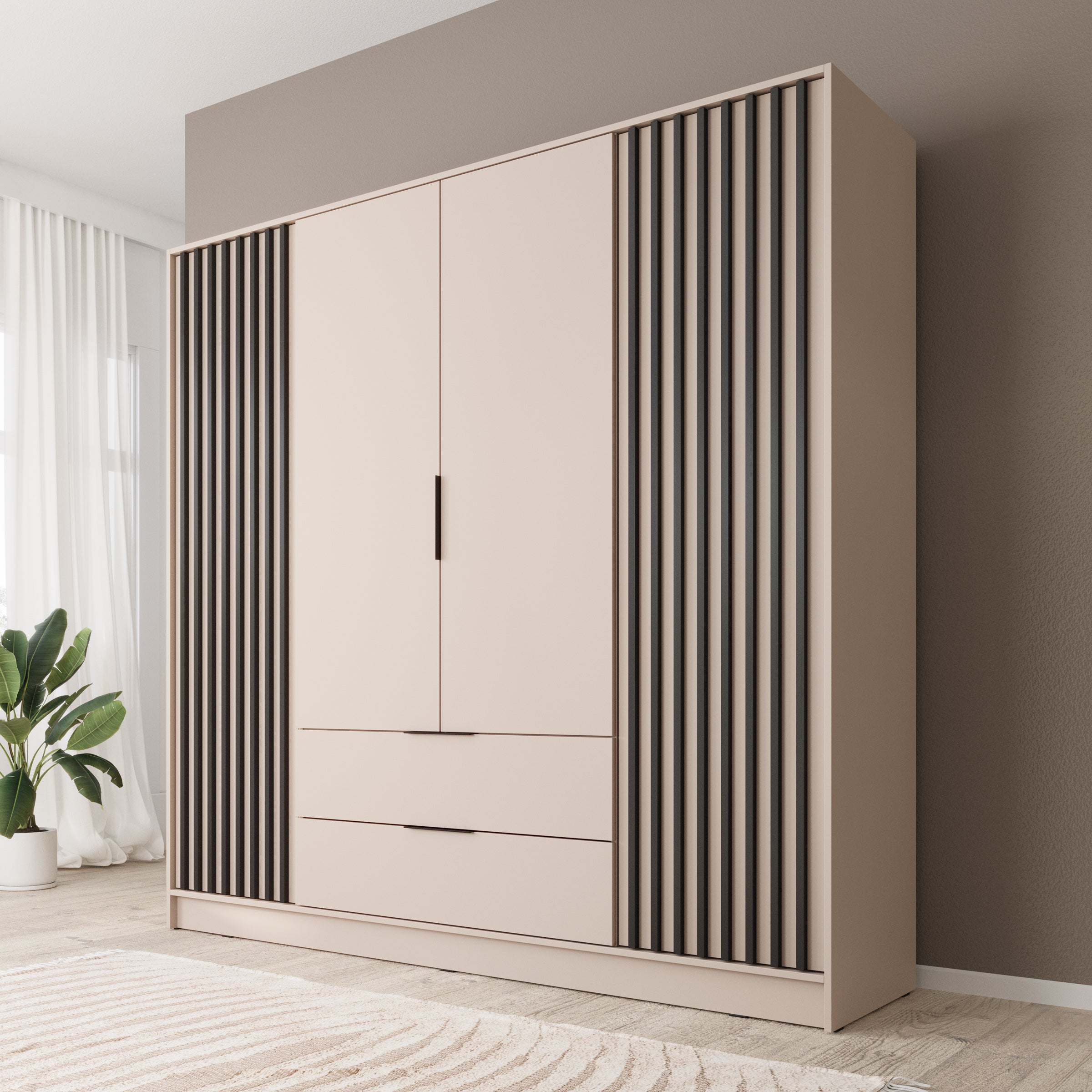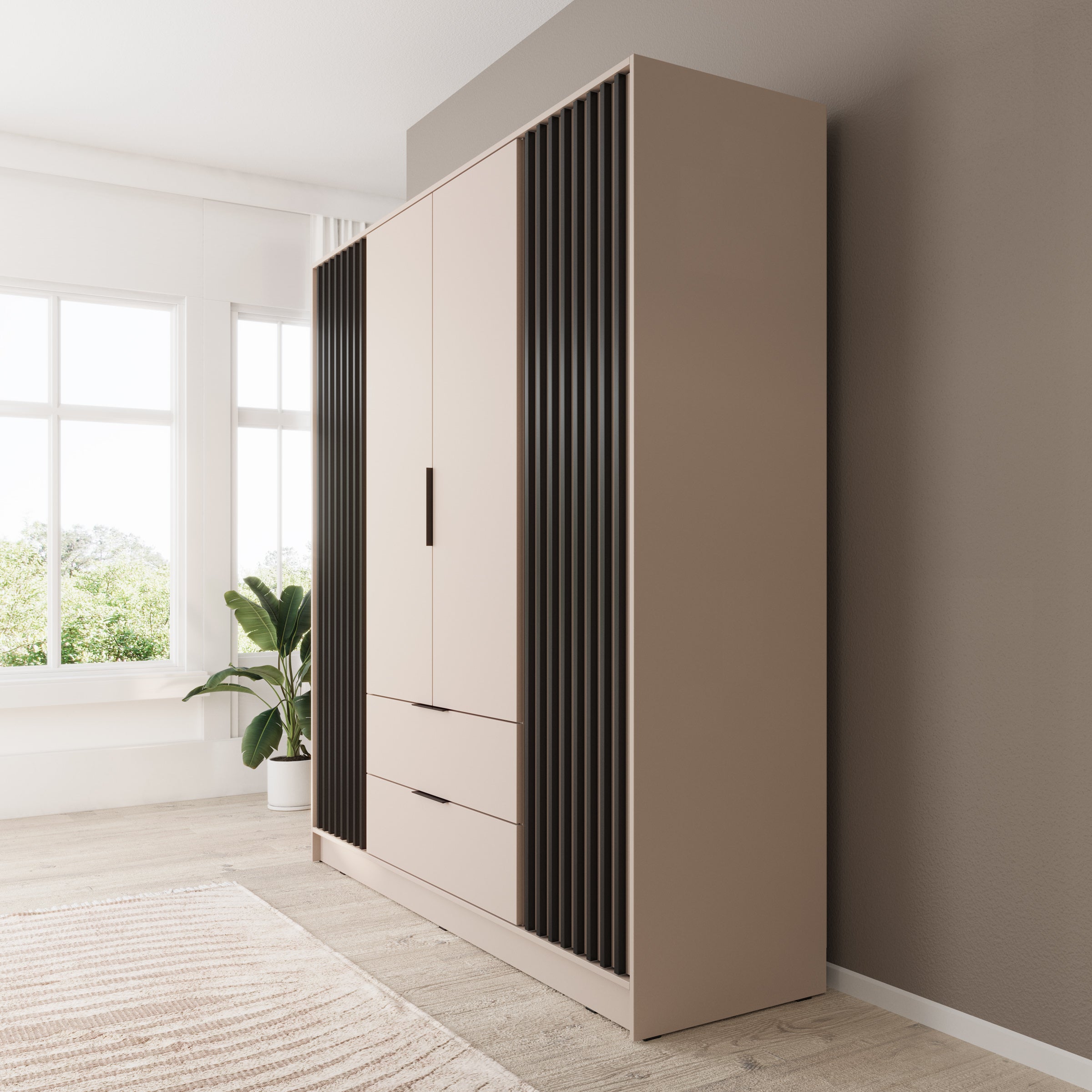 Meubella - Kledingkast Nairobi - Beige - Zwart - 206 cm